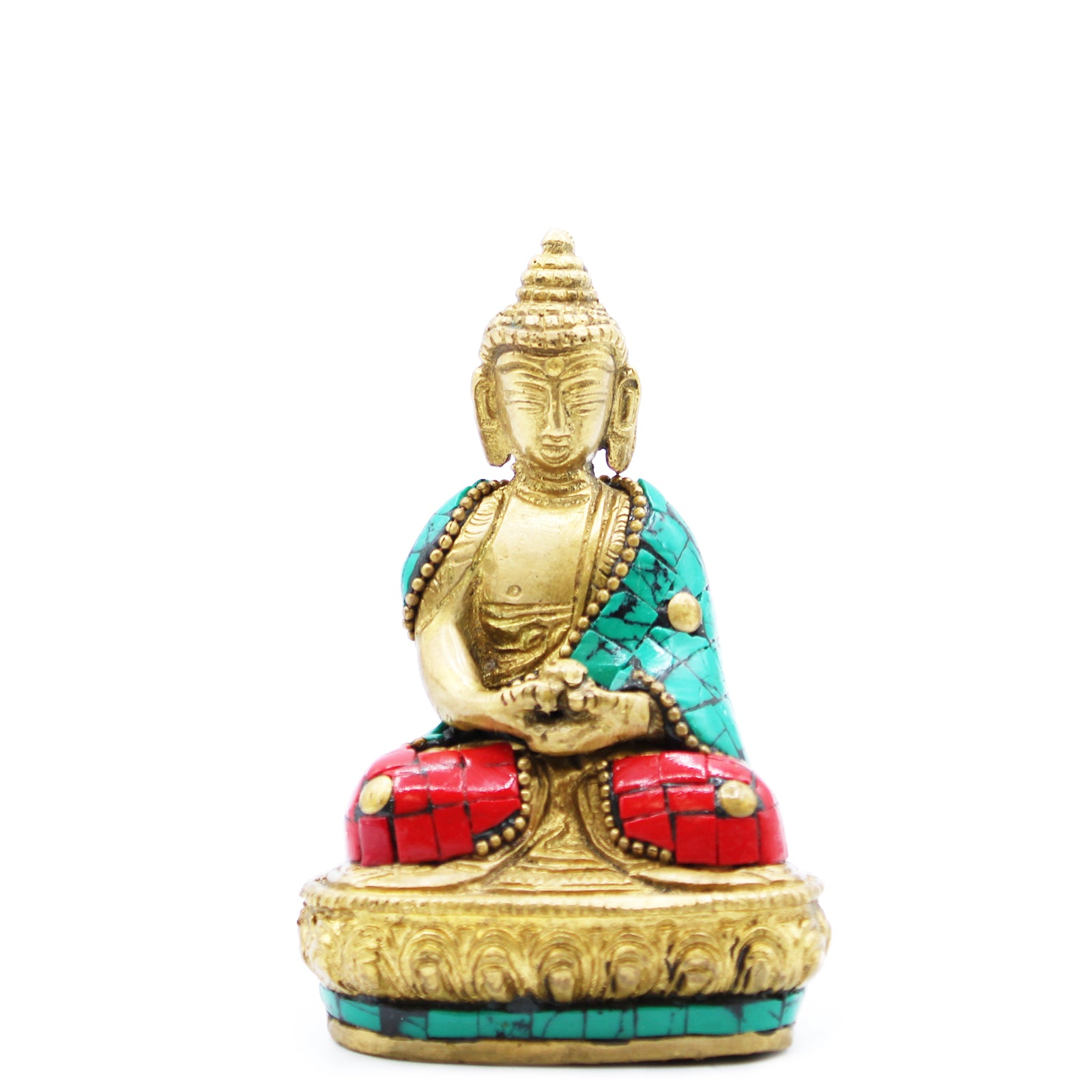 Hand crafted. Genuine brass artifacts. They feel heavy for their size and come carefully packaged for safe transit. Beautiful authentic designs with carnelian and turquoise details. Note the different hand positions of the Buddha each with a specific spiritual meaning.