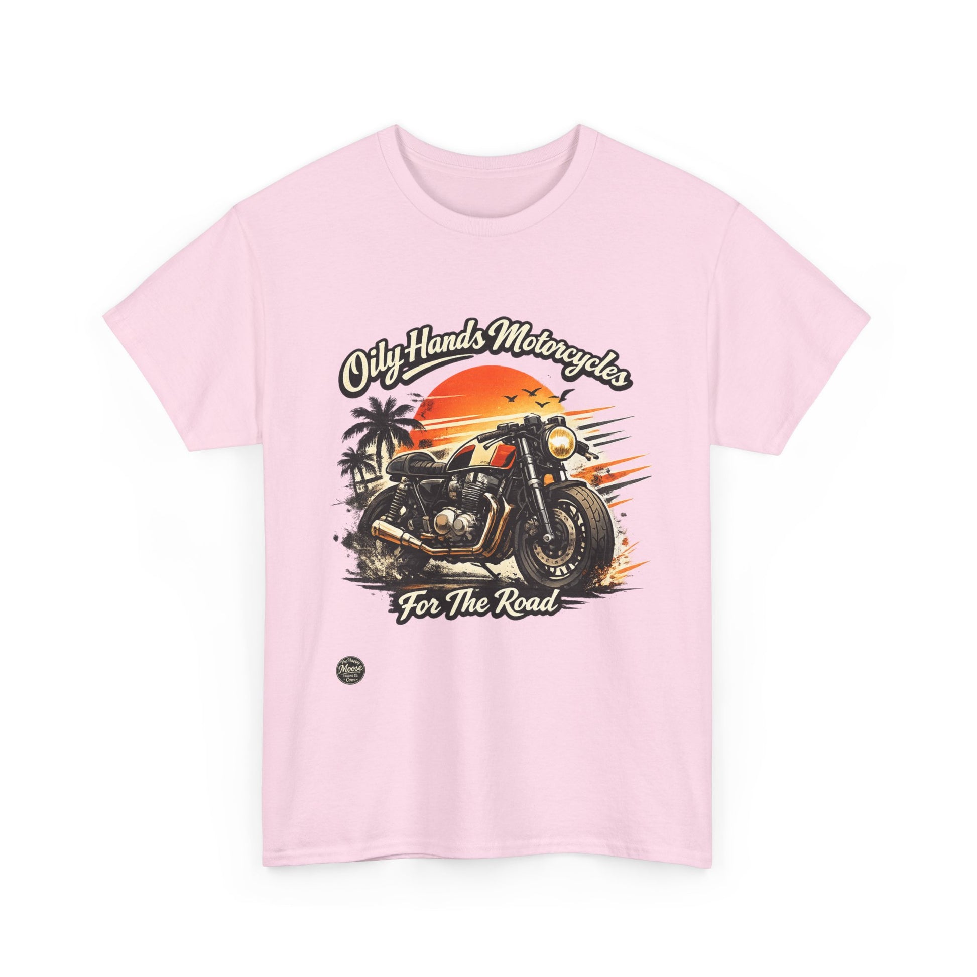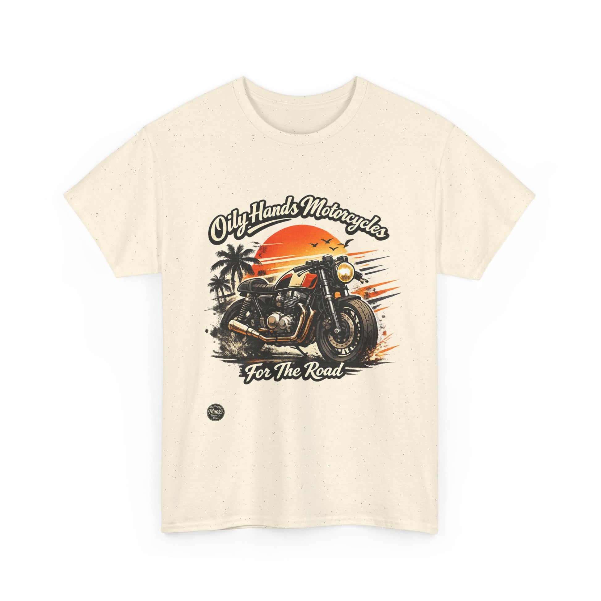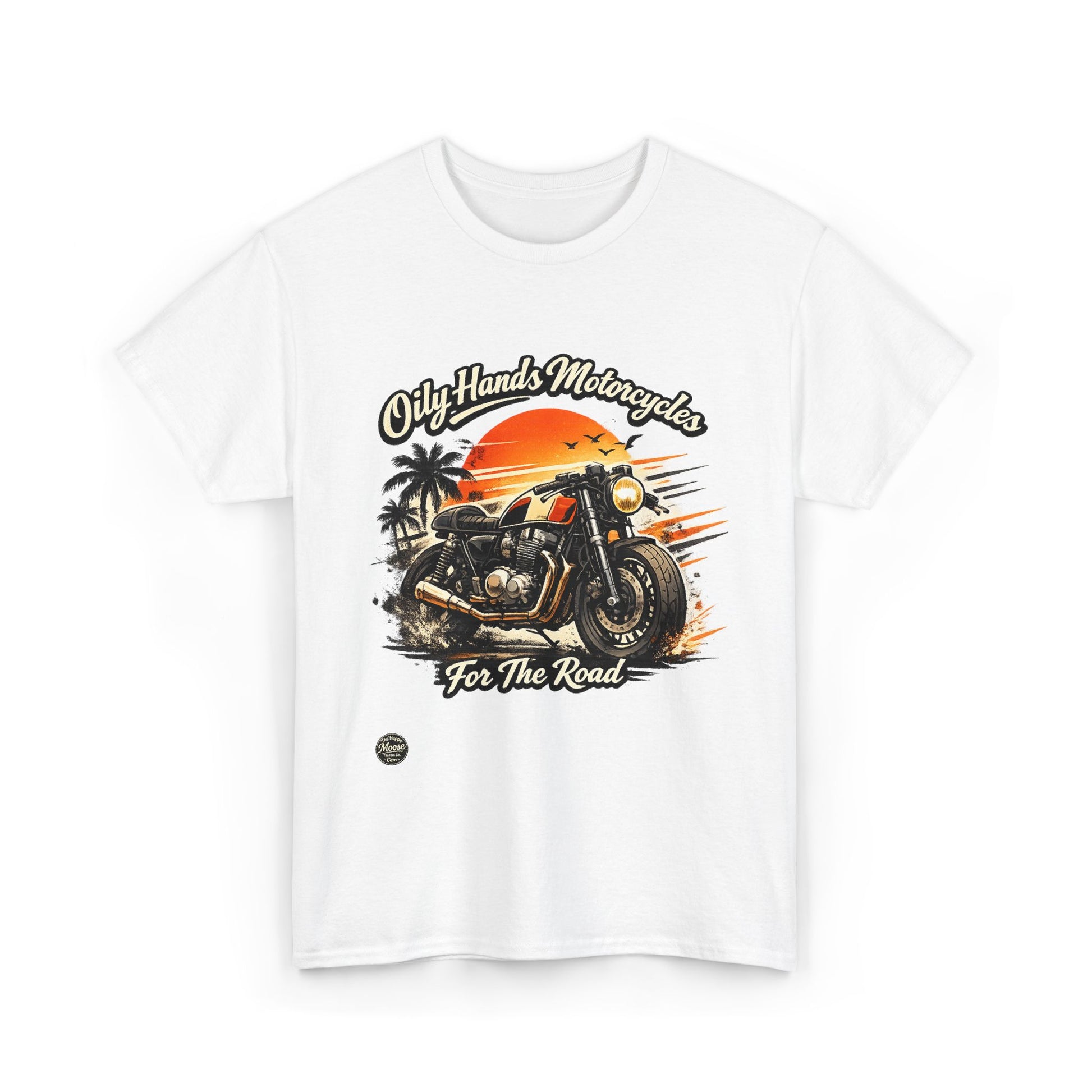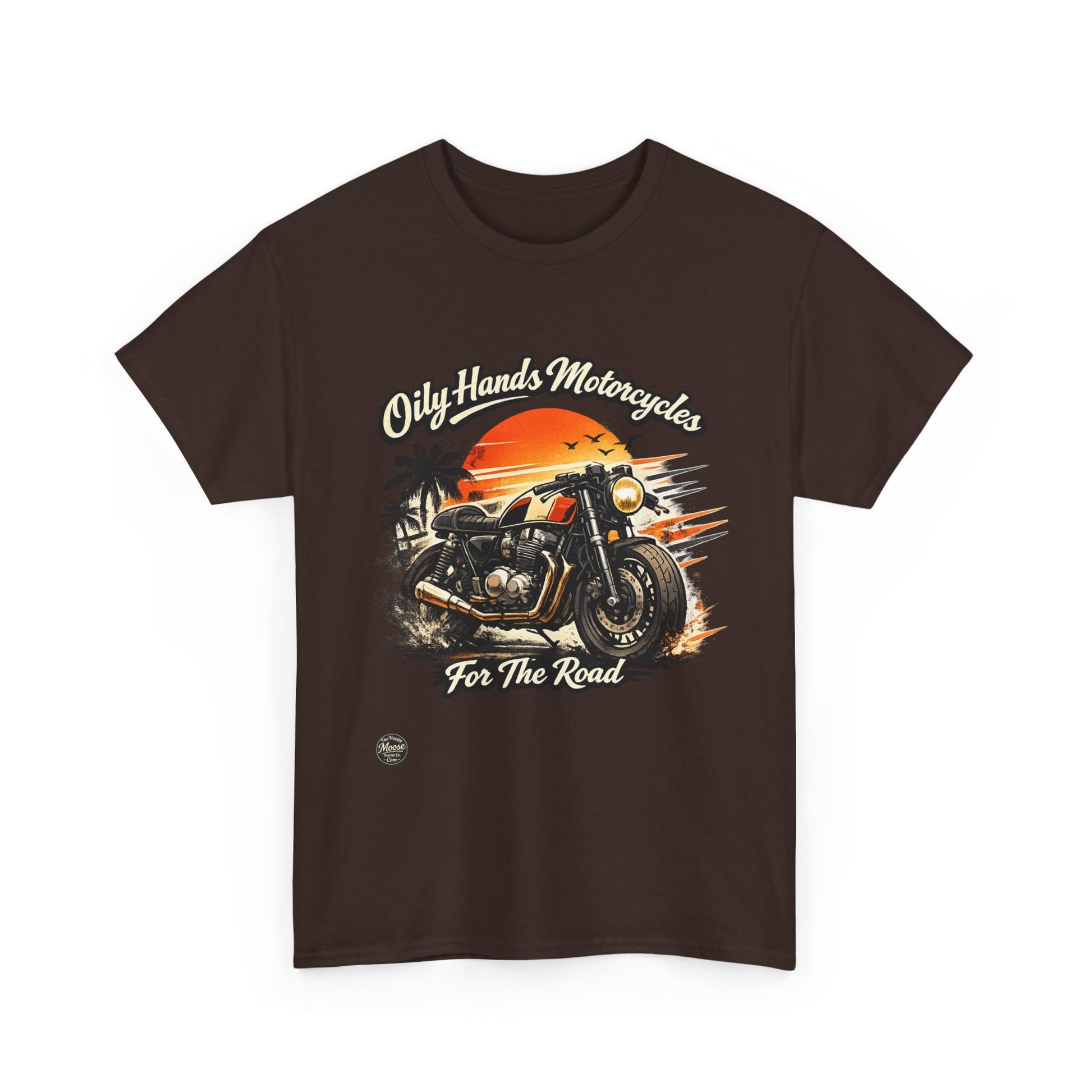 Oily Hands Motorcycle Sunset Tee — "Only Hands Motorcycles For The Road" Riding T-Shirt #001 E