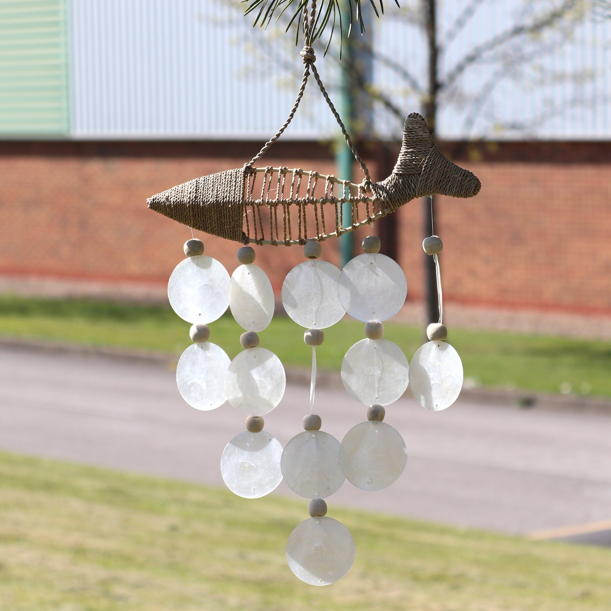 Holen Sie sich die Natur ins Haus mit diesen wunderschönen Treibholz-Windspielen. Handgefertigt aus Strandmaterialien wie Treibholz und Capiz-Glas. Capiz ist eine bekannte Muschel, die beim Wind und beim Schlagen gegen eine andere Muschel einen angenehmen Klang erzeugt.