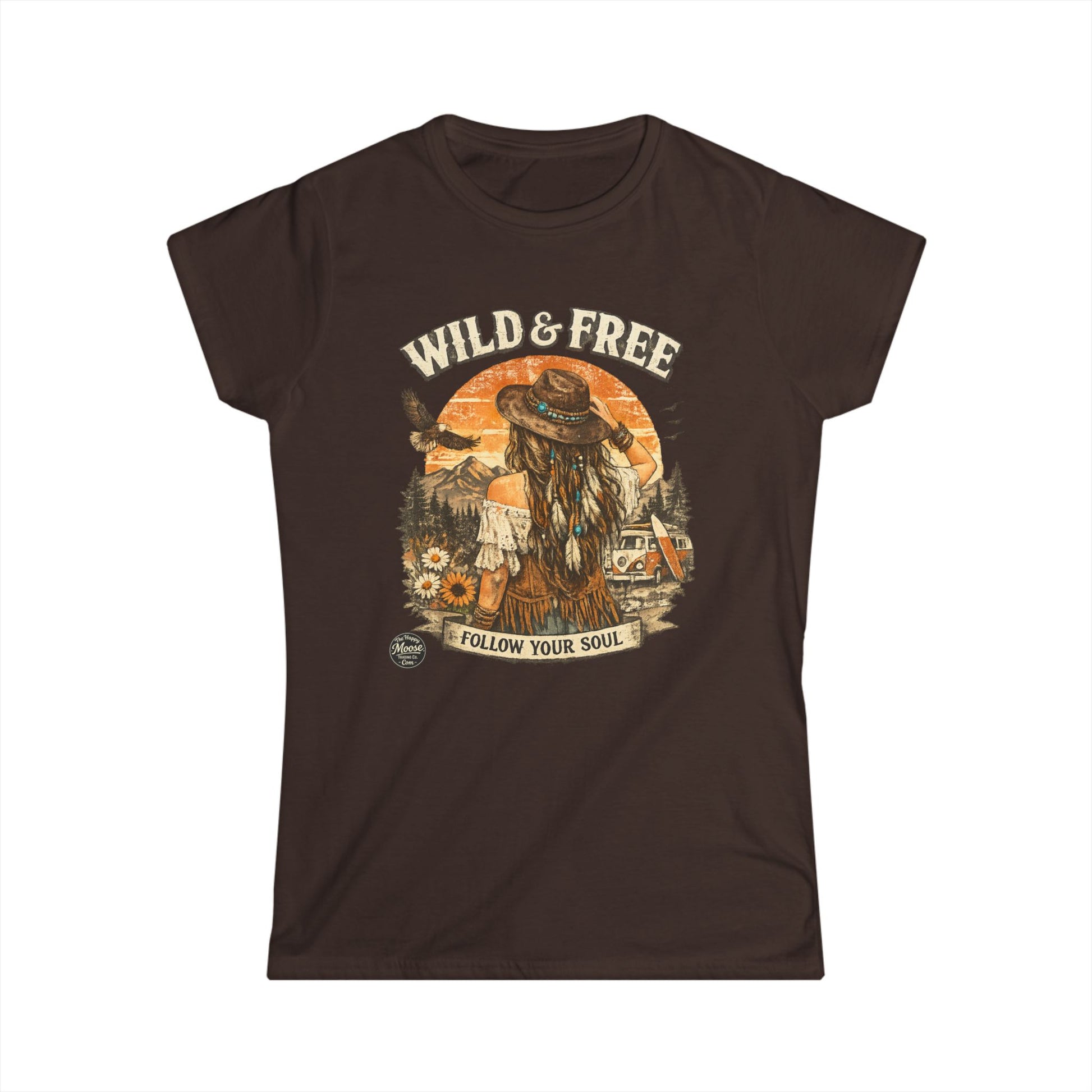 Wild & Free Women's Tee — 'Follow Your Soul' Boho Camping Graphic Shirt