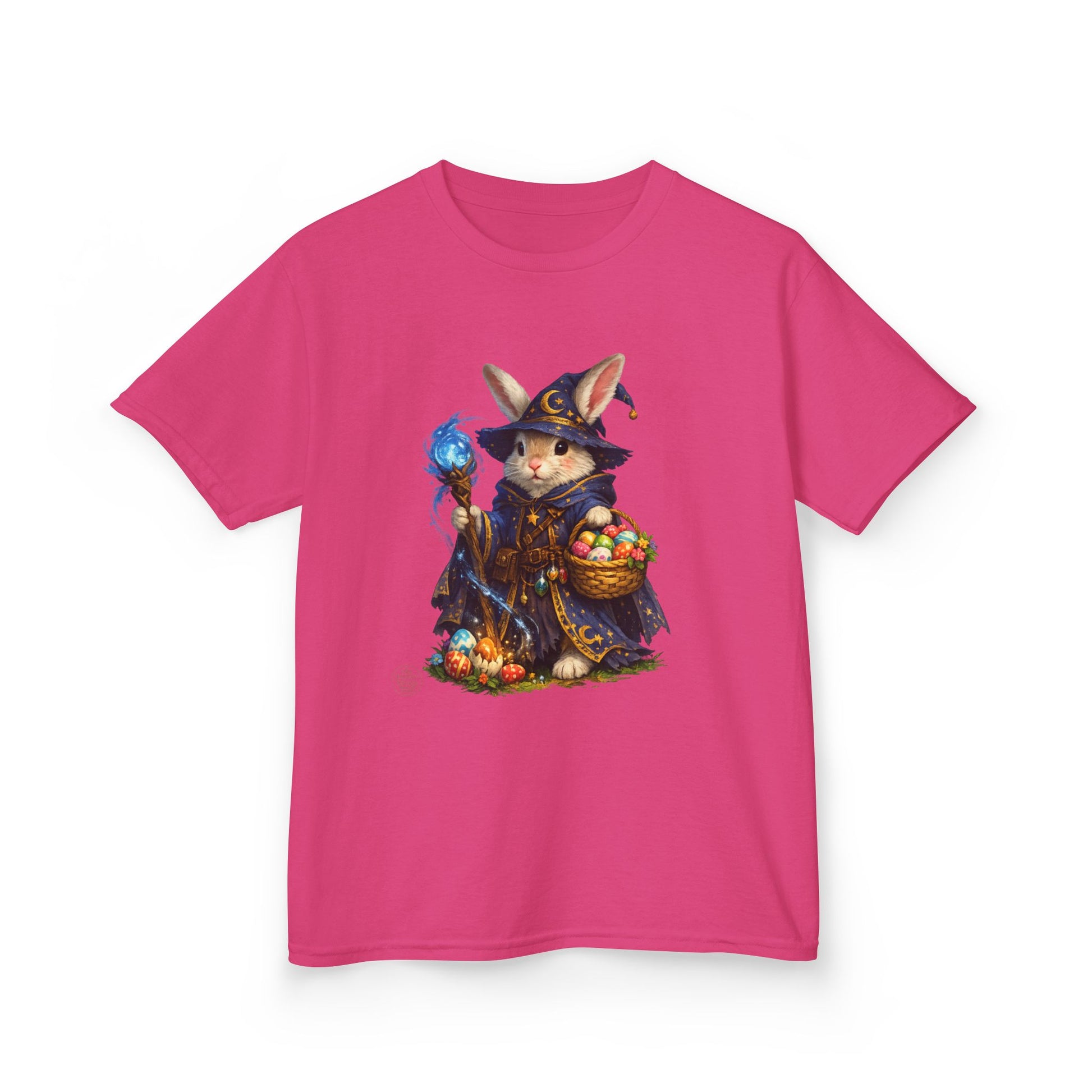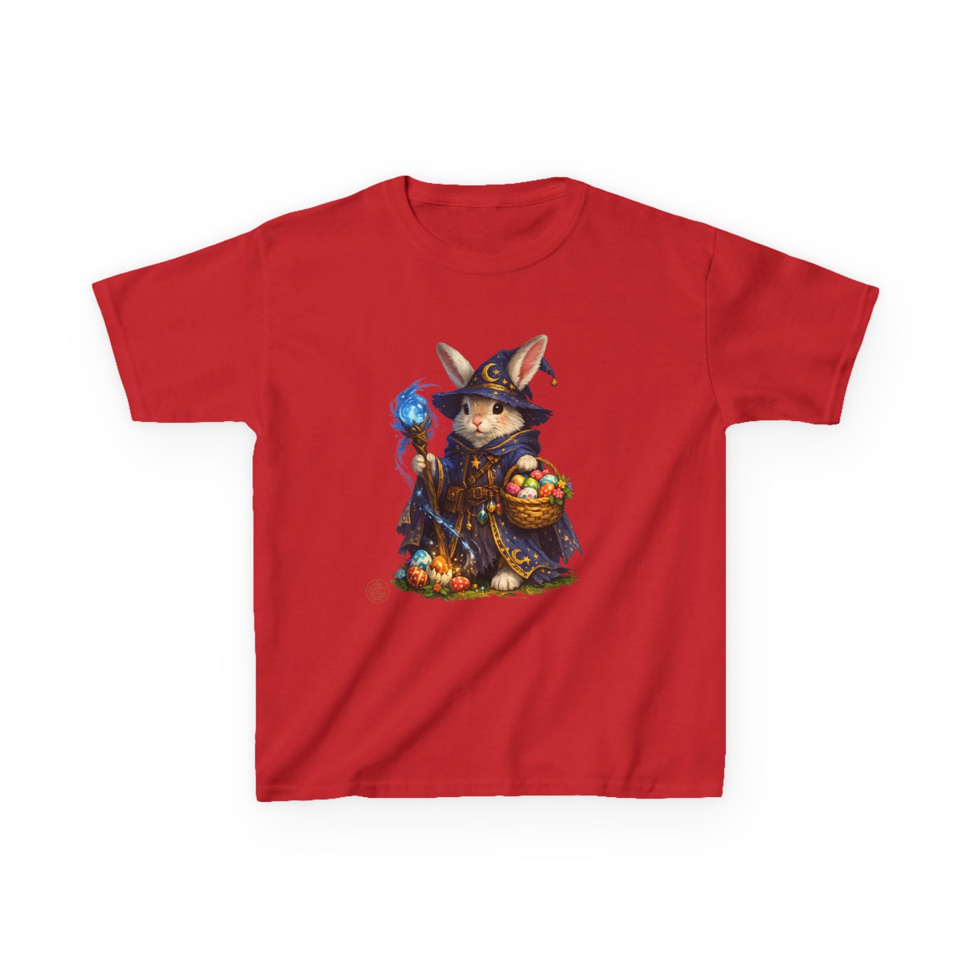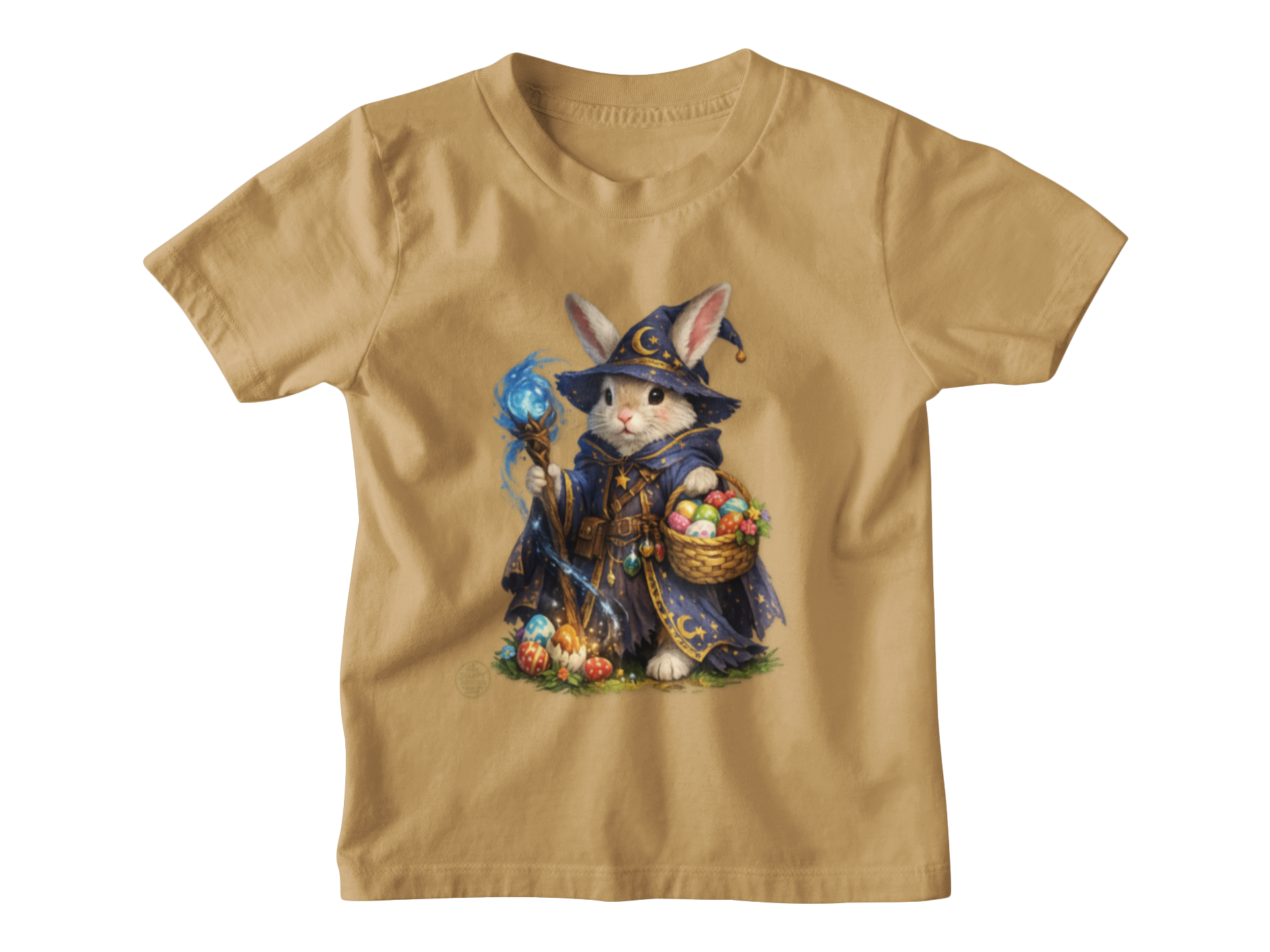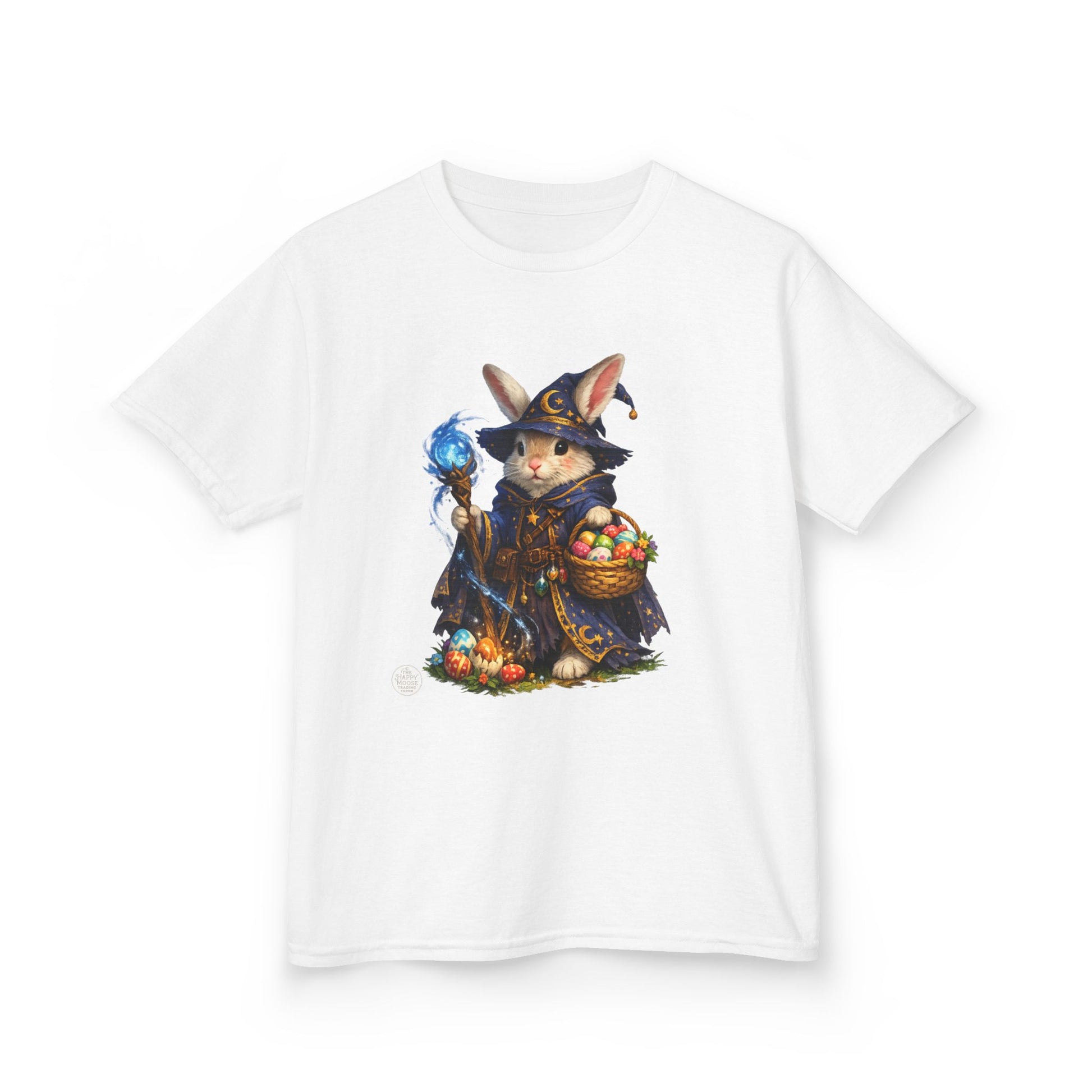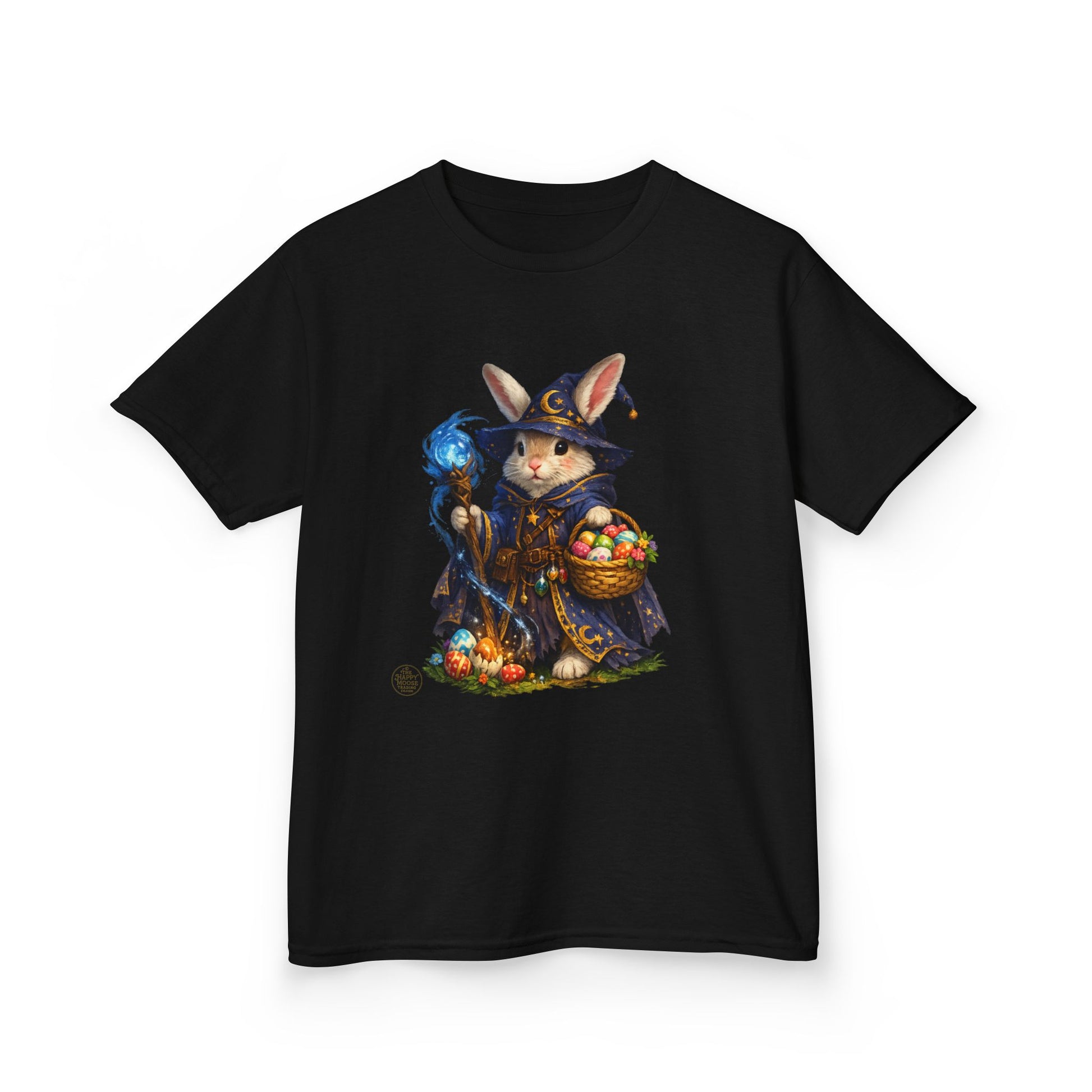 Kids Wizard Bunny T-Shirt — Cute Magic Rabbit with Staff & Basket of Treats