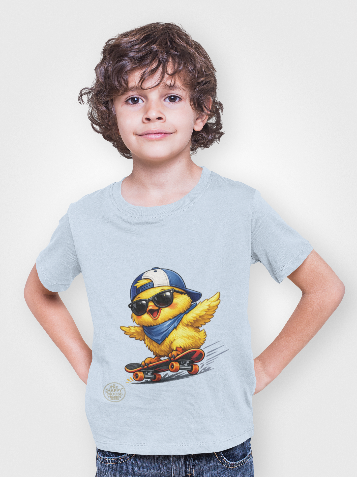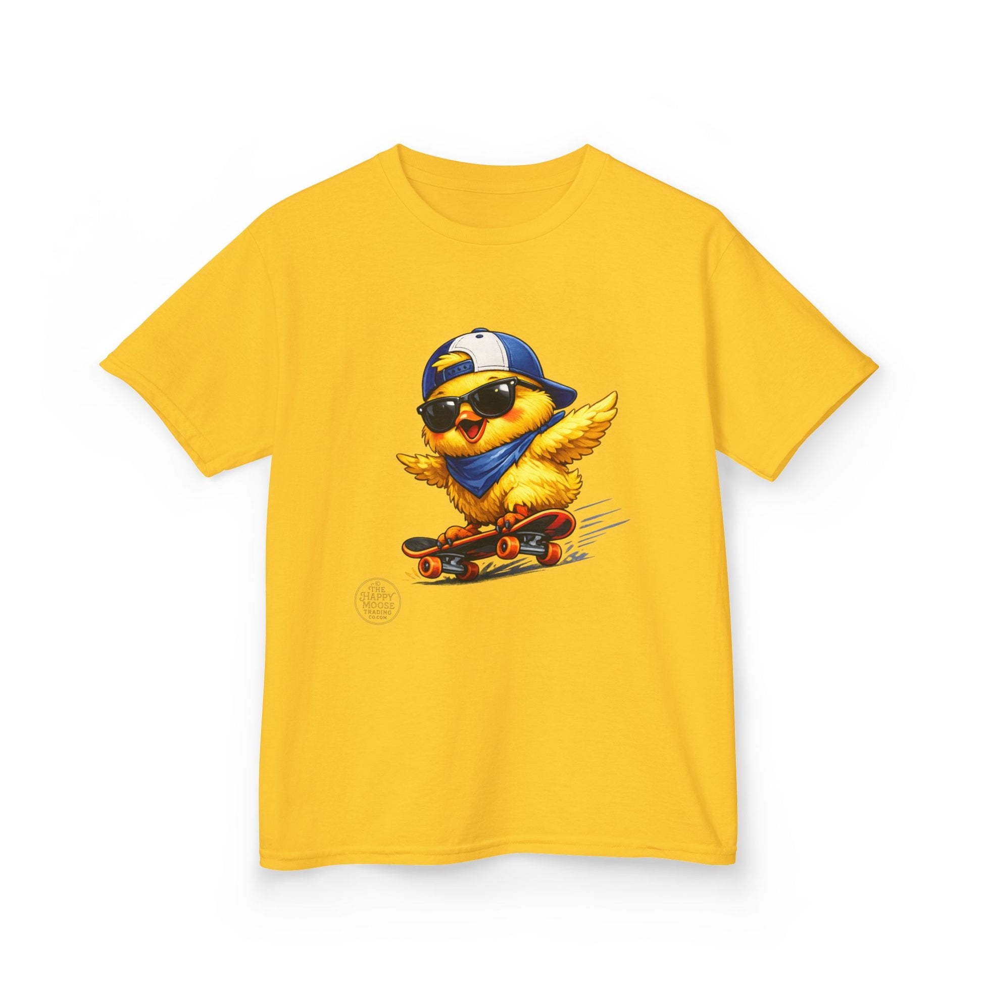 Bright, playful, and built for everyday adventures — this kids tee features a sunlit chick cruising on a skateboard, sunglasses on and attitude to match. Lightweight yet sturdy midweight cotton drapes comfortably while the ribbed collar and shoulder tape keep the shape through playtime and washes. Soft to the touch and free from scratchy tags, it feels like a go-to shirt for backyard races, park trips, and sunny neighborhood hangs. The cheerful illustration brings energy to casual outfits and sparks smiles from caregivers and kids alike.