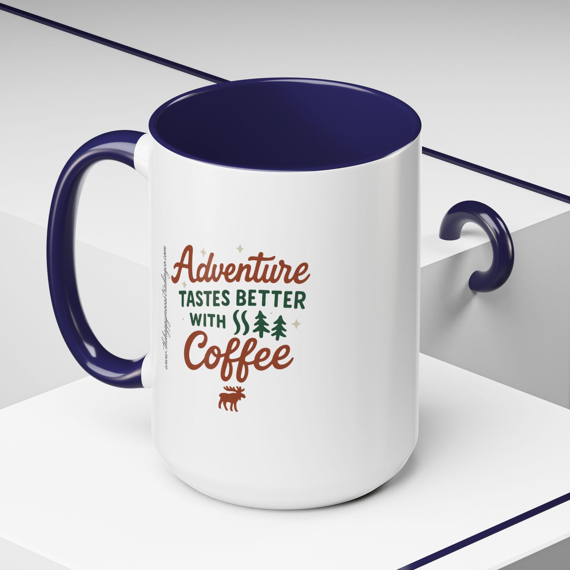 Adventure Tastes Better With Coffee Mug — "Adventure Tastes Better with Coffee" Rustic Outdoor Camper Gift (11/15oz)