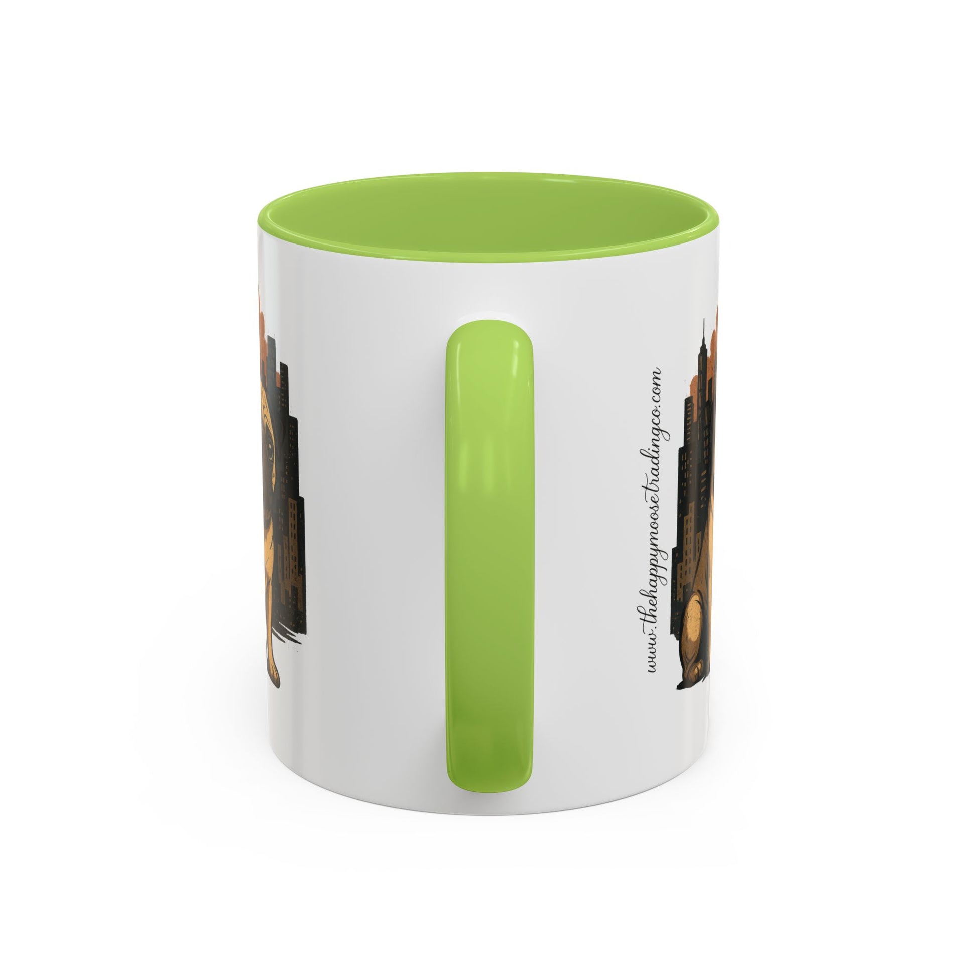 This ceramic accent mug brings a quiet, cozy moment to your morning ritual. The glossy white exterior contrasts with a bold colored interior and handle, turning a simple cup of coffee into a small, intentional pause. The artwork wraps subtly around the mug, so the design peeks as you sip. It feels at home on a cluttered desk, a sunlit kitchen counter, or beside a stack of dog-eared paperbacks. Built for everyday use, it balances bright, crisp color with dependable durability, so that each refill keeps the mood steady and familiar.