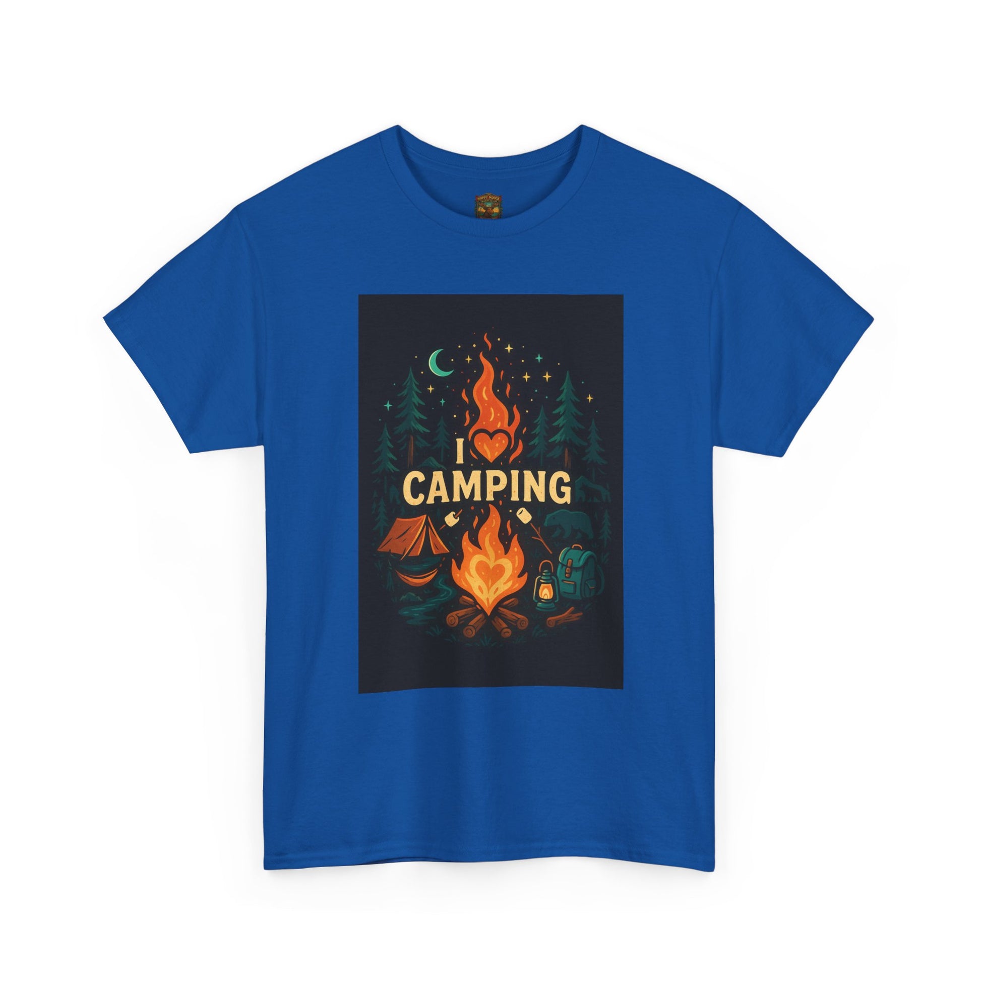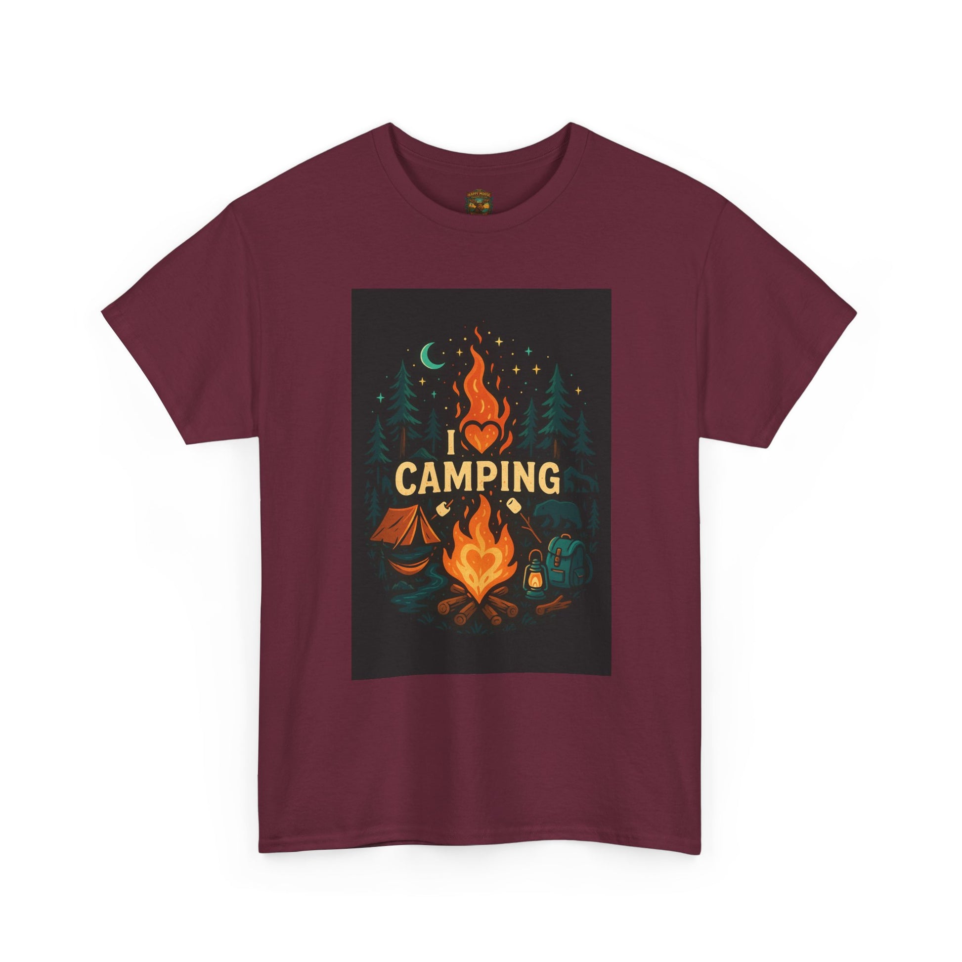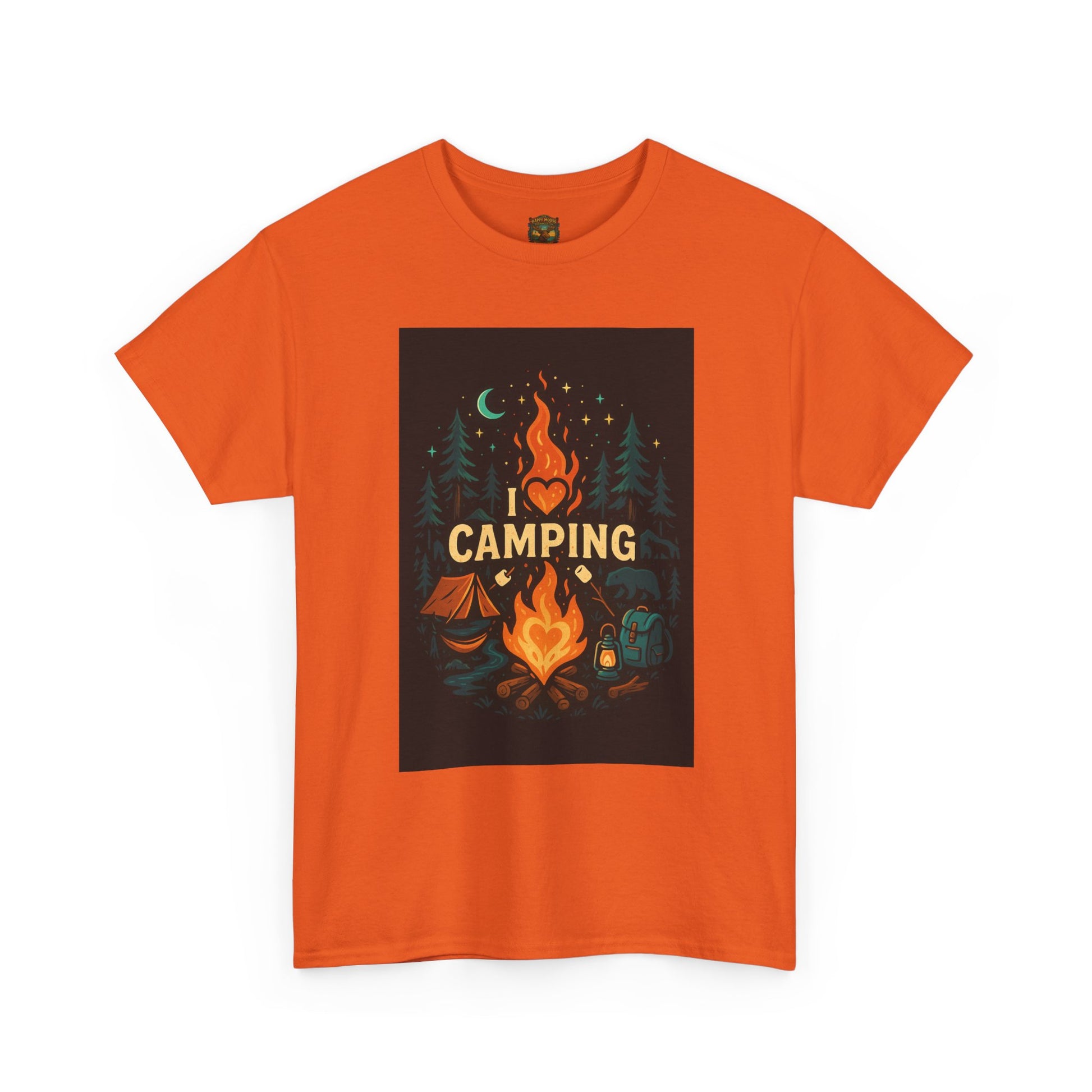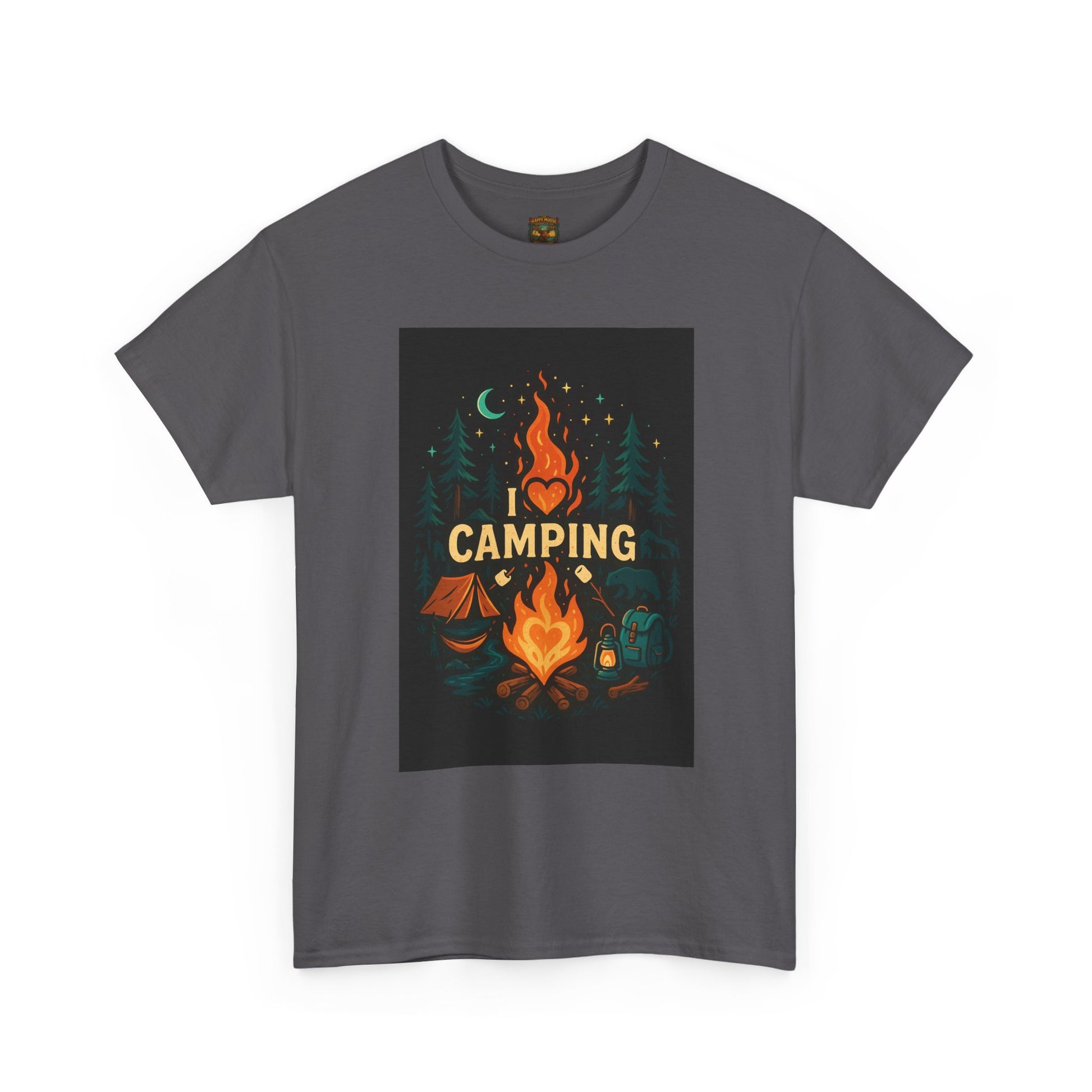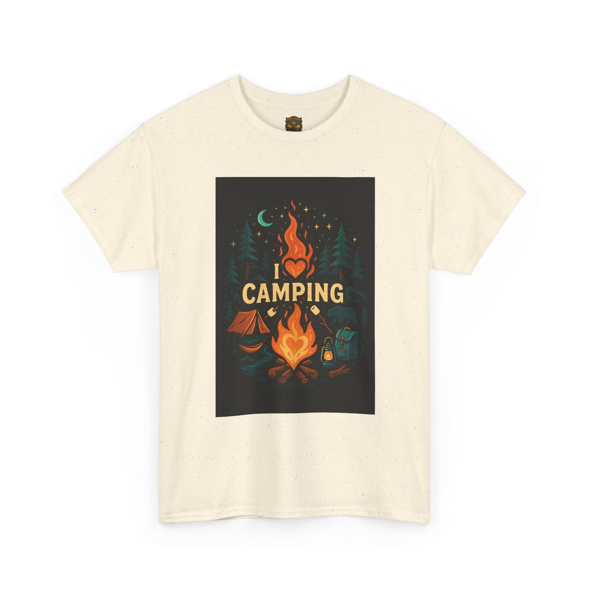 This soft, classic-fit tee wears like a favorite on cool evenings by the fire. A warm, illustrated camp scene sits centered on the chest—glowing flames, a crescent moon and fir silhouettes—calling to slow nights, shared stories, and marshmallows on a stick. The medium-weight cotton holds printed detail beautifully and keeps its shape wash after wash. It layers easily under a flannel or over a long-sleeve when the temperature drops, becoming the go-to top for trailheads, campsite chores, and relaxed post-hike hangs. Product features - Twill shoulder tape for stabilized shape and reduced stretch - Tubular knit (no side seams) for cleaner look and less fabric waste - Ribbed, seam-free collar keeps neckline elastic and shape-retentive - Medium-weight 100% cotton fabric (180 g/m²) with crisp DTG/DTF prints - Classic relaxed fit with tear-away label for comfortable, irritation-free wear Care instructions - Non-chlorine: bleach as needed - Do not iron - Do not dryclean - Machine wash: cold (max 30C or 90F) - Tumble dry: low heat