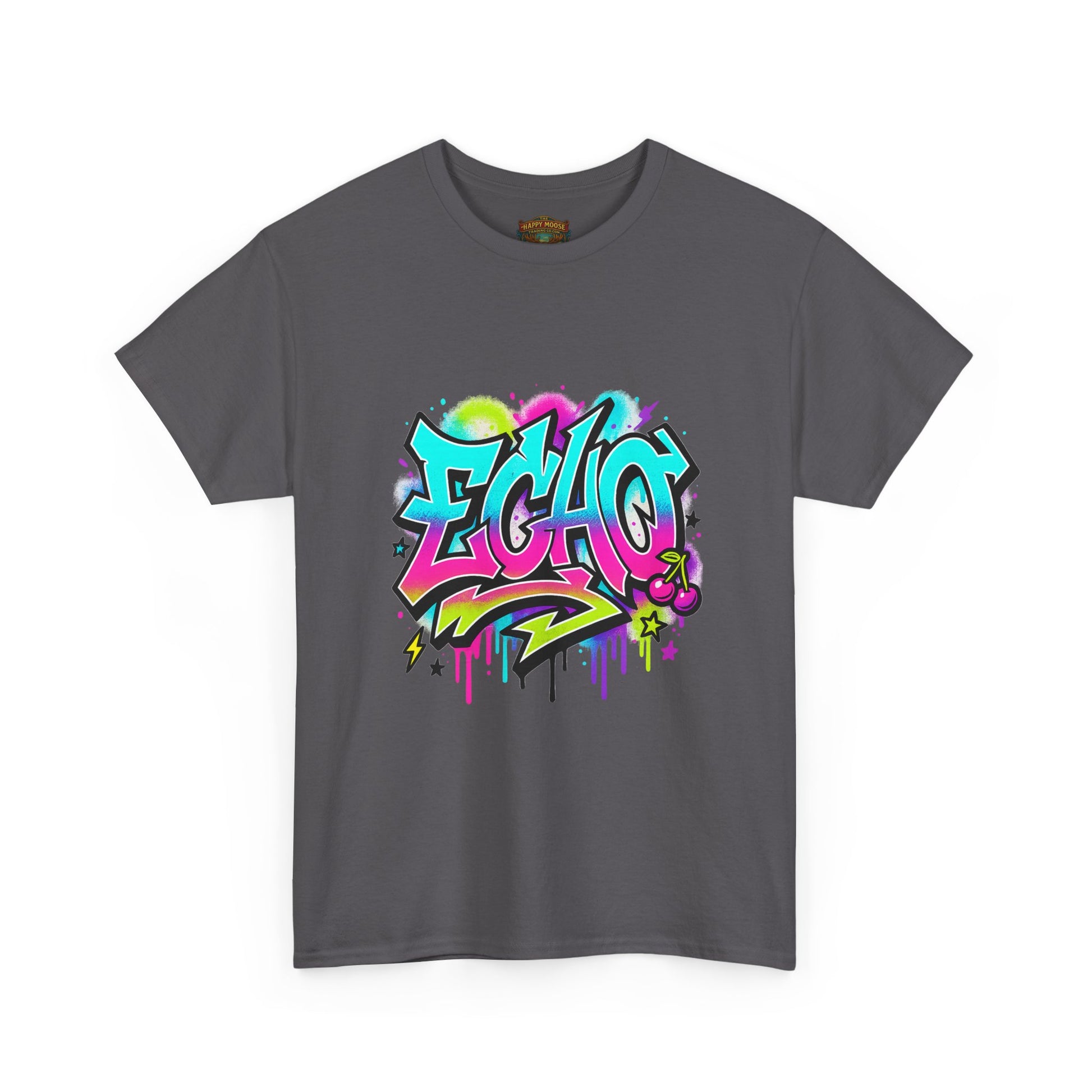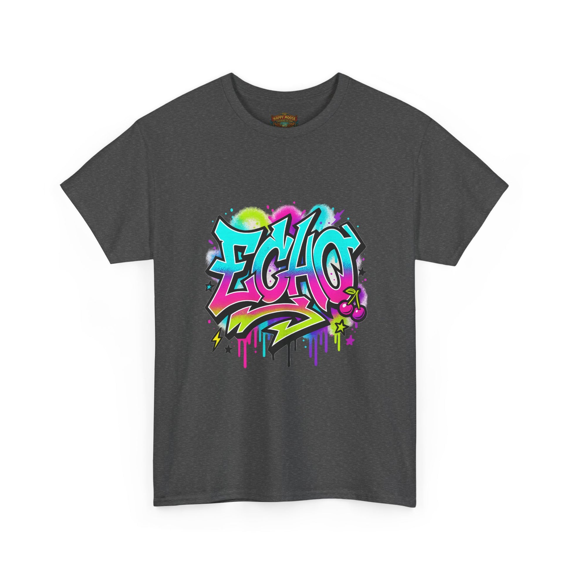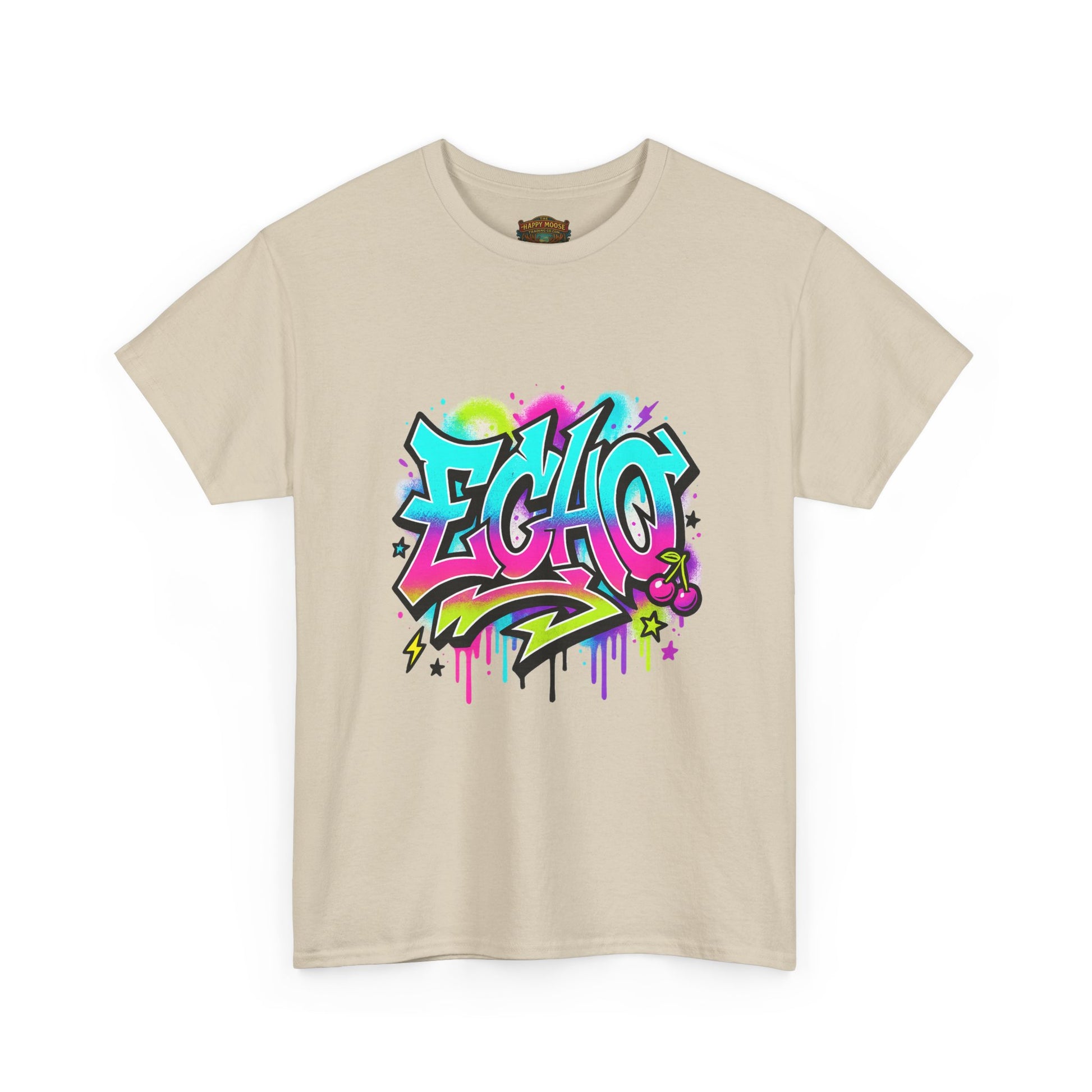 ECHO stamped across the chest on a classic crew tee — subtle, straightforward, and built to last. This cotton shirt feels familiar from the first wear: slightly textured in the Natural shade, smooth in solid tones, with a ribbed collar that springs back and keeps its shape. The tubular knit body gives a clean silhouette without side seams, so the graphic sits flat and centered. Durable construction—shoulder twill tape, medium-weight fabric, and secure printing—means this tee moves with you through mornings, late nights, and every small moment between. Wear it to town, to the studio, or layered under a jacket for a low-key look that speaks quietly but clearly.