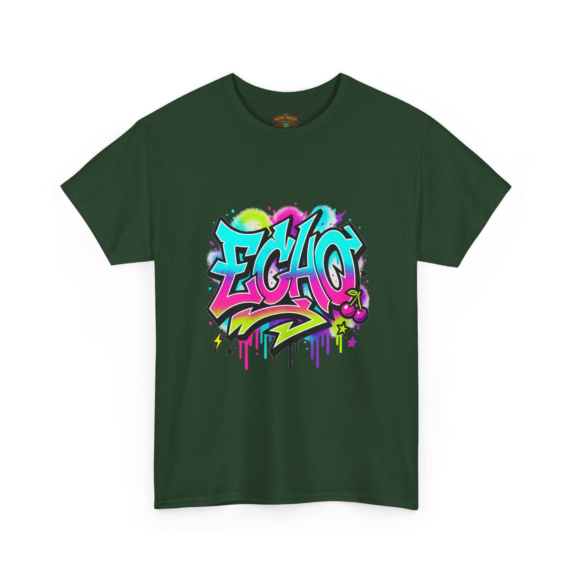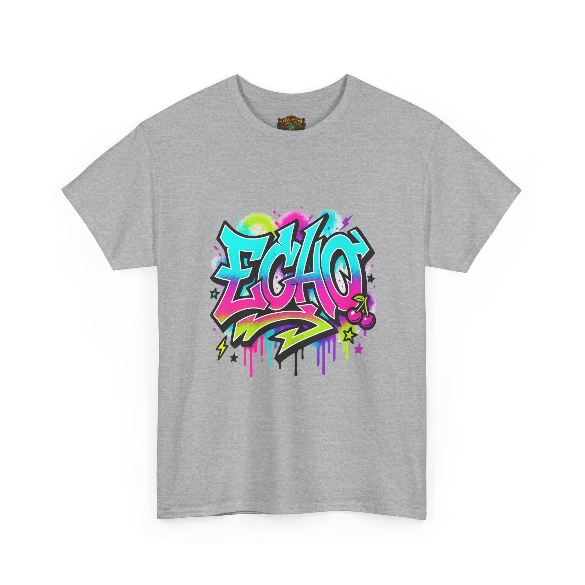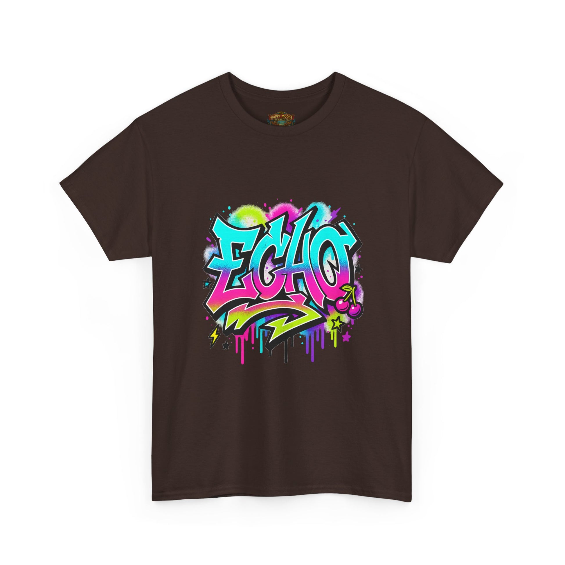 ECHO stamped across the chest on a classic crew tee — subtle, straightforward, and built to last. This cotton shirt feels familiar from the first wear: slightly textured in the Natural shade, smooth in solid tones, with a ribbed collar that springs back and keeps its shape. The tubular knit body gives a clean silhouette without side seams, so the graphic sits flat and centered. Durable construction—shoulder twill tape, medium-weight fabric, and secure printing—means this tee moves with you through mornings, late nights, and every small moment between. Wear it to town, to the studio, or layered under a jacket for a low-key look that speaks quietly but clearly.