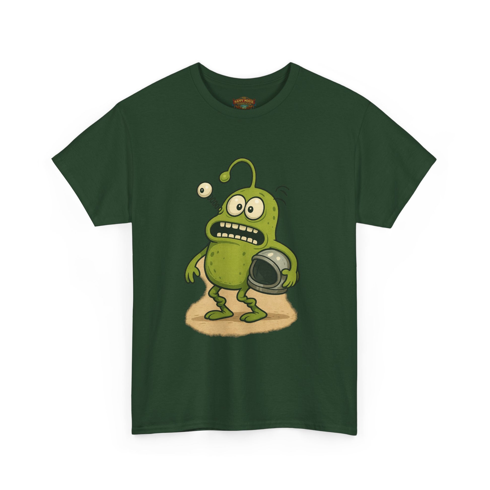Green Alien Cartoon Tee | Funny Space Monster Illustration