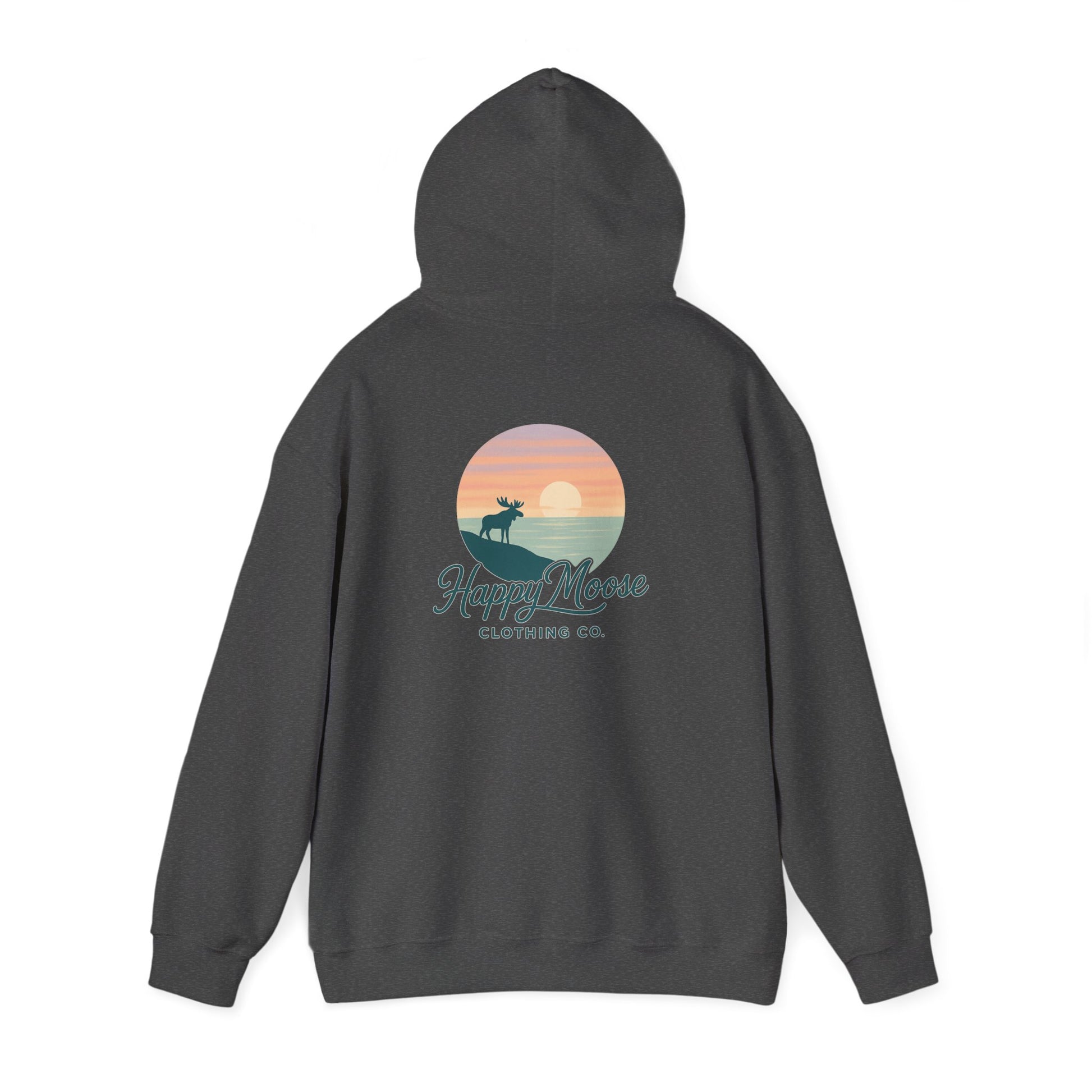 Happy Moose Hoodie — Sunset Lake Graphic Hooded Sweatshirt