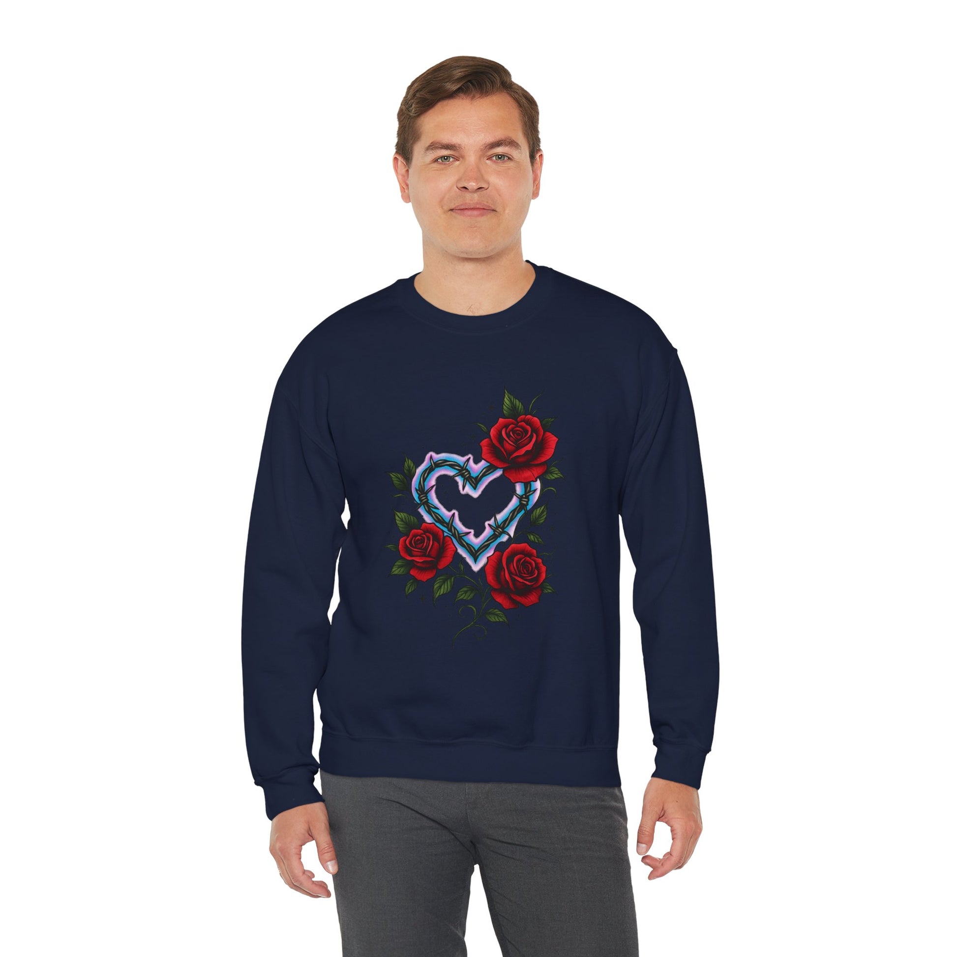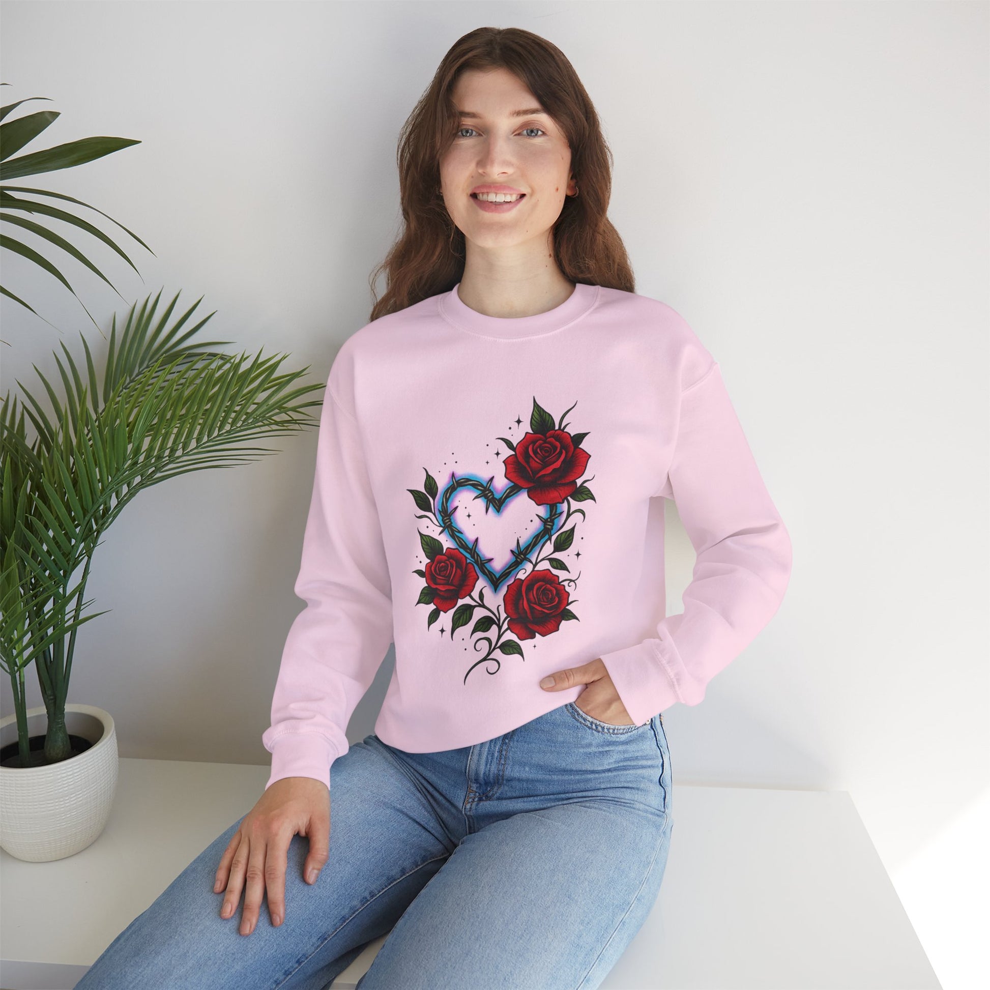 Heart & Roses Crewneck Sweatshirt — Gothic Floral Heart Design