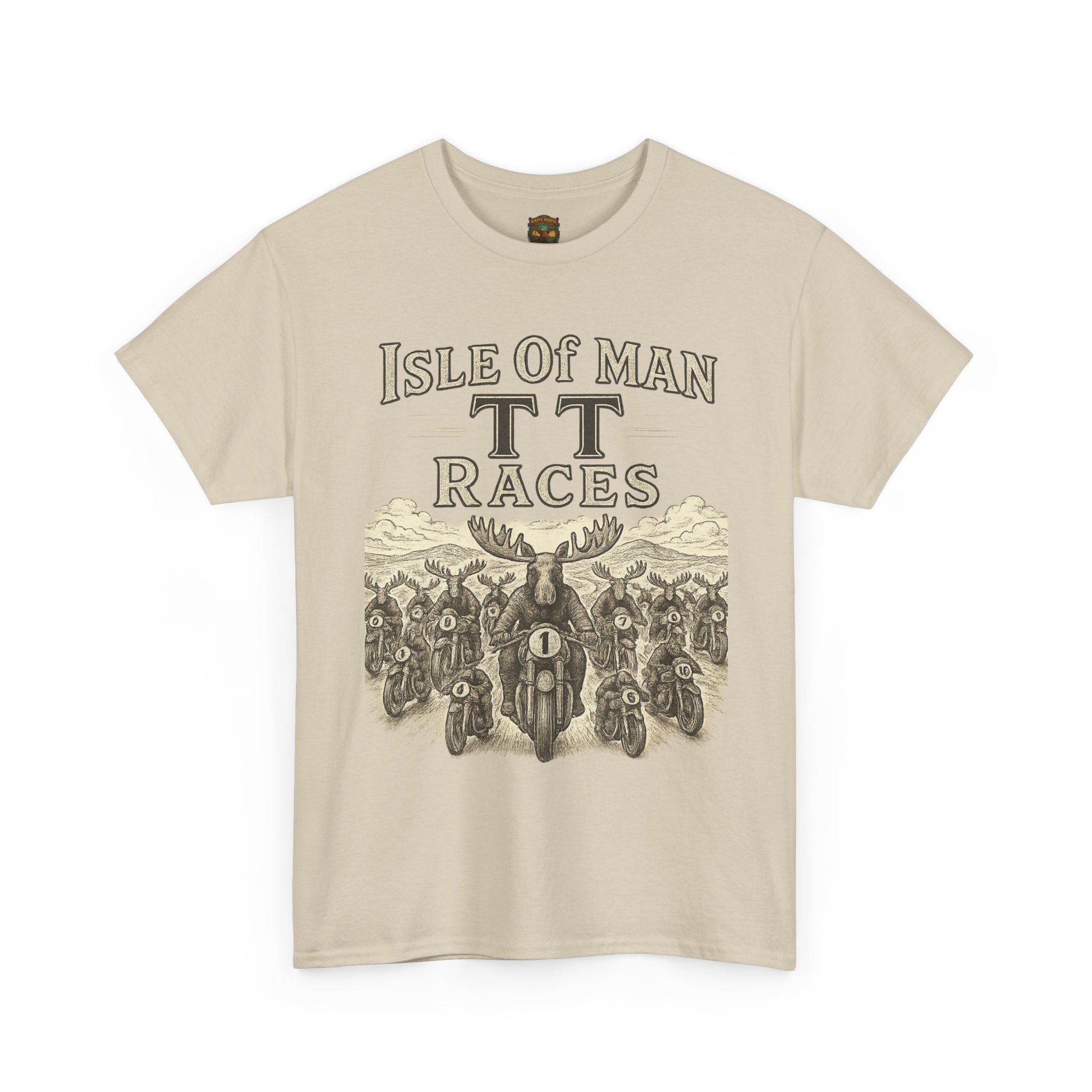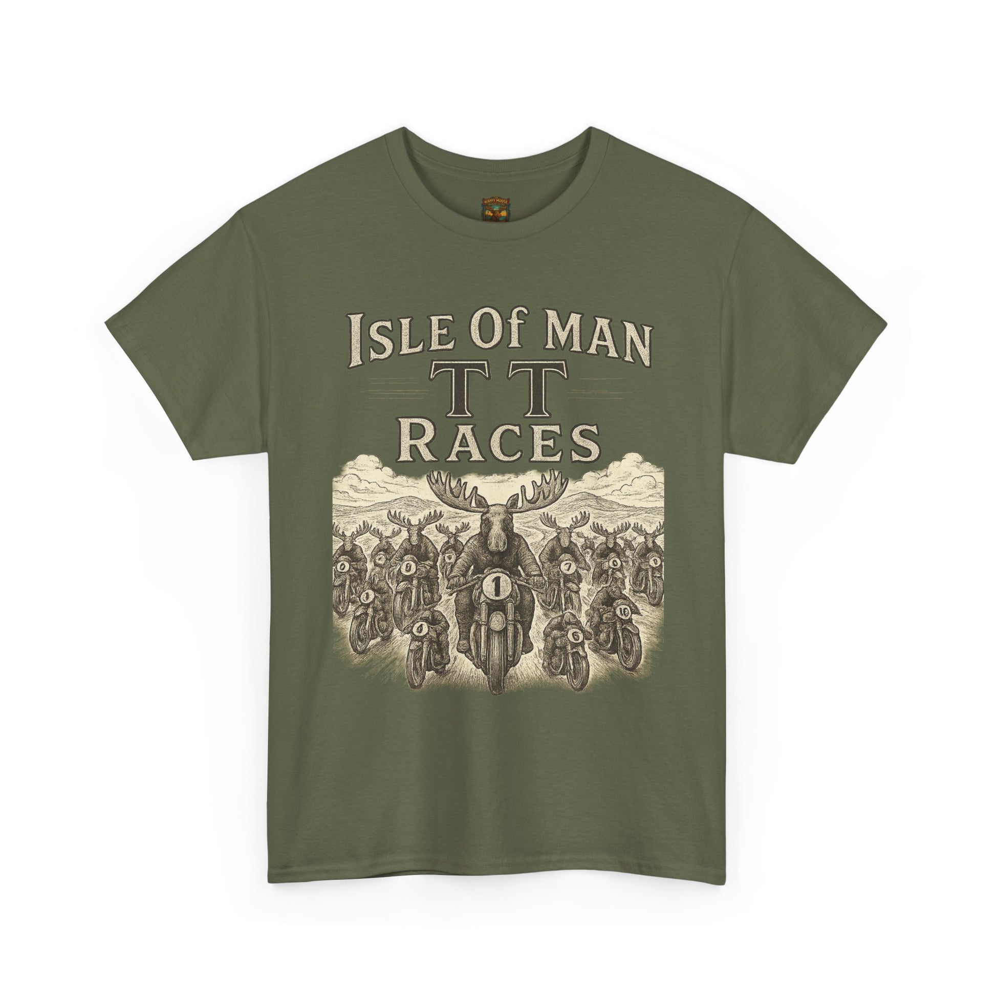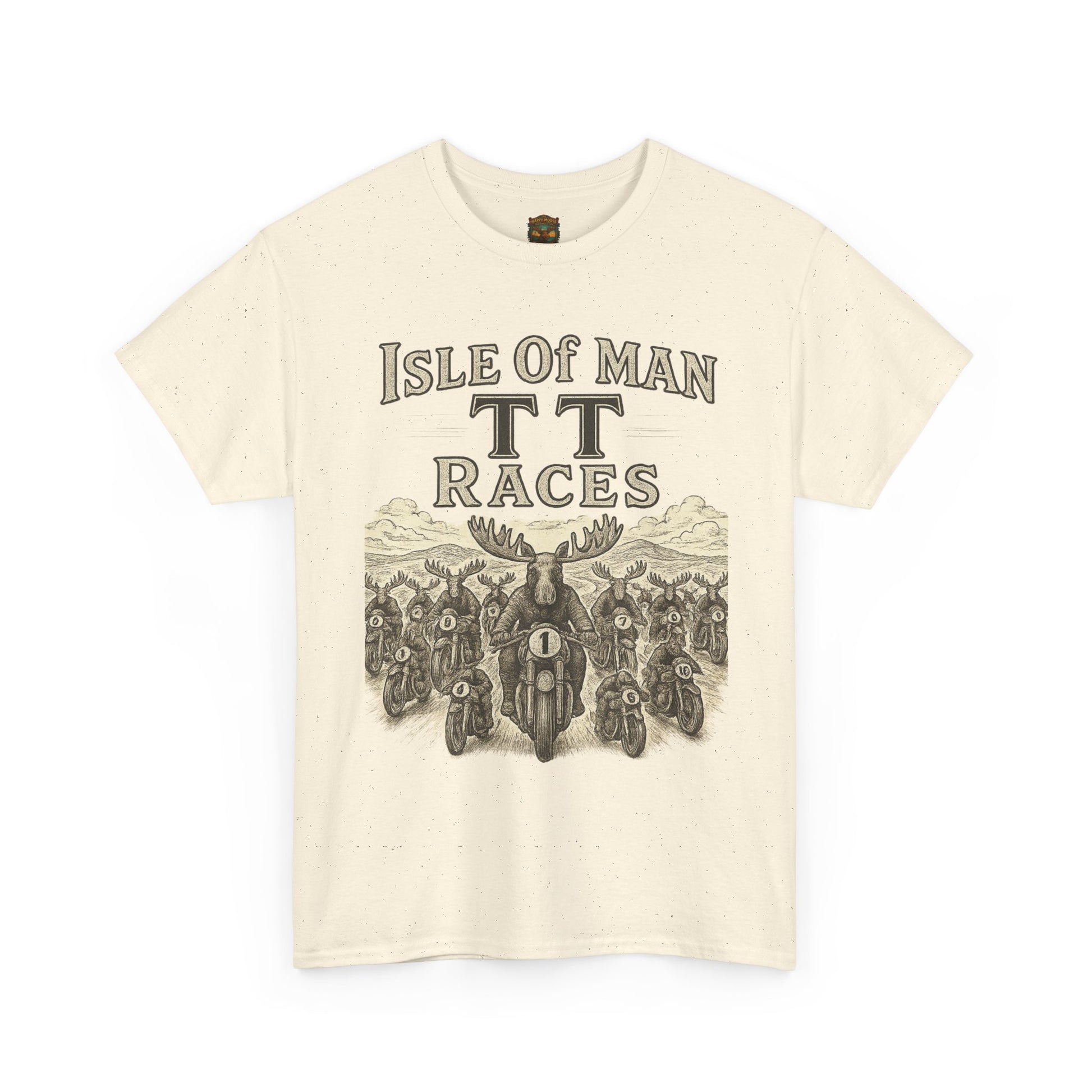 This classic crew-neck tee carries the grit and glory of the Isle of Man TT races in a warm, faded-print style. The front shows a vintage motorcycle pack charging toward the viewer with rolling hills behind — the kind of design that feels lived-in from day one. Wear it to weekend rides, race-day meetups, or tucked under a leather jacket for a layered look that nods to racing history without shouting. Soft yet sturdy, the shirt settles into a comfortable shape and keeps its collar and sleeves in good order after plenty of wears and washes. It’s for people who live for the road, the engine note, and the stories that come off long rides with friends.