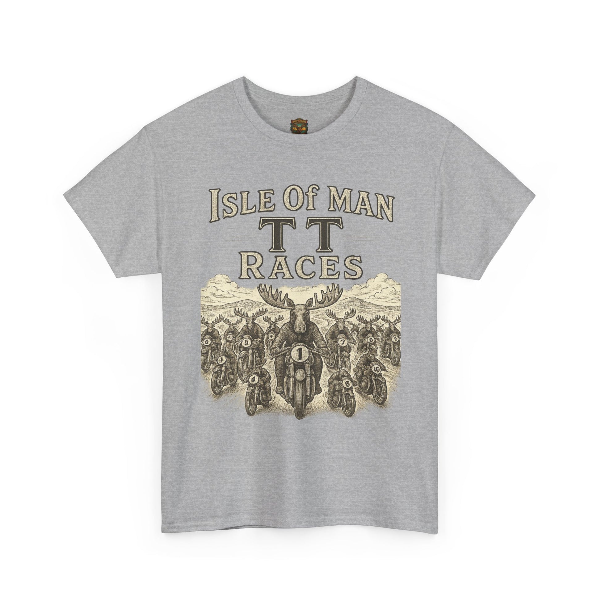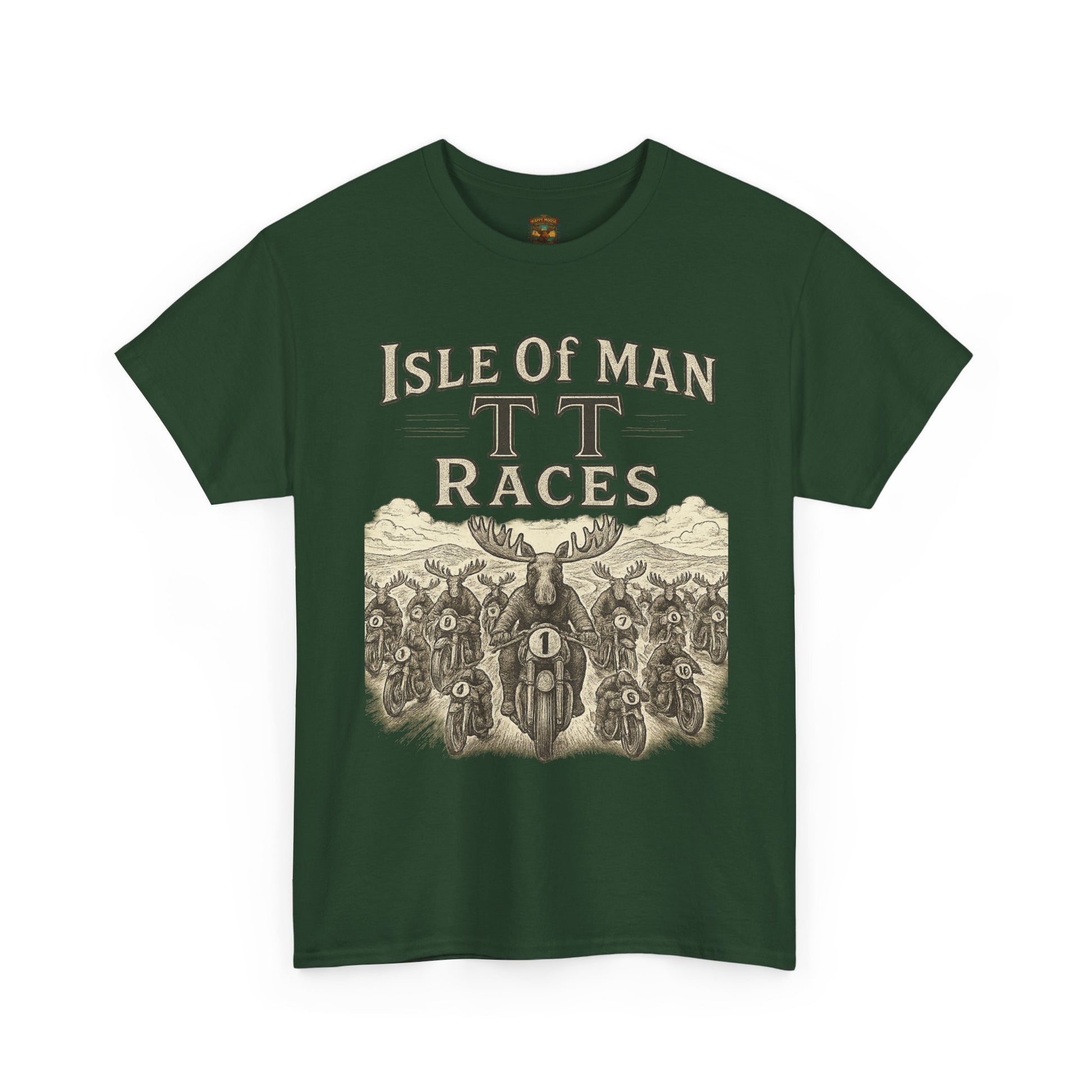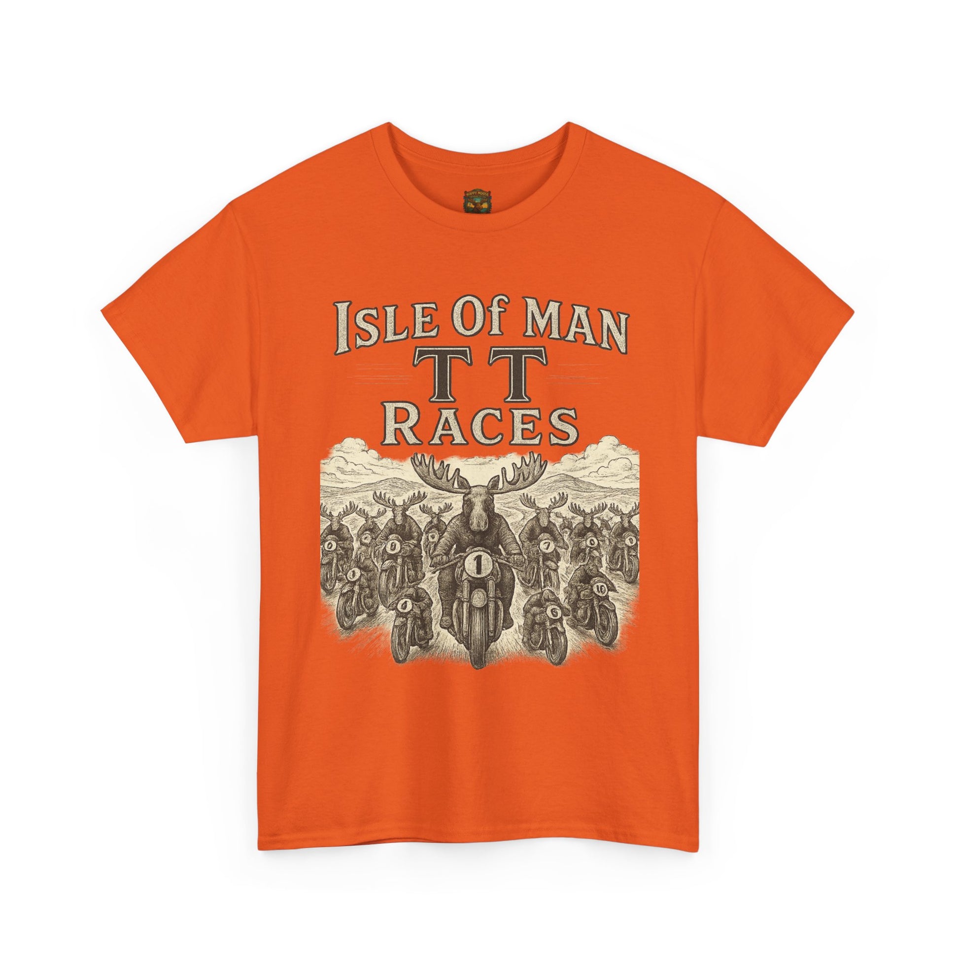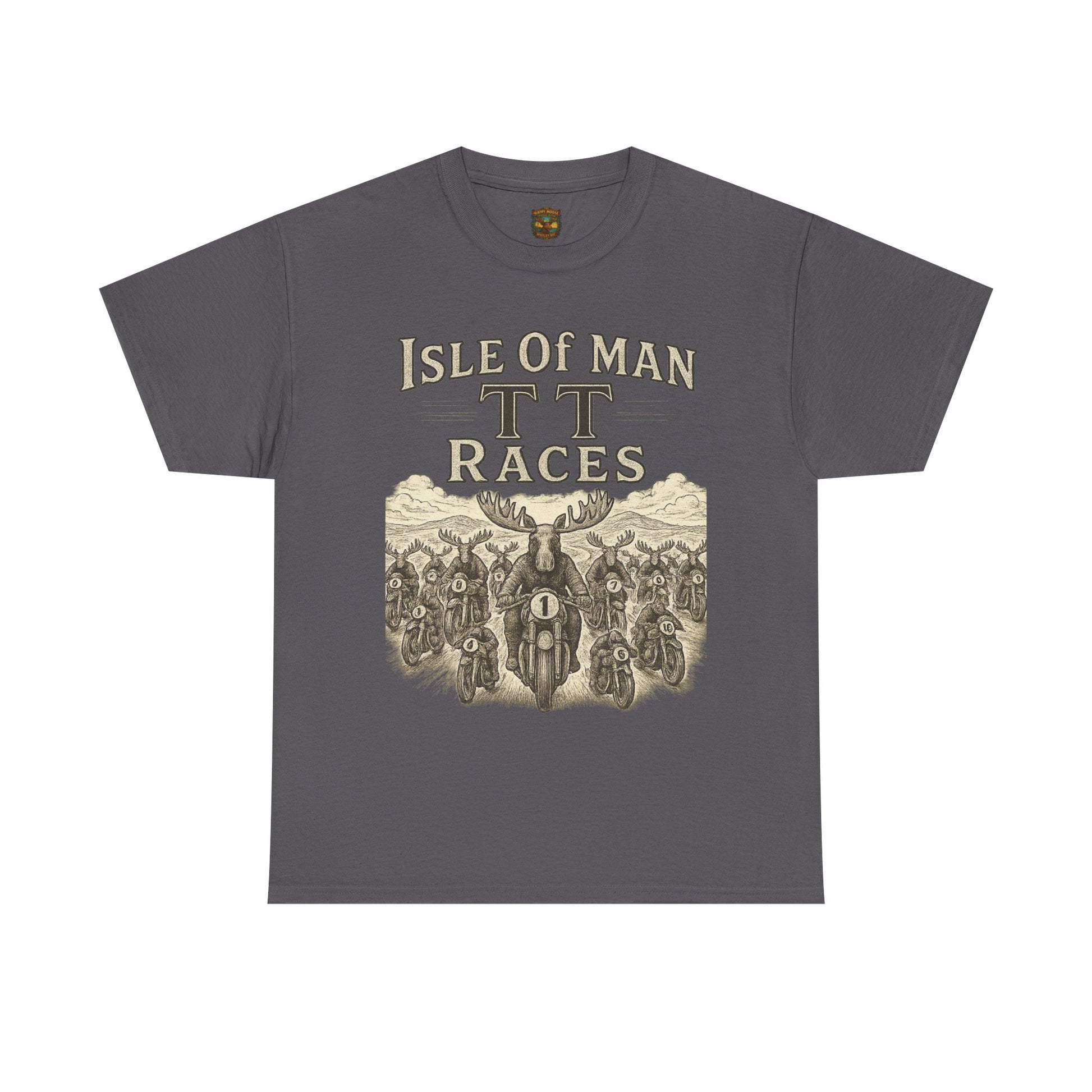 This classic crew-neck tee carries the grit and glory of the Isle of Man TT races in a warm, faded-print style. The front shows a vintage motorcycle pack charging toward the viewer with rolling hills behind — the kind of design that feels lived-in from day one. Wear it to weekend rides, race-day meetups, or tucked under a leather jacket for a layered look that nods to racing history without shouting. Soft yet sturdy, the shirt settles into a comfortable shape and keeps its collar and sleeves in good order after plenty of wears and washes. It’s for people who live for the road, the engine note, and the stories that come off long rides with friends.