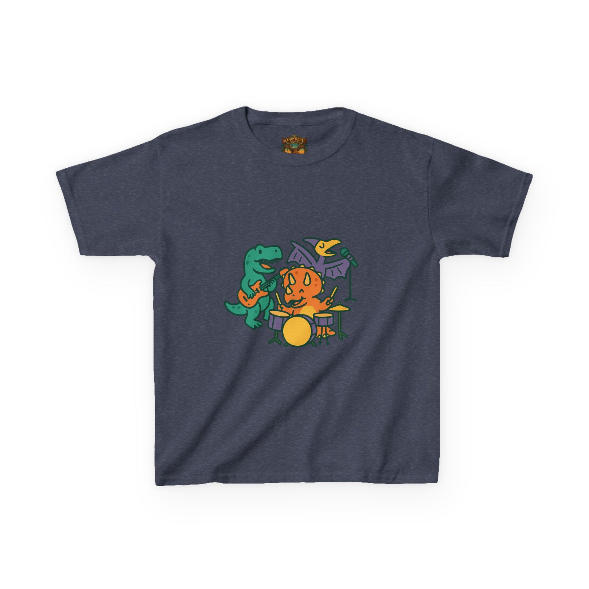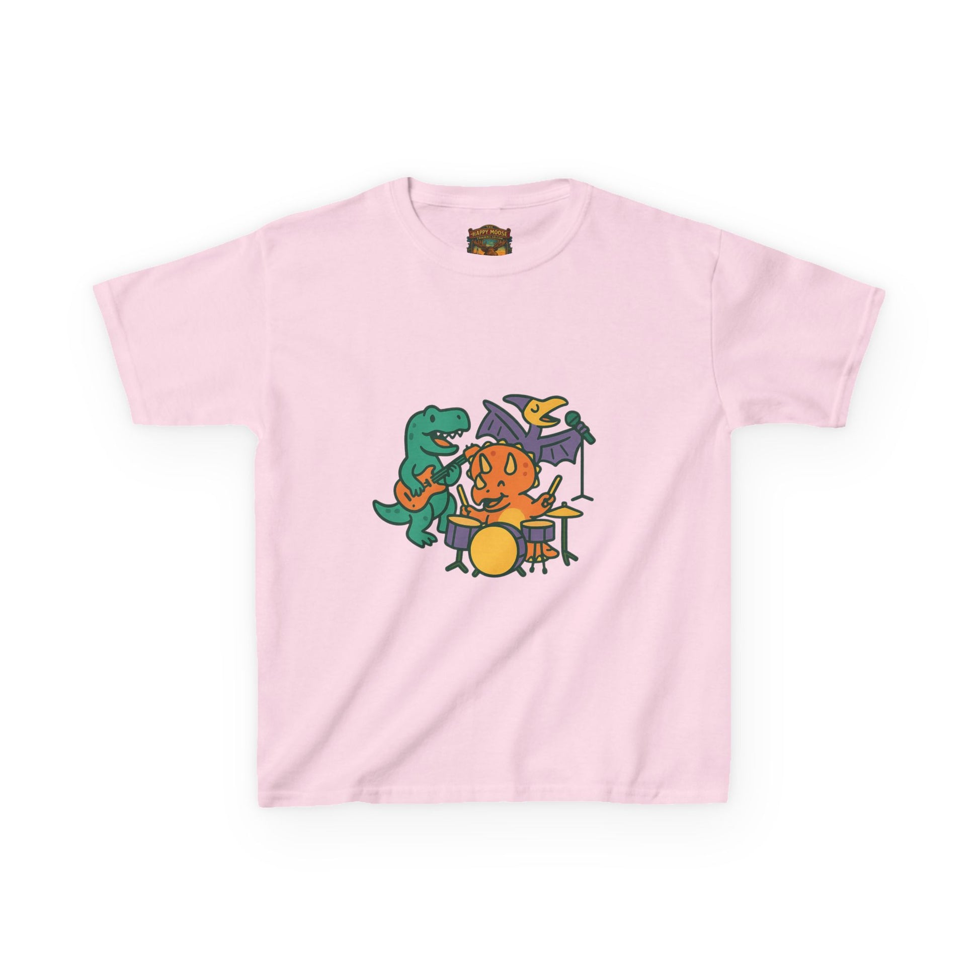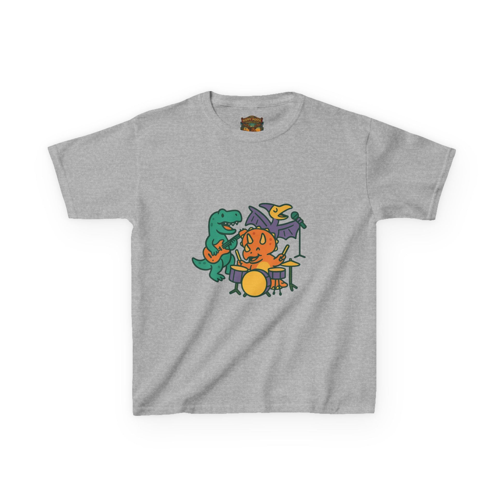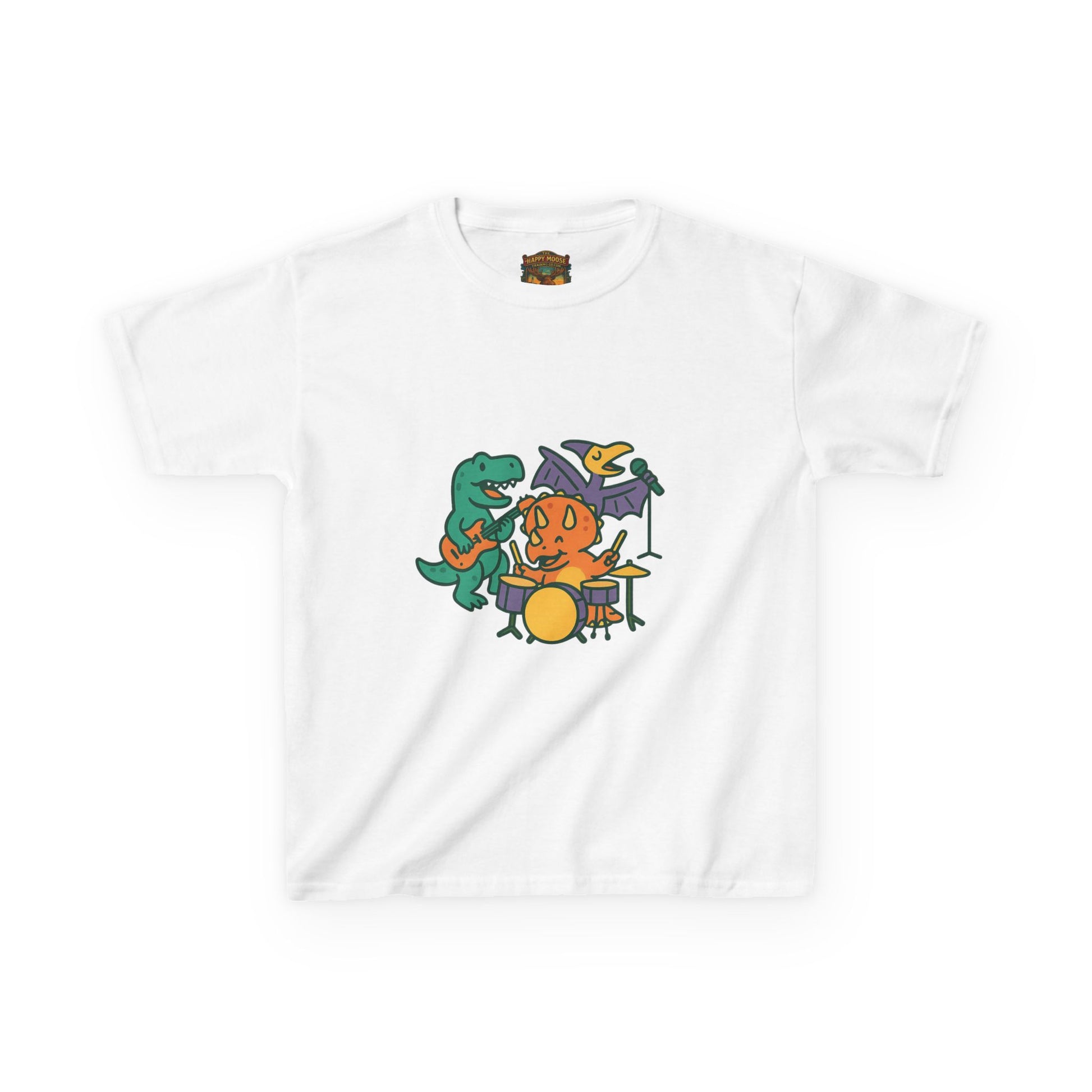 Kids Dino Band T‑Shirt — Cute Cartoon Dinosaur Drummer Tee for Boys & Girls