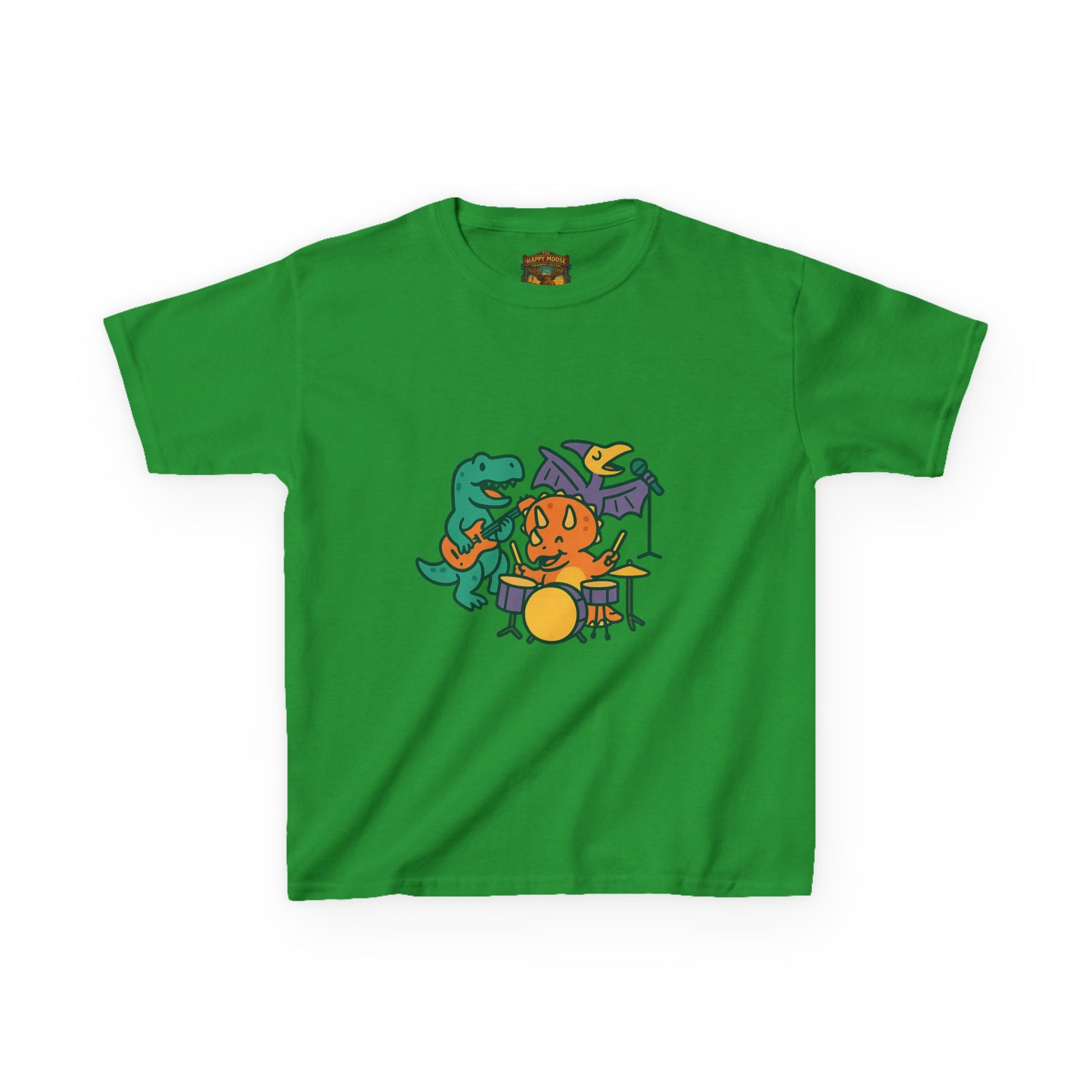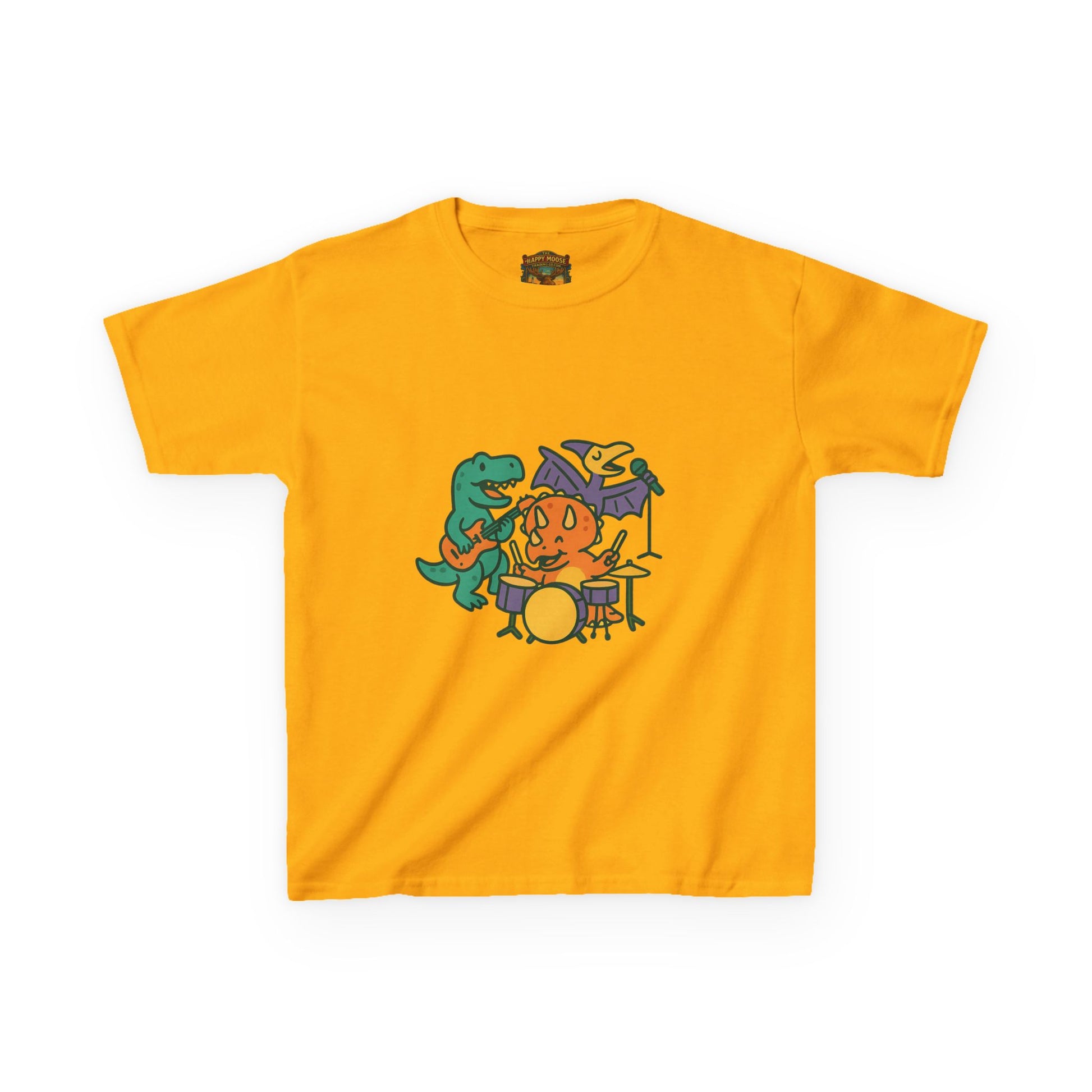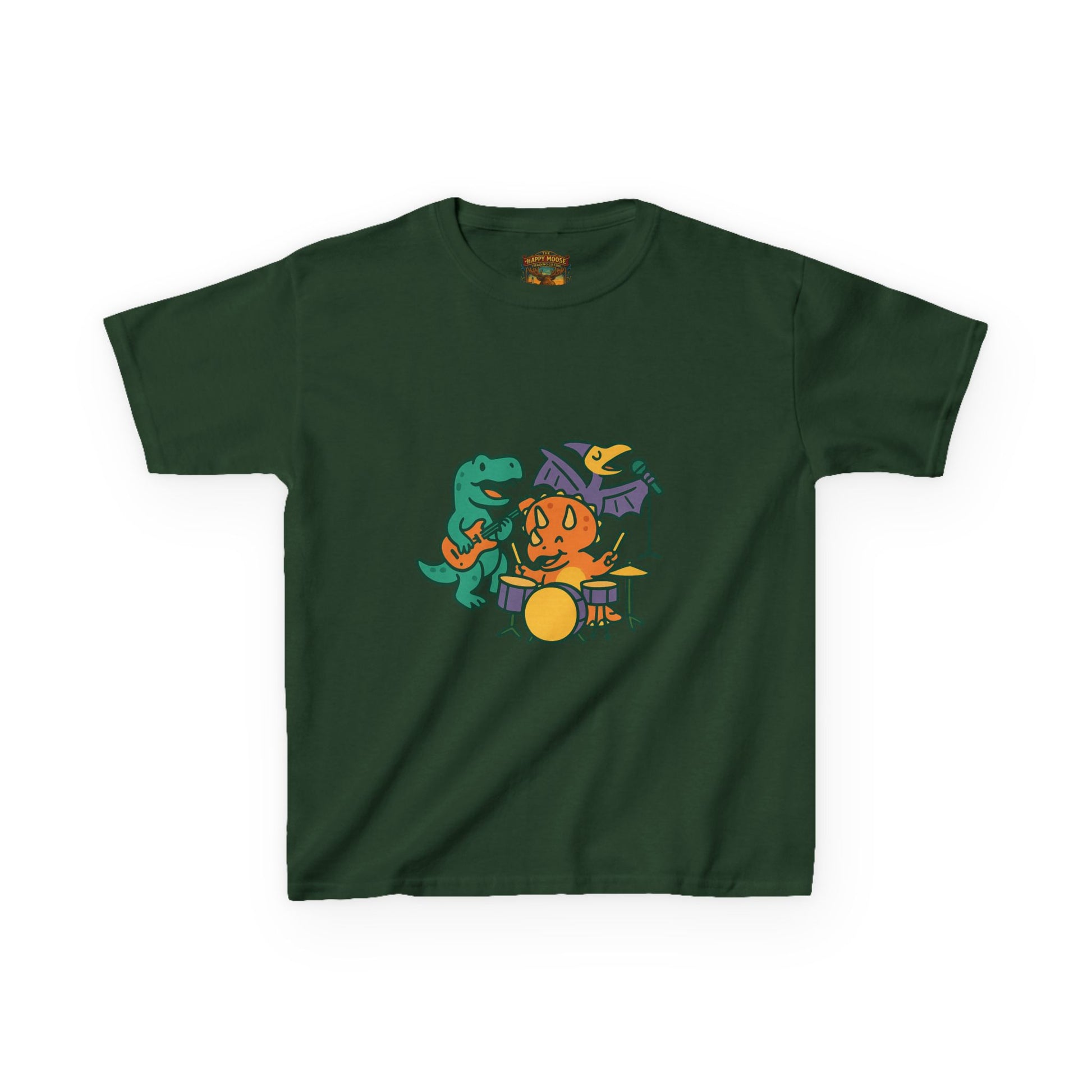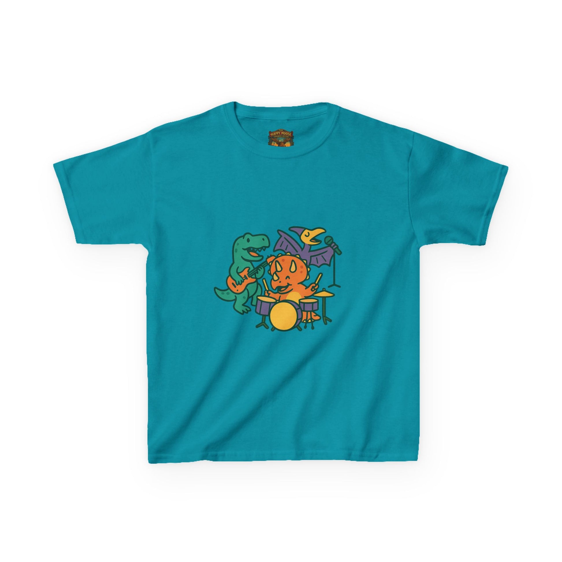 Kids Dino Band T‑Shirt — Cute Cartoon Dinosaur Drummer Tee for Boys & Girls