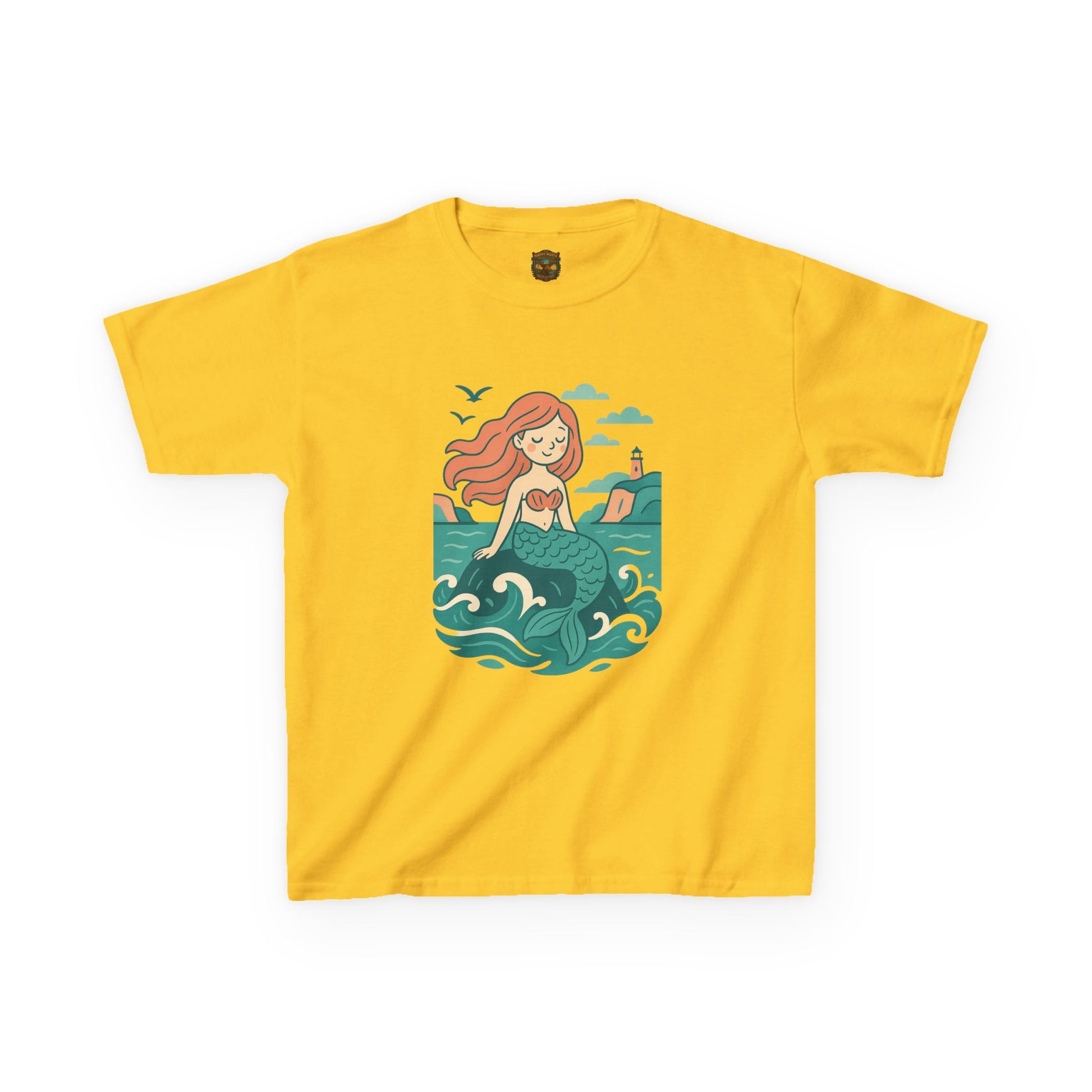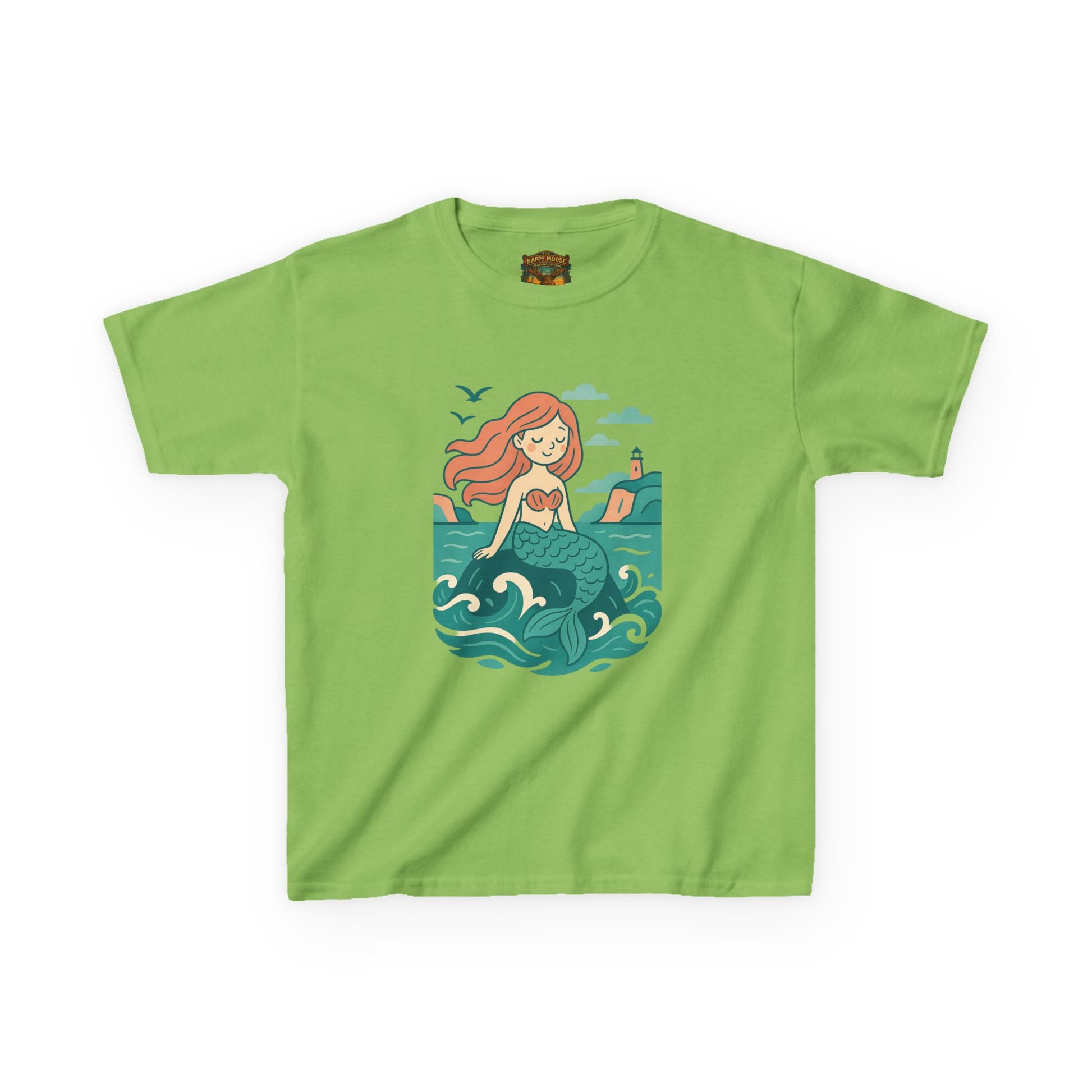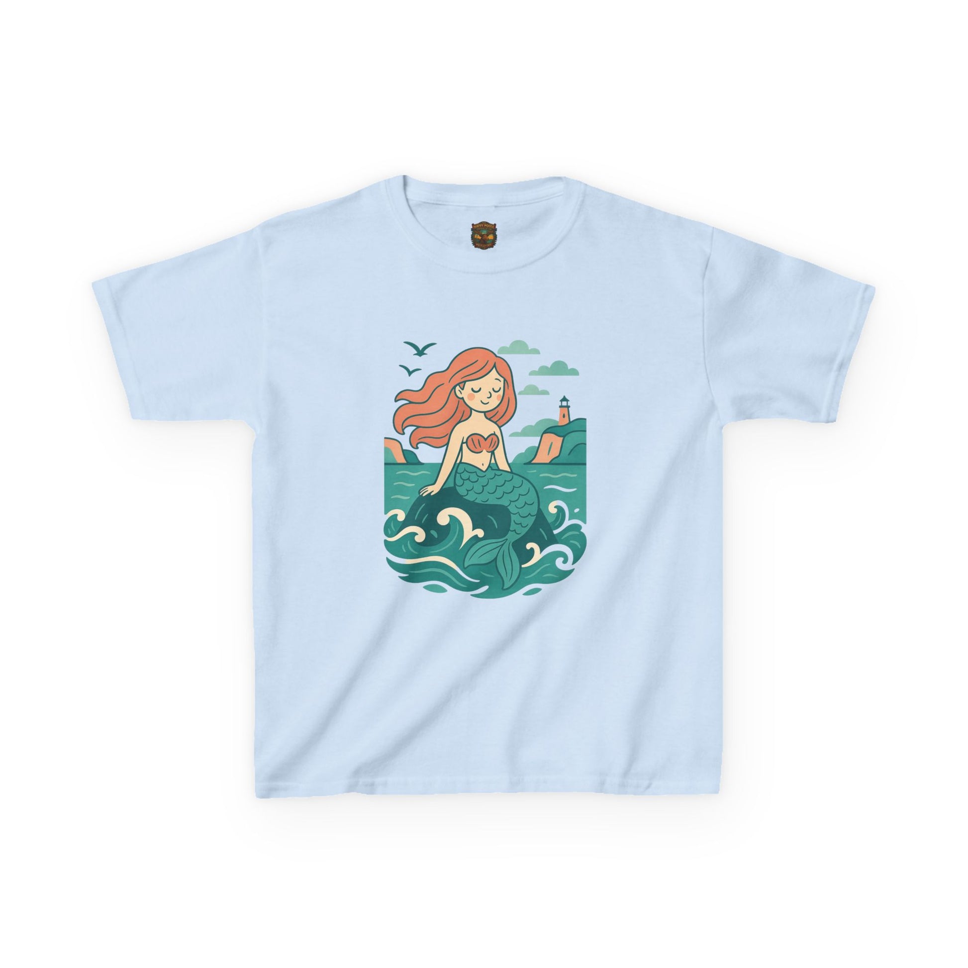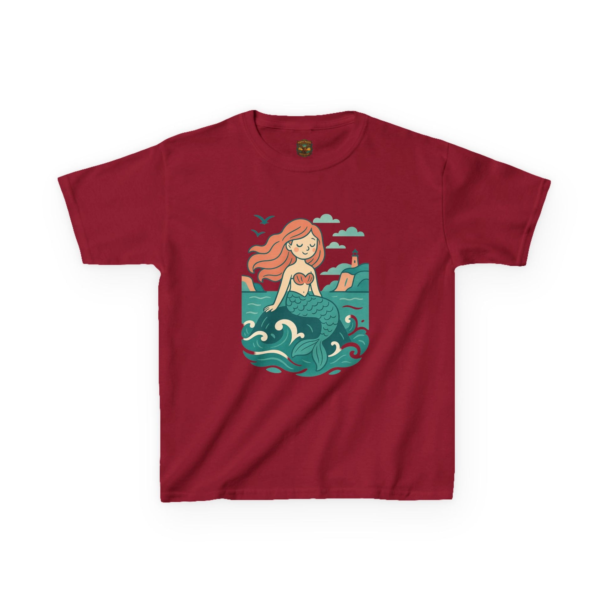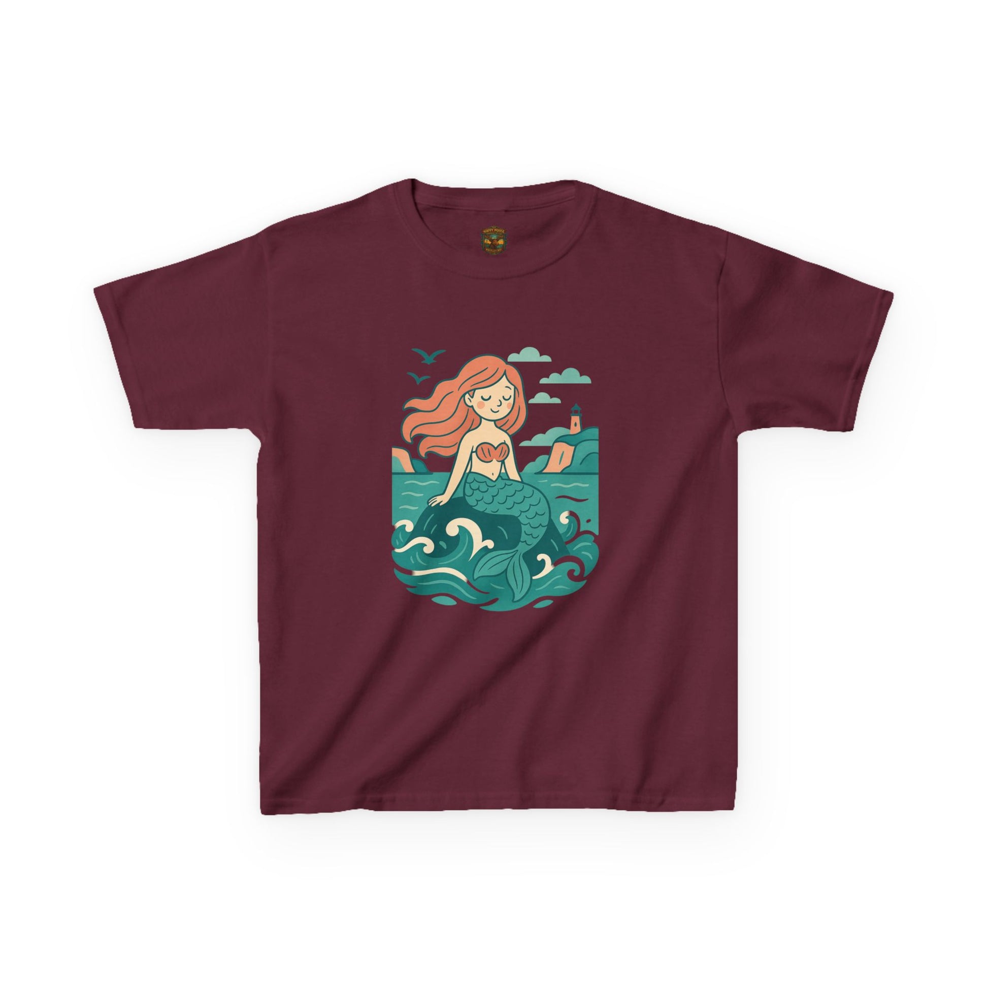 Kids Mermaid Graphic Tee — Cute Redhead Mermaid Ocean Illustration
