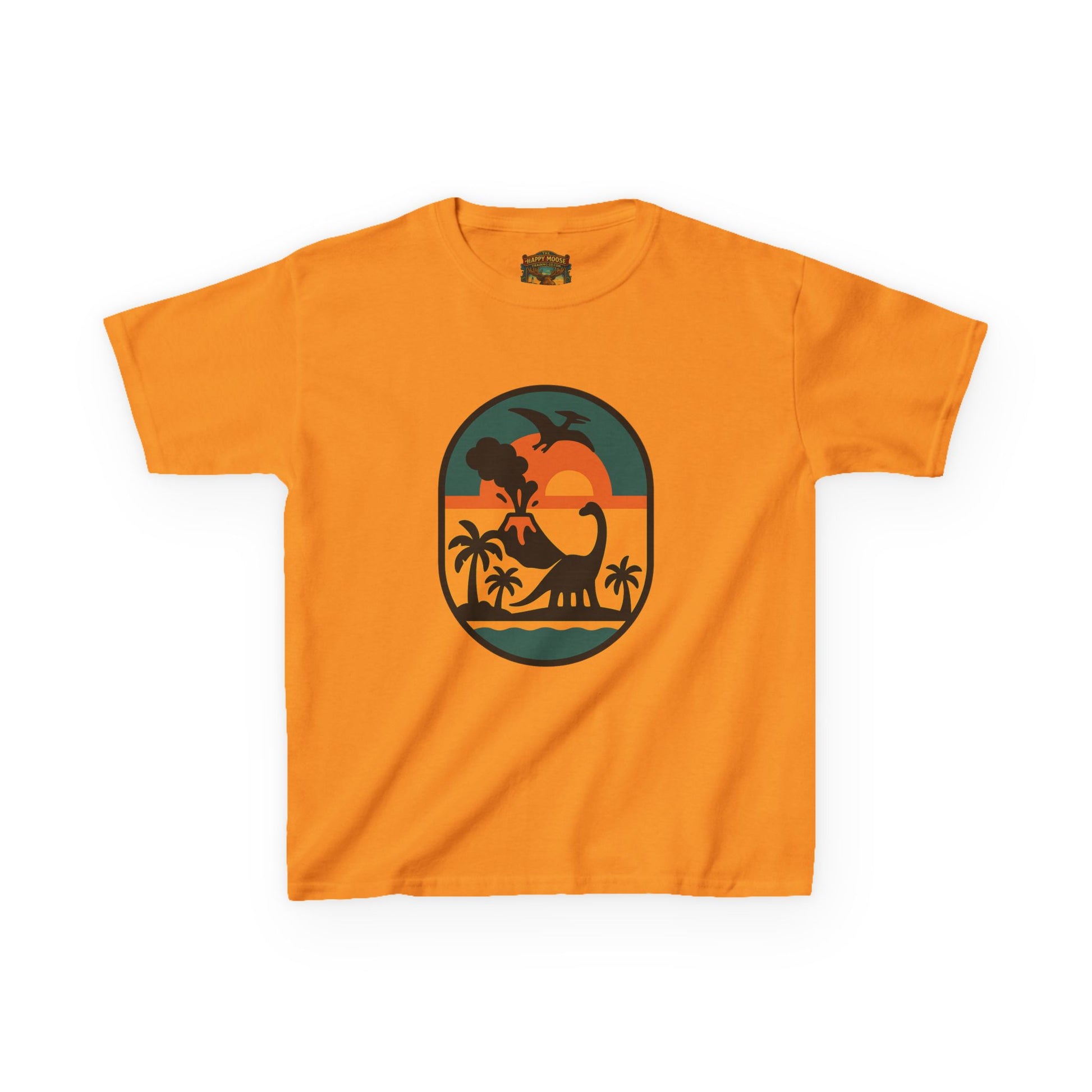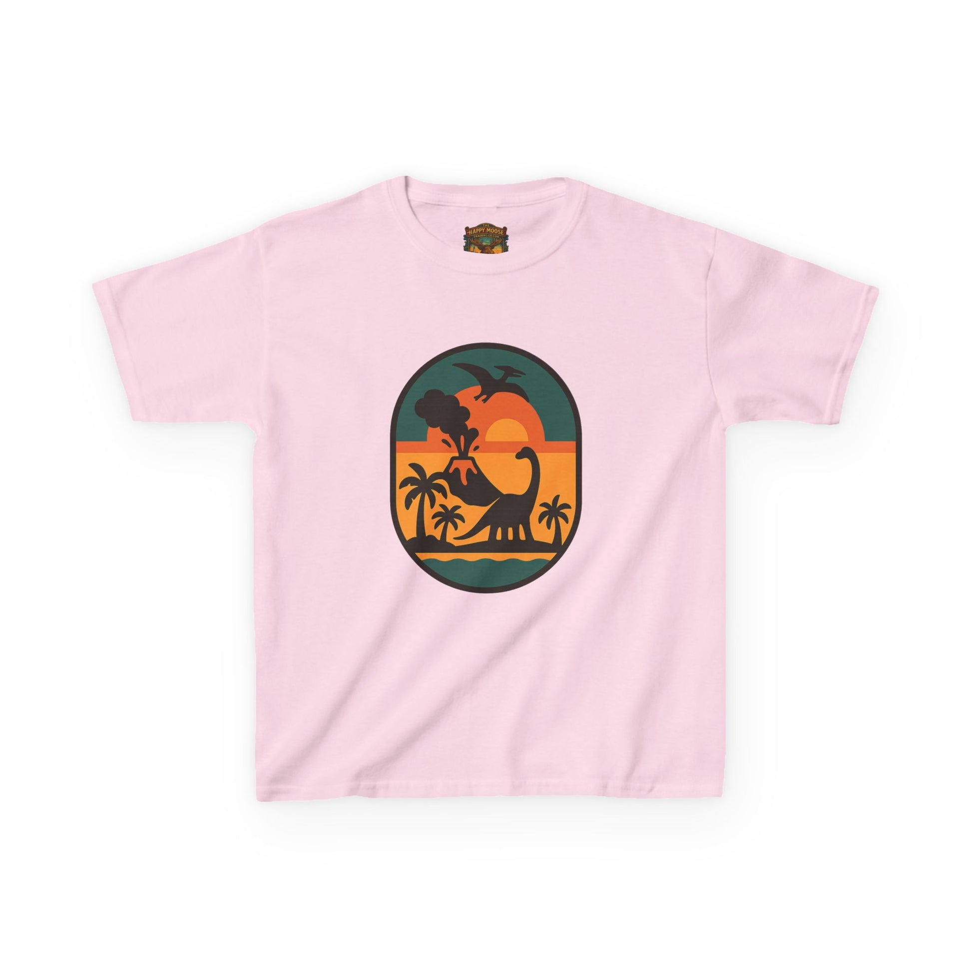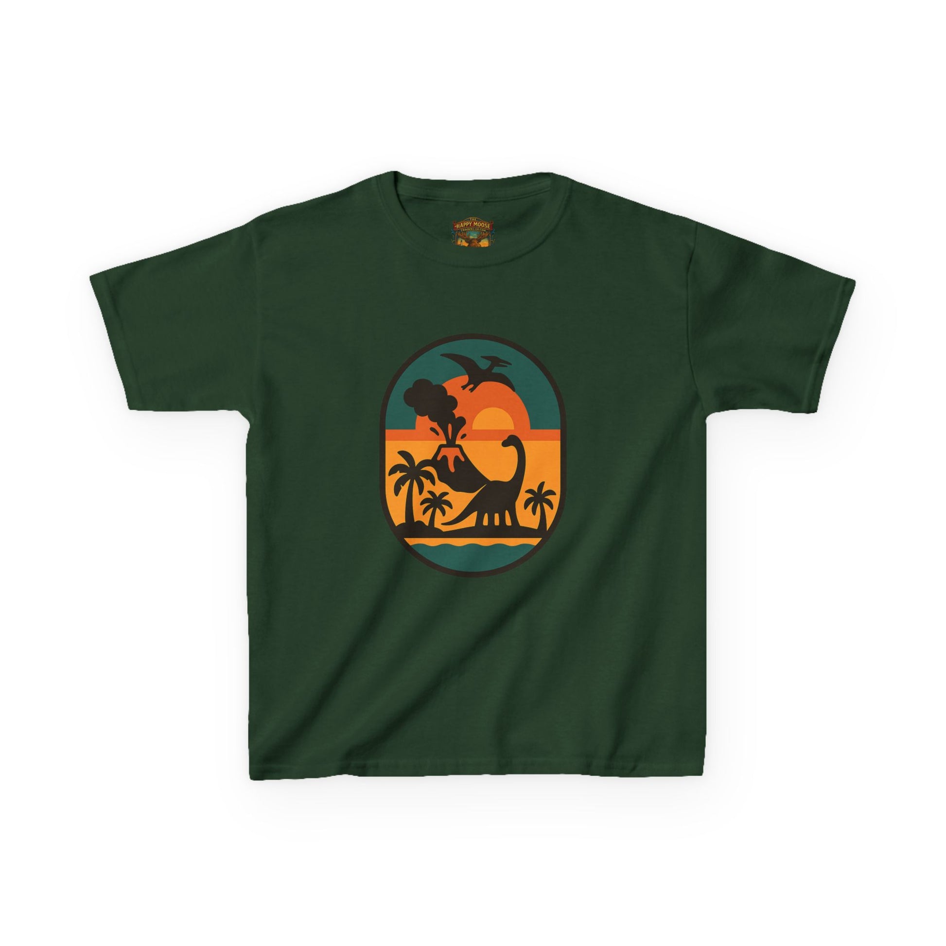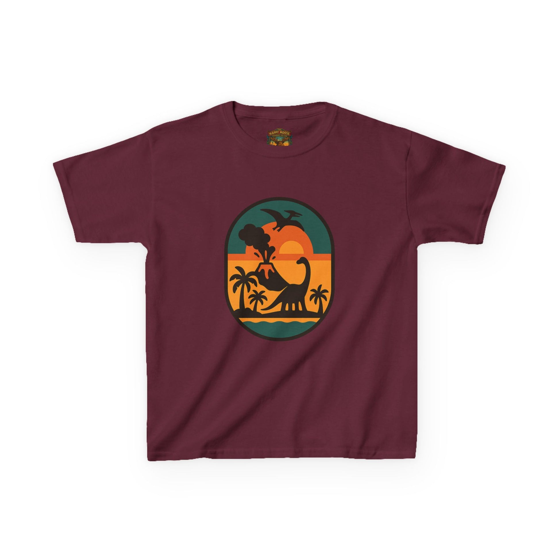 Kids T‑Shirt — Retro Tropical Dinosaur Sunset