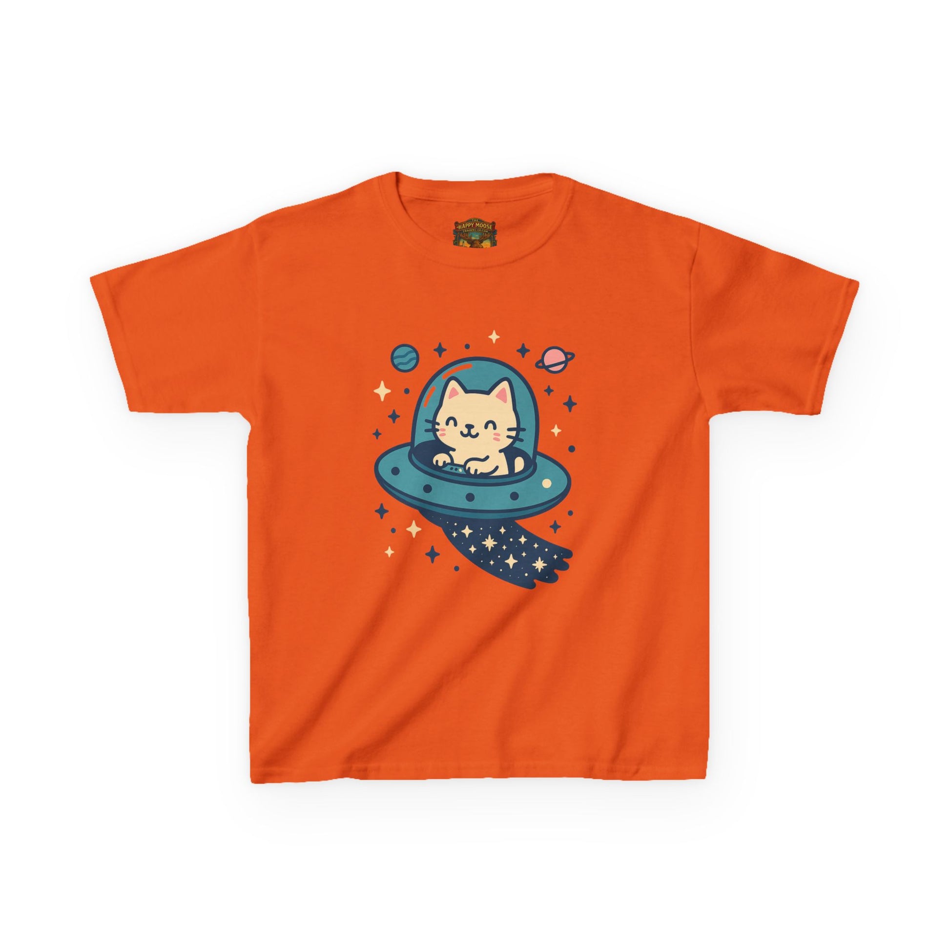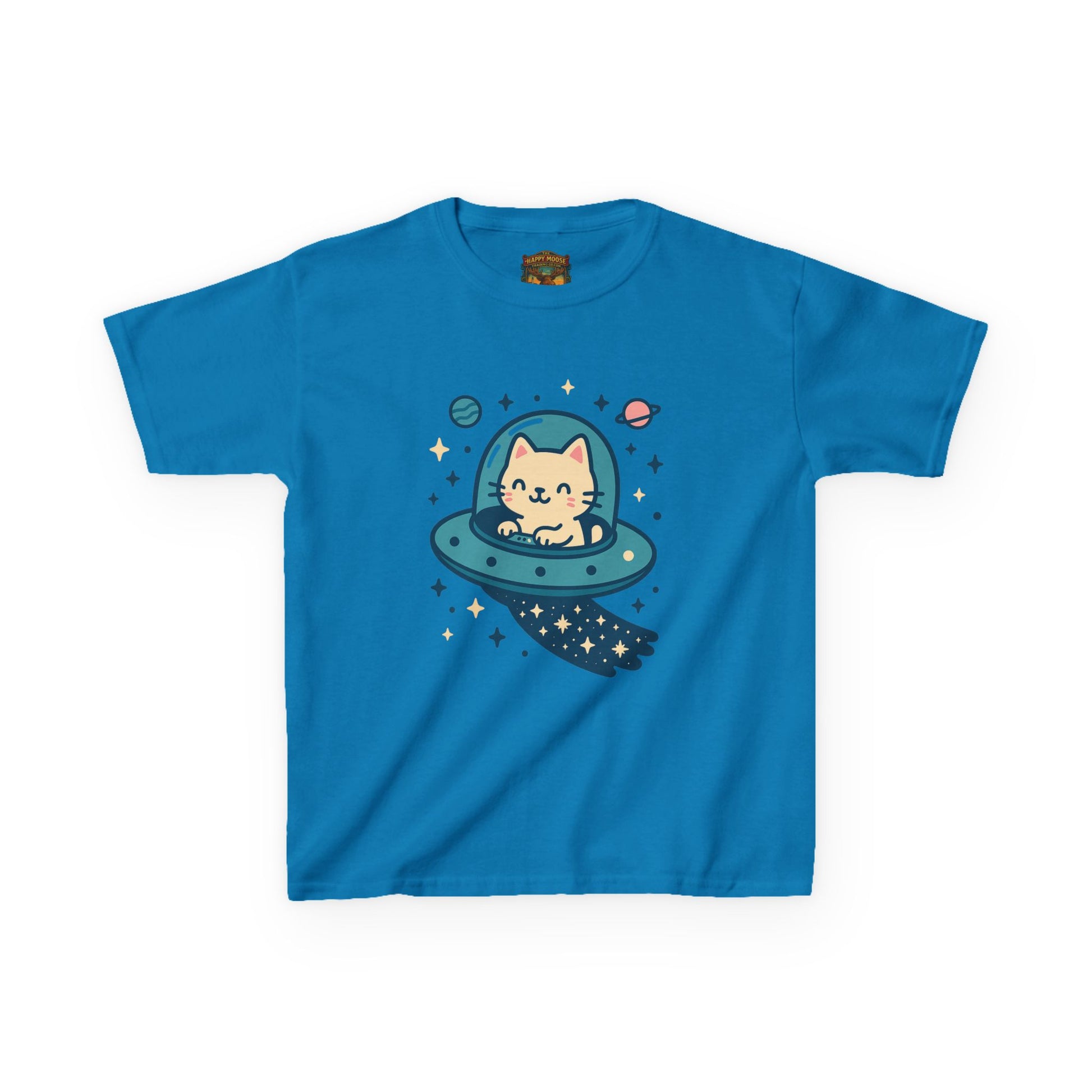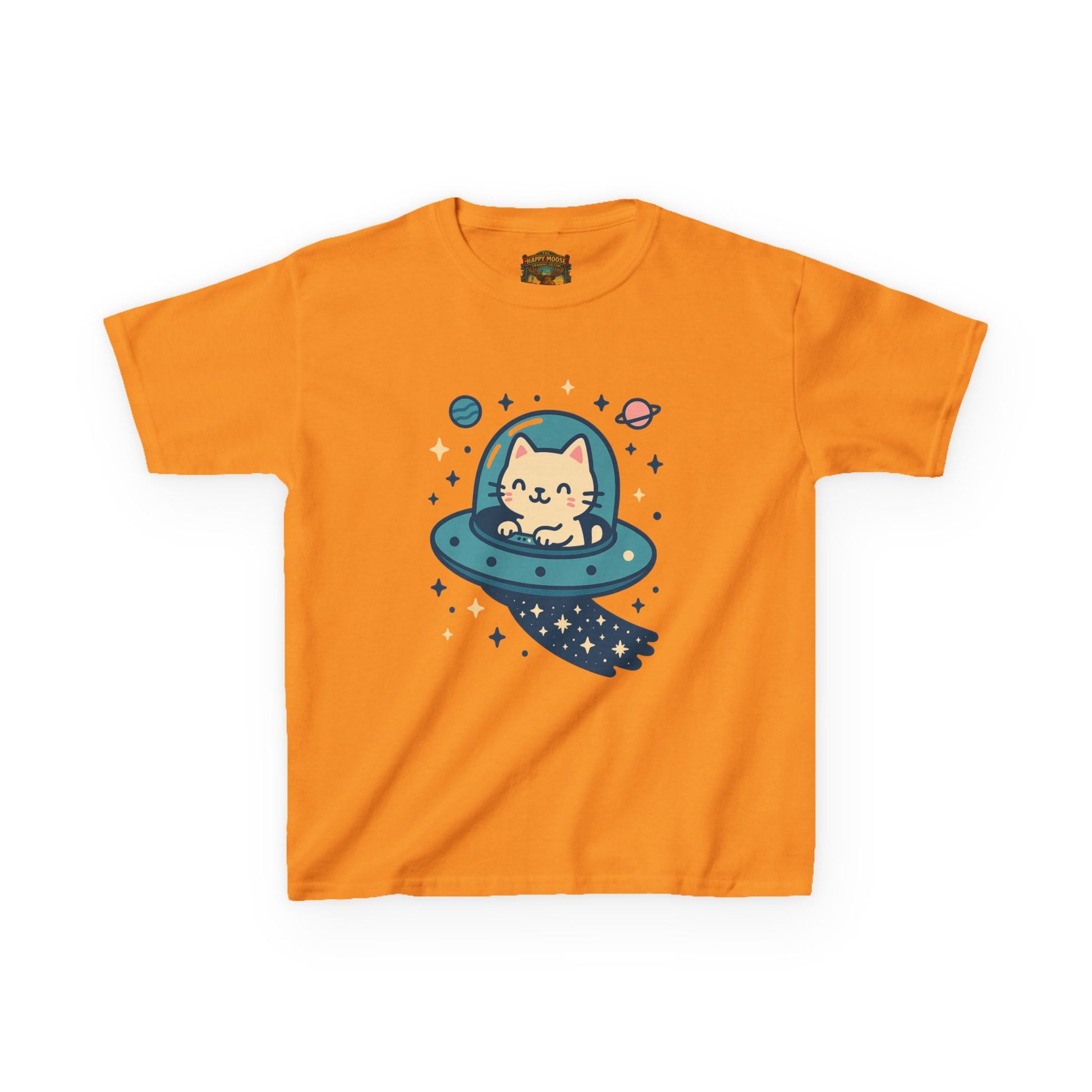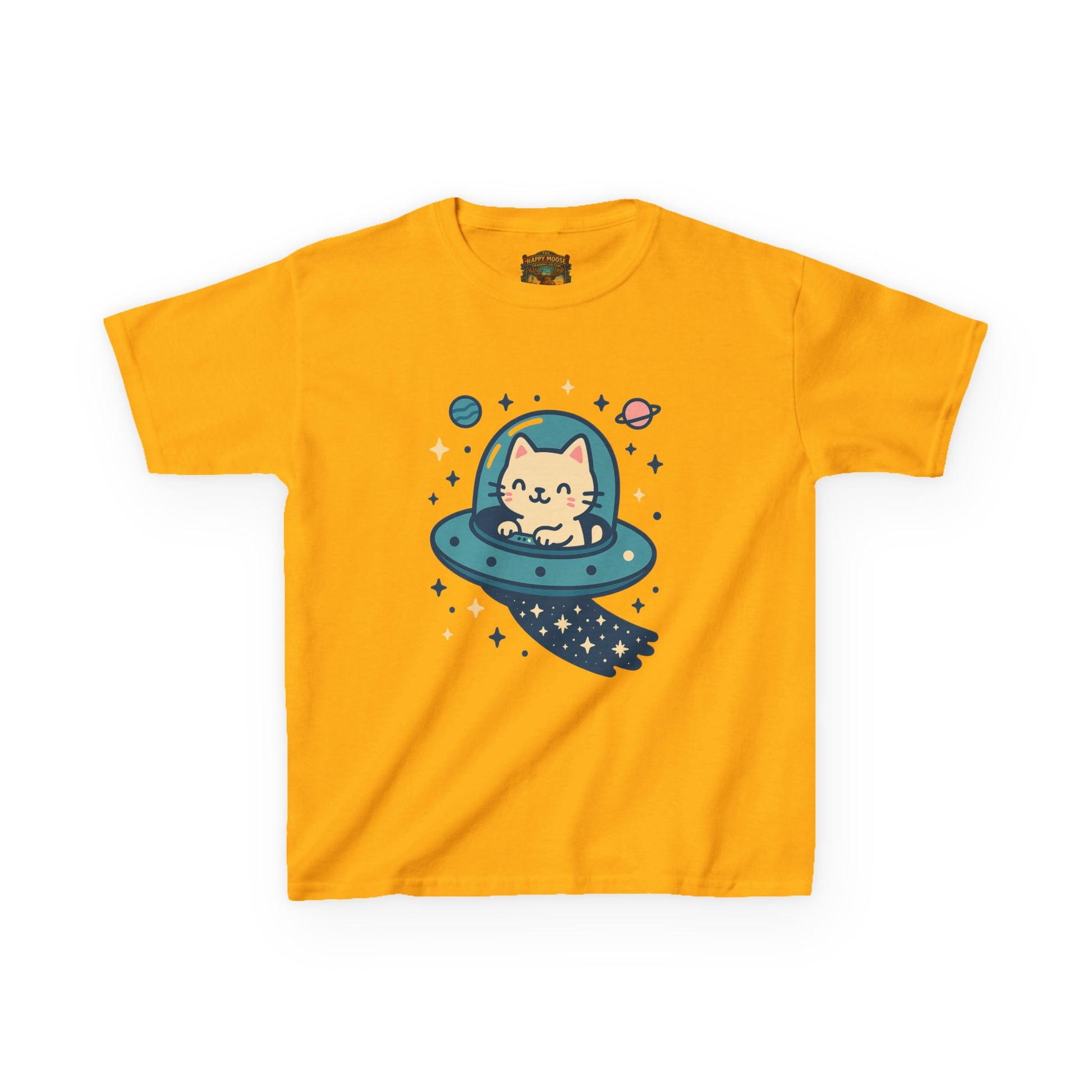 Kids Tee — Cute Cat in UFO Spacecraft Graphic