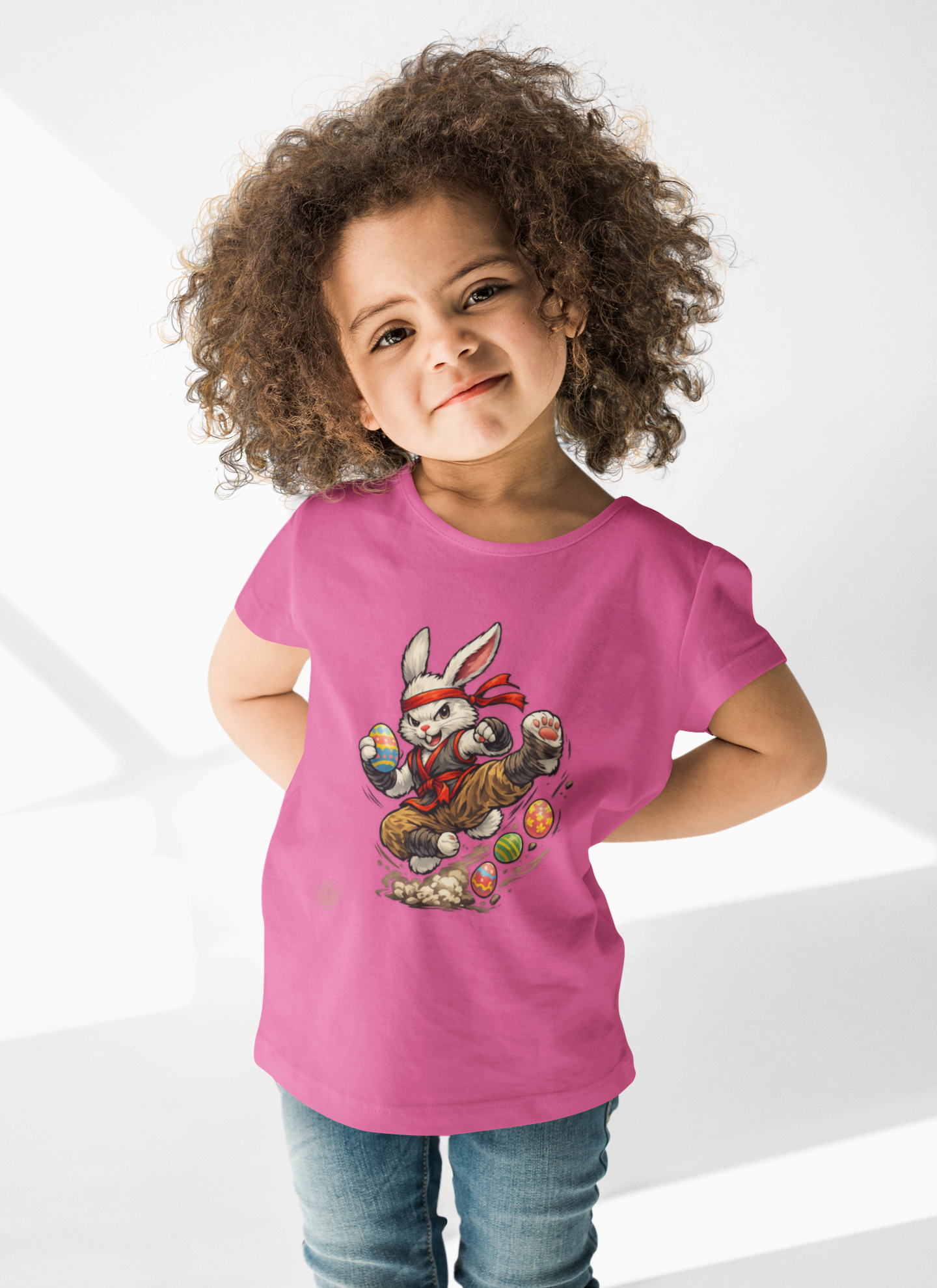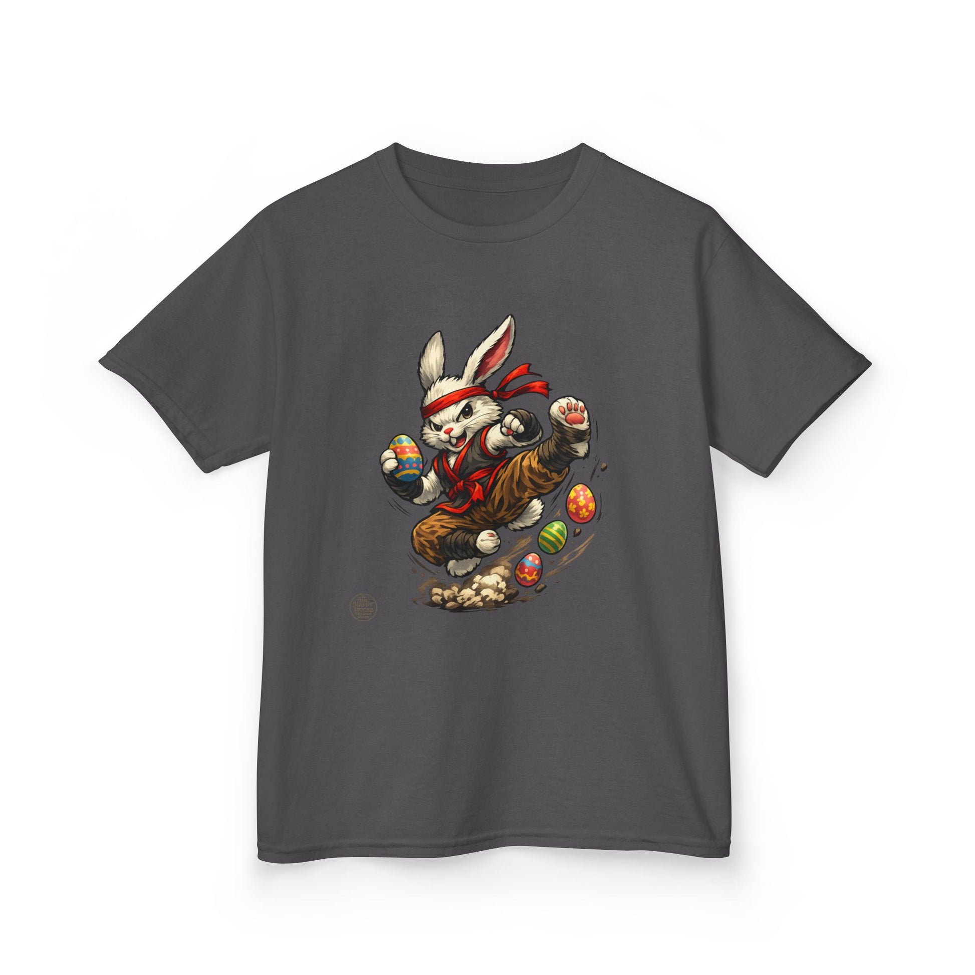 Small feet, big adventures. This soft midweight kids tee features a playful bunny on a mission—leaping through a flurry of colorful eggs with a cheeky scarf and a dusting of motion around its paws. It feels gentle against curious skin and holds its shape through running, climbing, and repeat washings. Let this tee be the one your child reaches for when they want to bring a little mischief to the park, a holiday gathering, or a laid-back family day at home.