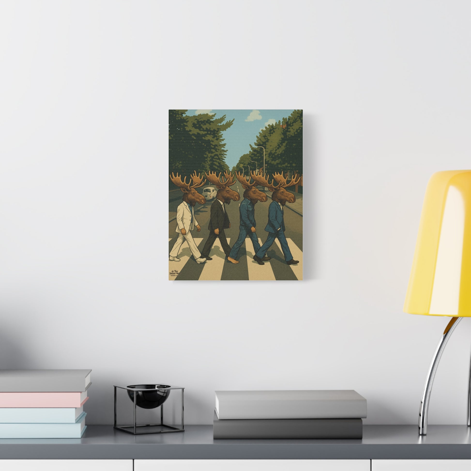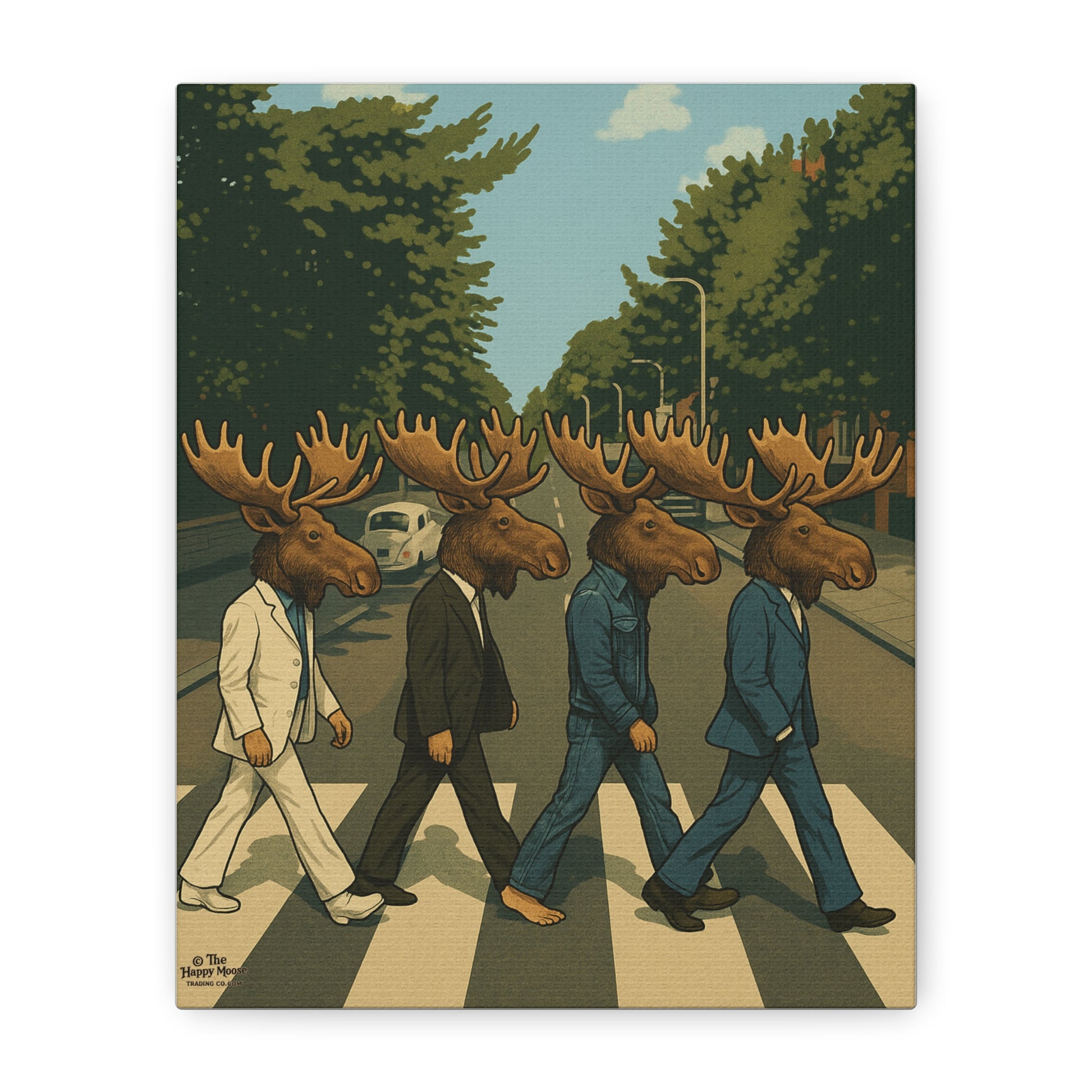 Moose Crossing Canvas Print — Retro Abbey Road Parody Wall Art