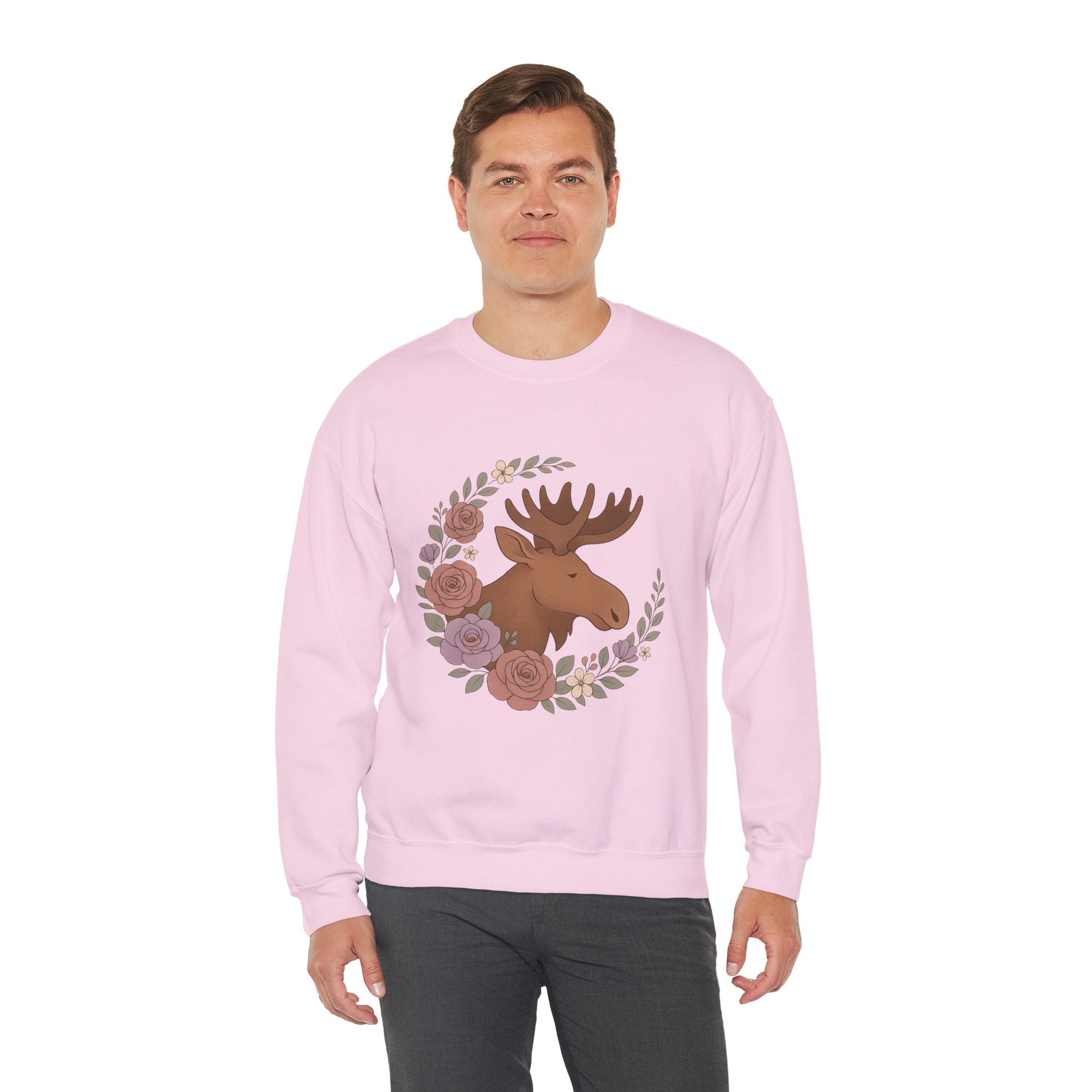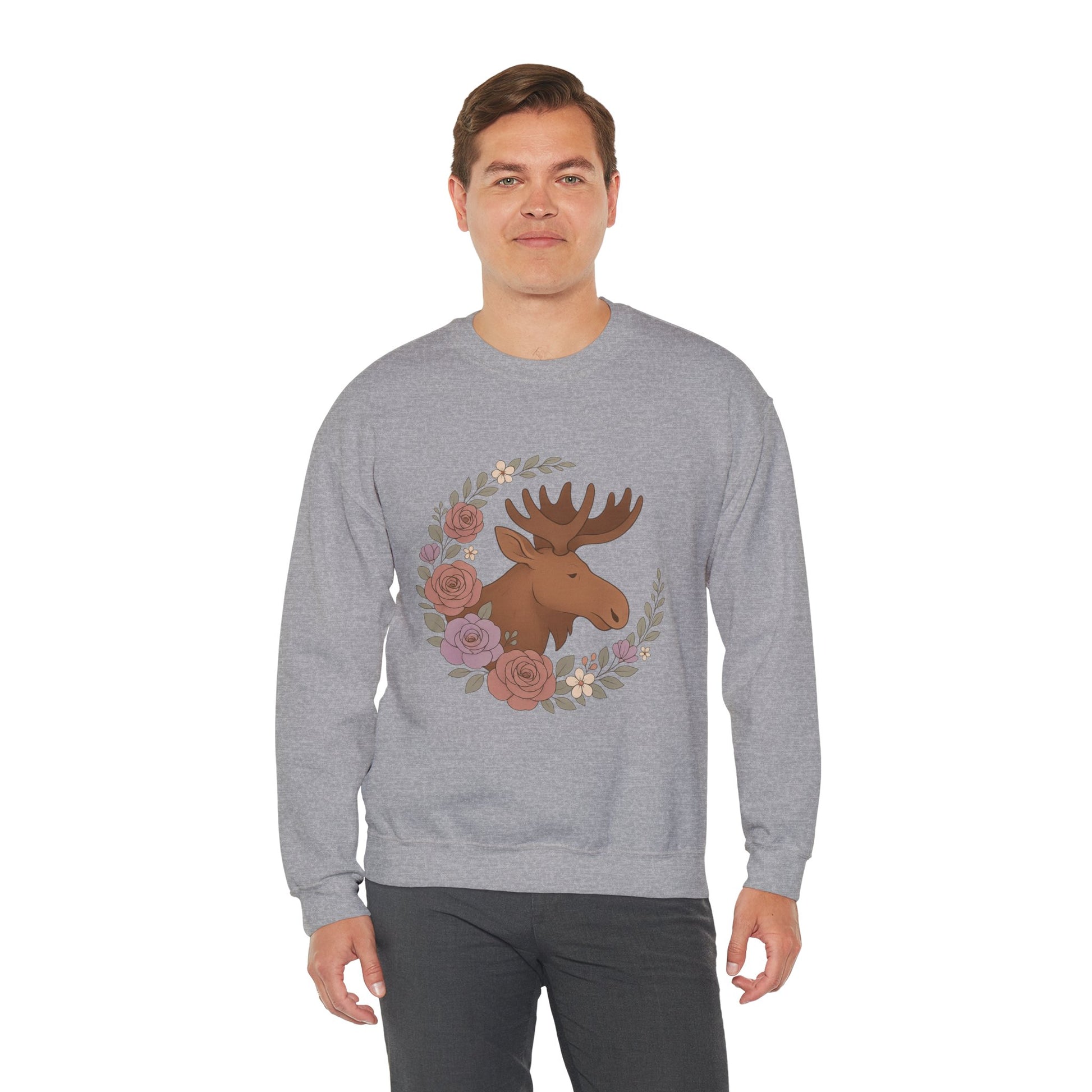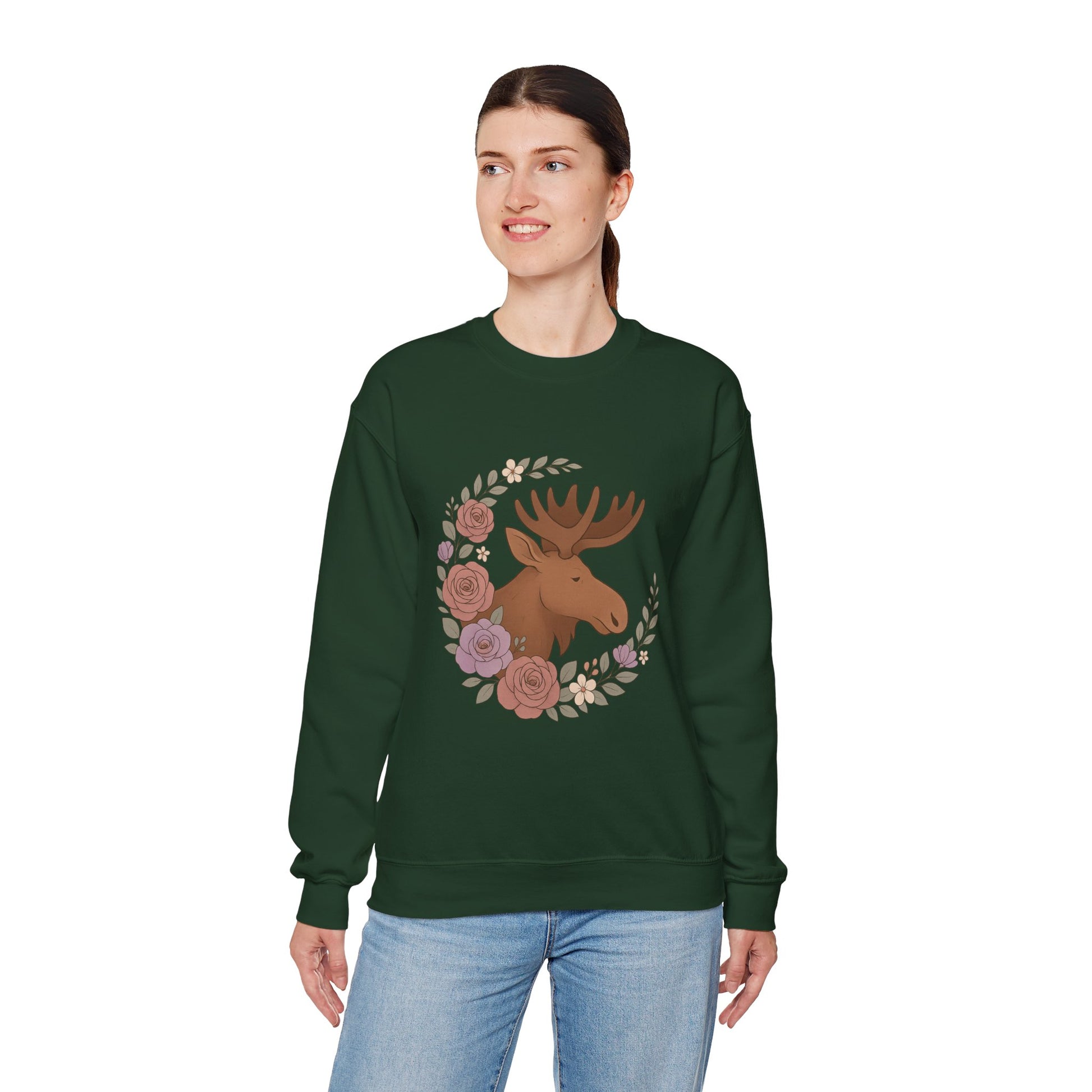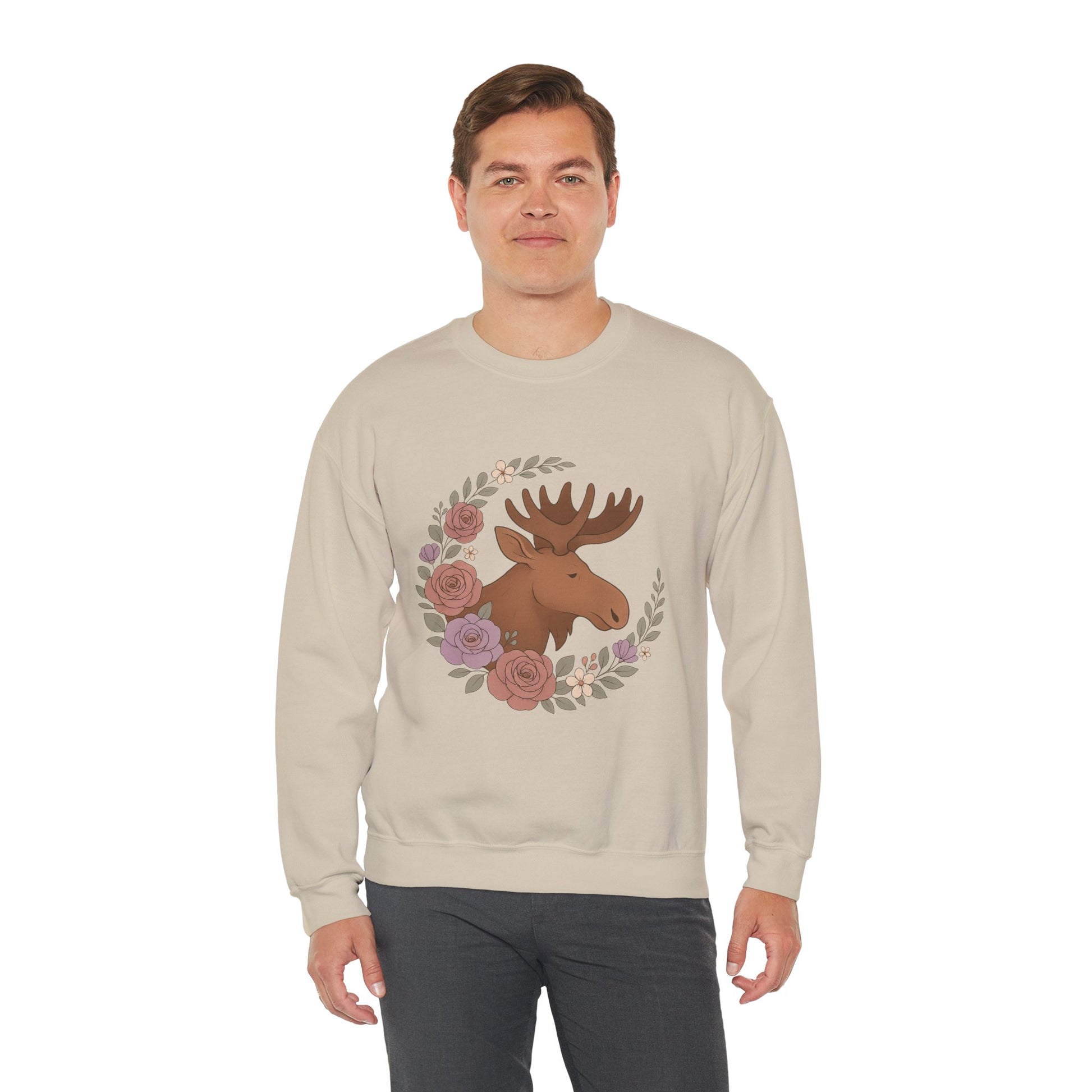 Moose Floral Crewneck Sweatshirt — Rustic Woodland Animal Sweatshirt