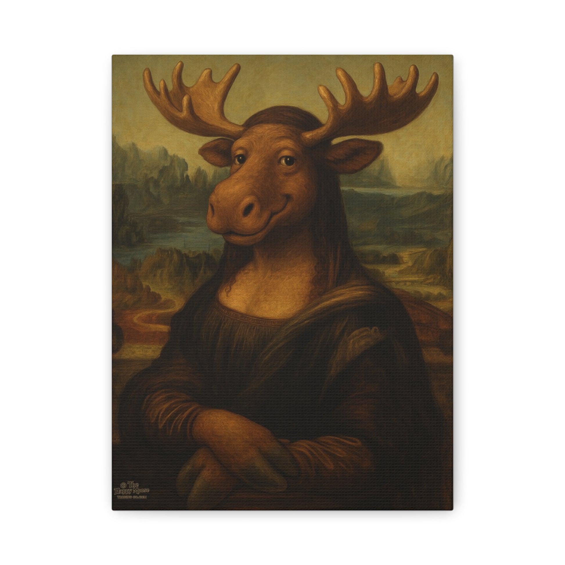 Moose Mona Lisa Canvas Print — Whimsical Animal Portrait Wall Art