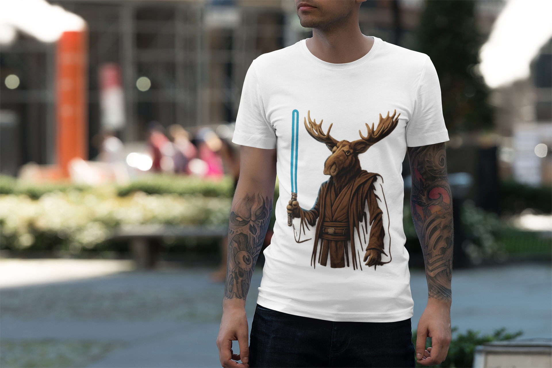 Moose Wars T‑Shirt — Funny Star Wars Inspired Moose with Lightsaber