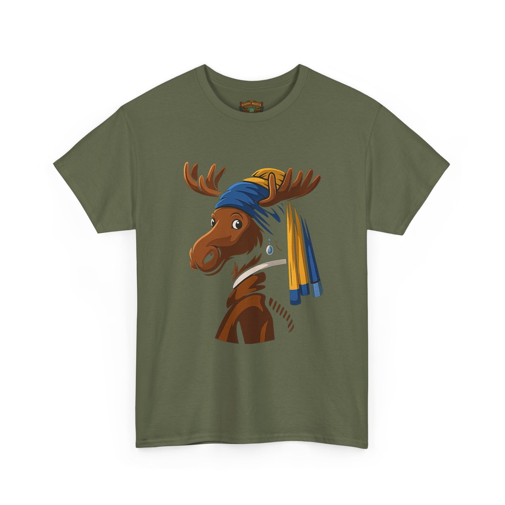 The Moose With The Pearl Earring Graphic Tee — Playful Moose with Headwrap T-Shirt