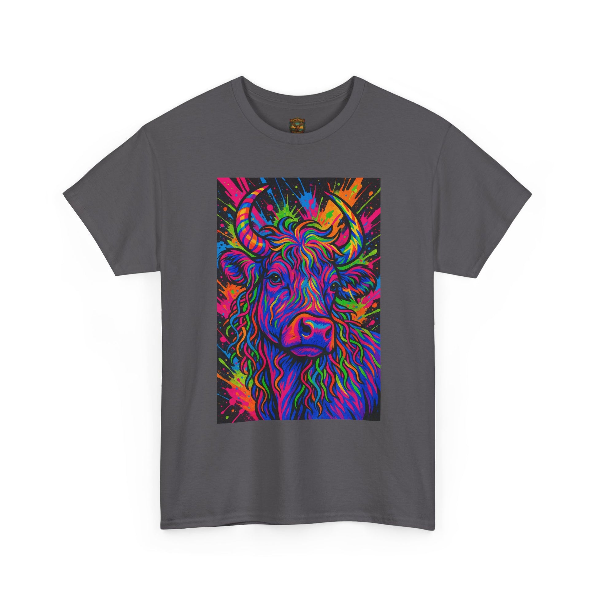 Bright, hypnotic swirls of colour form the face of a highland cow — soft horns curling through kaleidoscopic waves. This tee becomes a wearable small rebellion: bold, playful, and a little wild. Slip it on when you want your outfit to start conversations on the trail, at a weekend market, or over a lazy coffee date. The image feels like a modern folk print turned neon dream; it sits proudly on the chest, drawing eyes without shouting. For anyone who collects quirky, art-forward pieces or loves a countryside animal vibe with a trippy twist, this shirt brings warmth, personality, and a touch of humor to everyday wear. Product features - Reinforced shoulder tape prevents stretching and keeps shape intact. - Tubular knit (no side seams) for a clean look and reduced fabric waste. - Ribbed, seamless collar maintains elasticity and resists sagging. - High-quality printing: DTF on sleeves/labels and DTG on main design for crisp, detailed artwork. - Comfortable medium-weight 100% cotton (5.3 oz/yd²) with tear-away label for itch-free wear. Care instructions - Non-chlorine: bleach as needed - Do not iron - Do not dryclean - Machine wash: cold (max 30C or 90F) - Tumble dry: low heat .