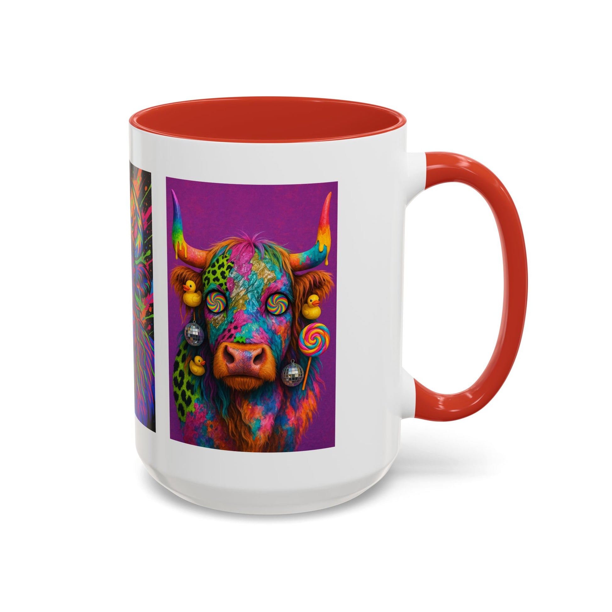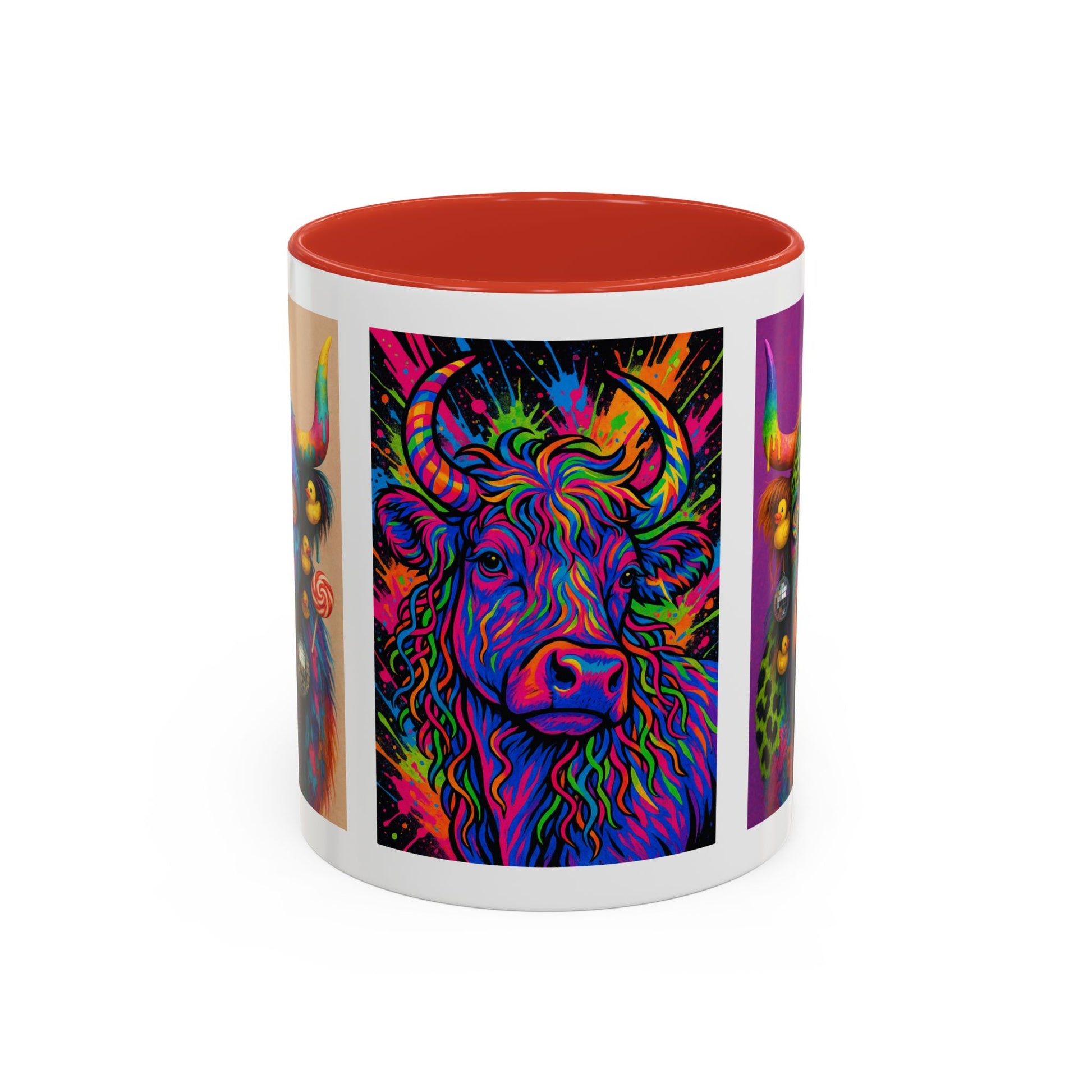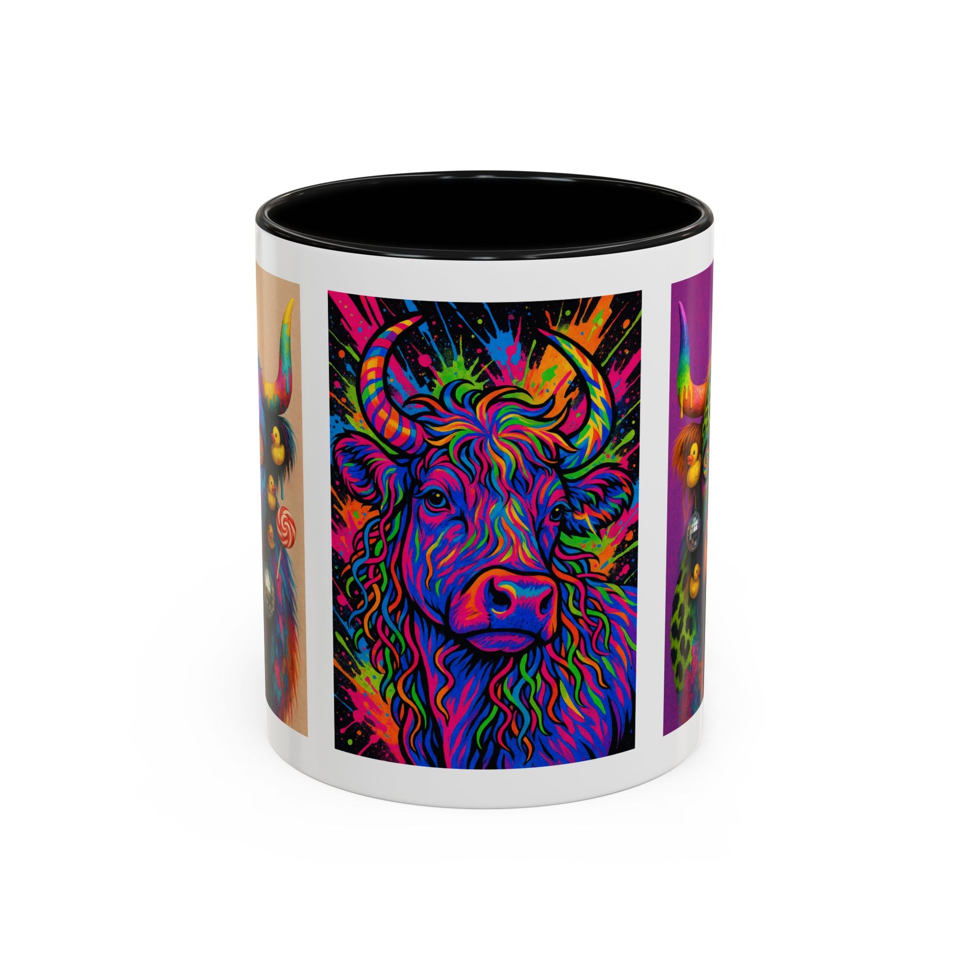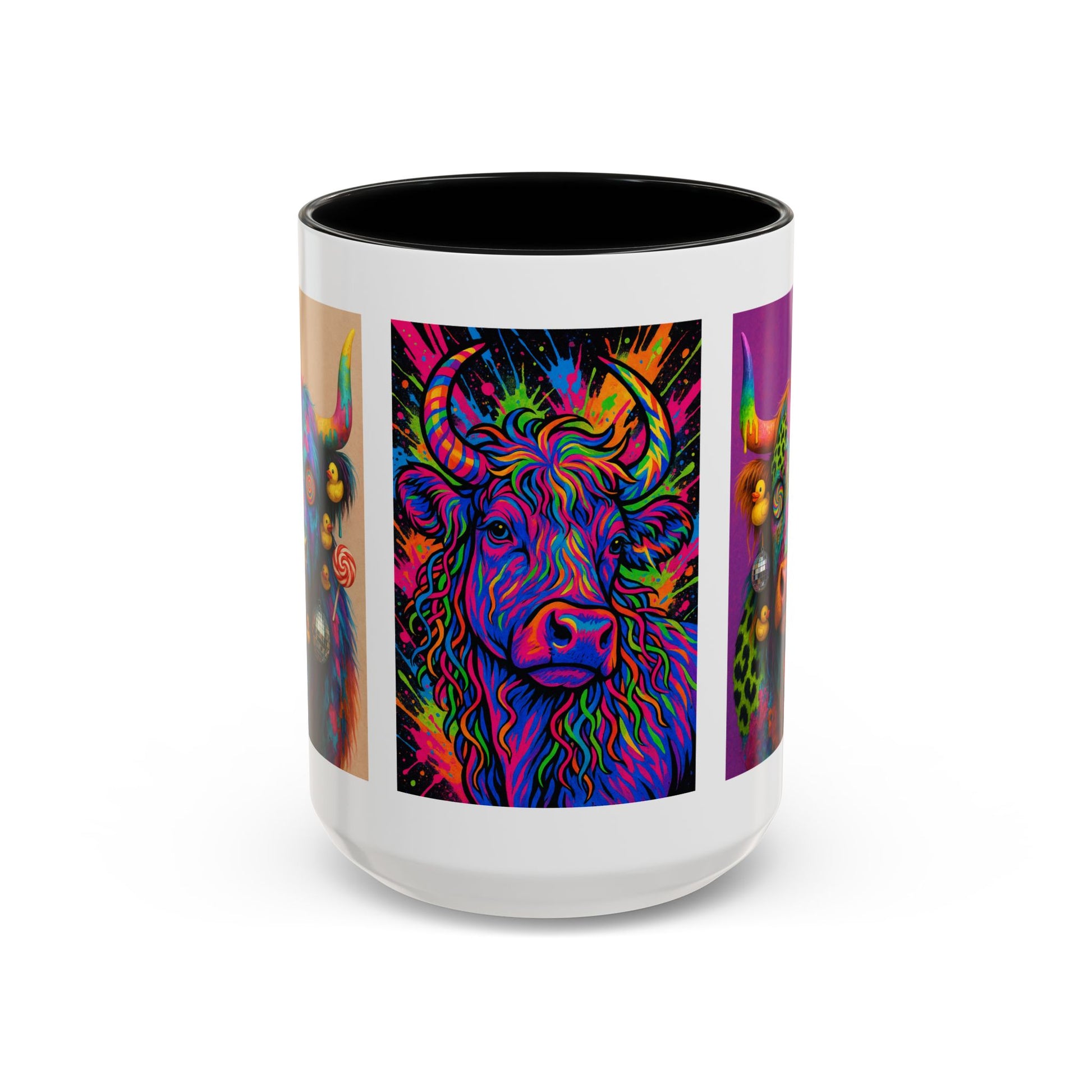 Psychedelic Highland Cow Accent Coffee Mug — Colorful Neon Farm Animal Art (11/15 oz)