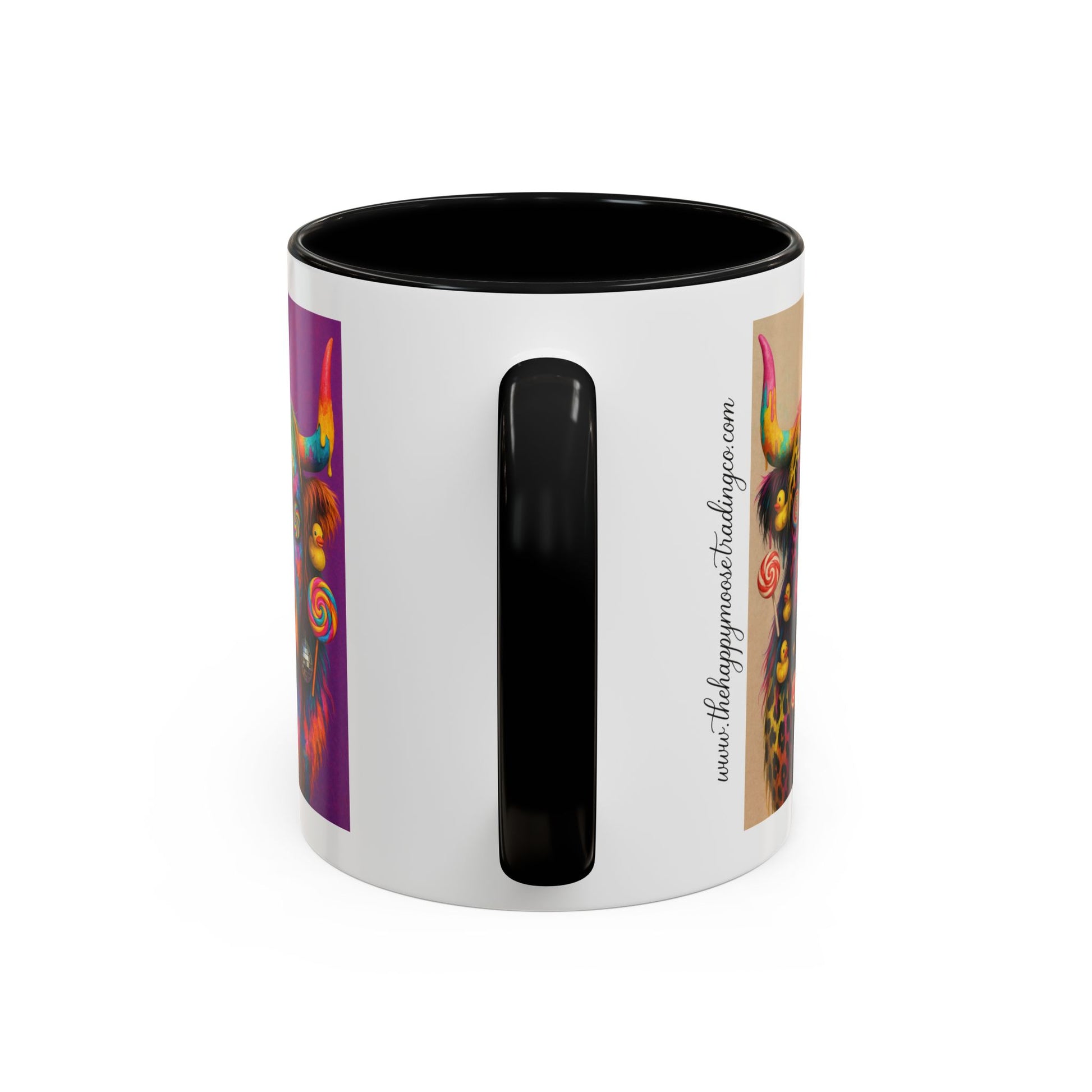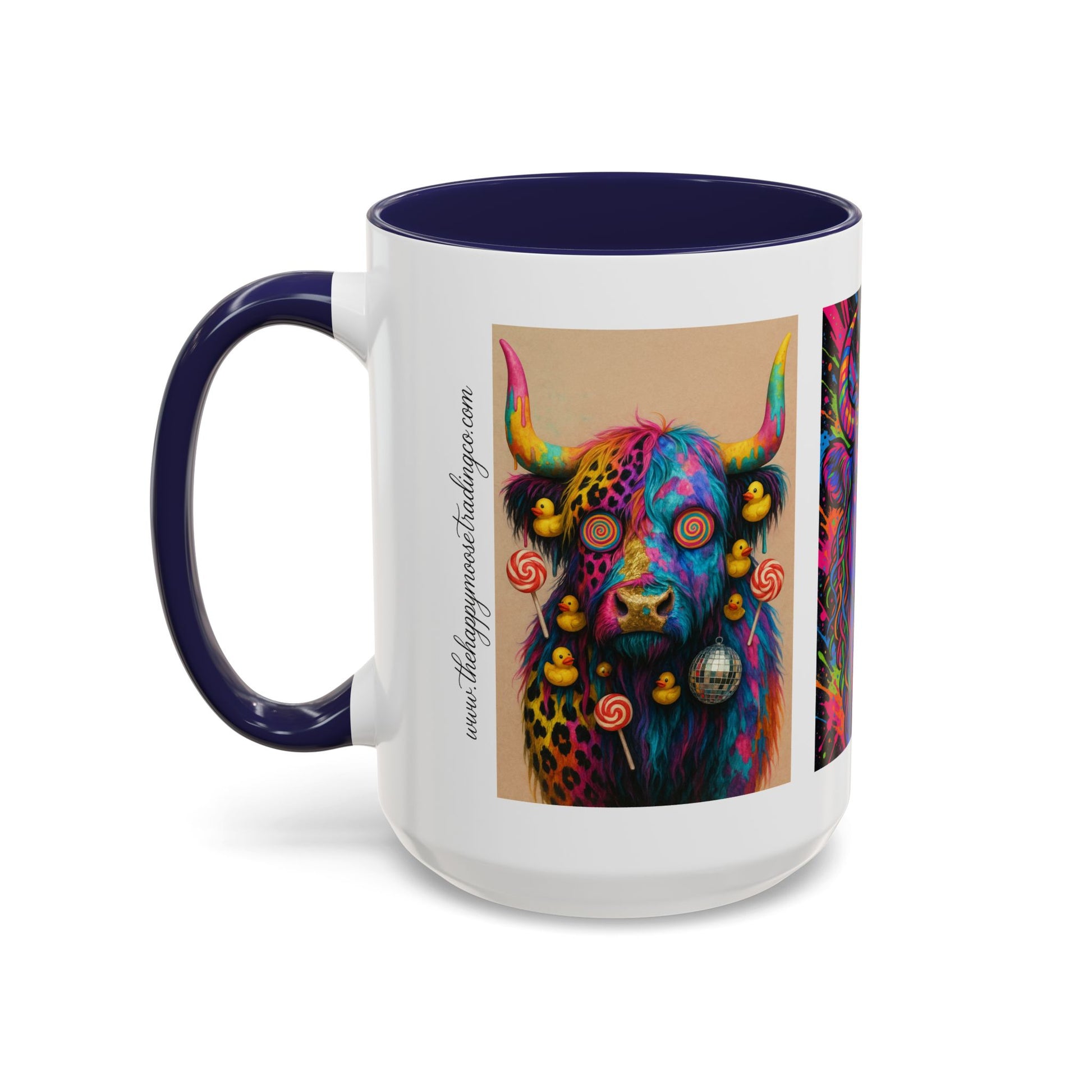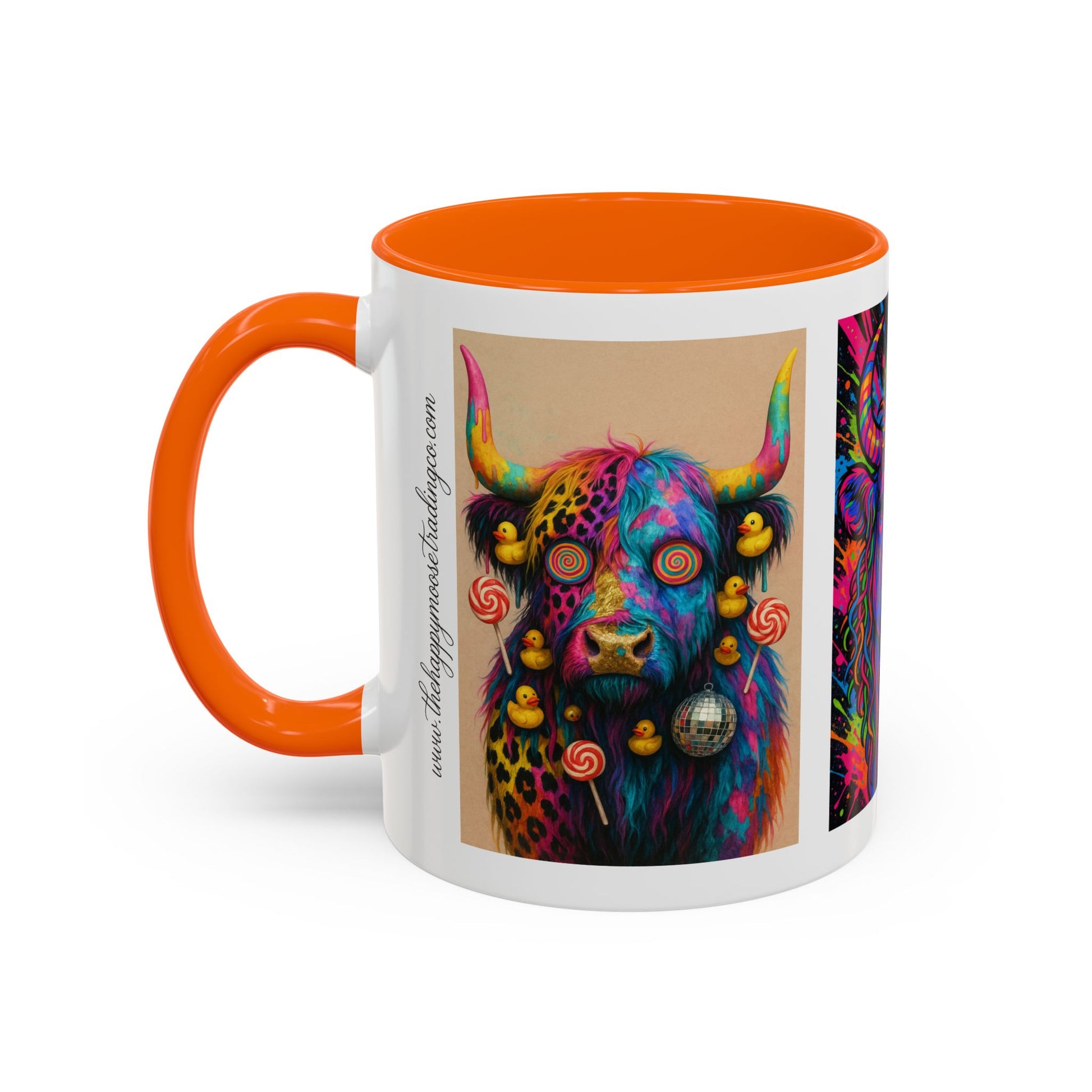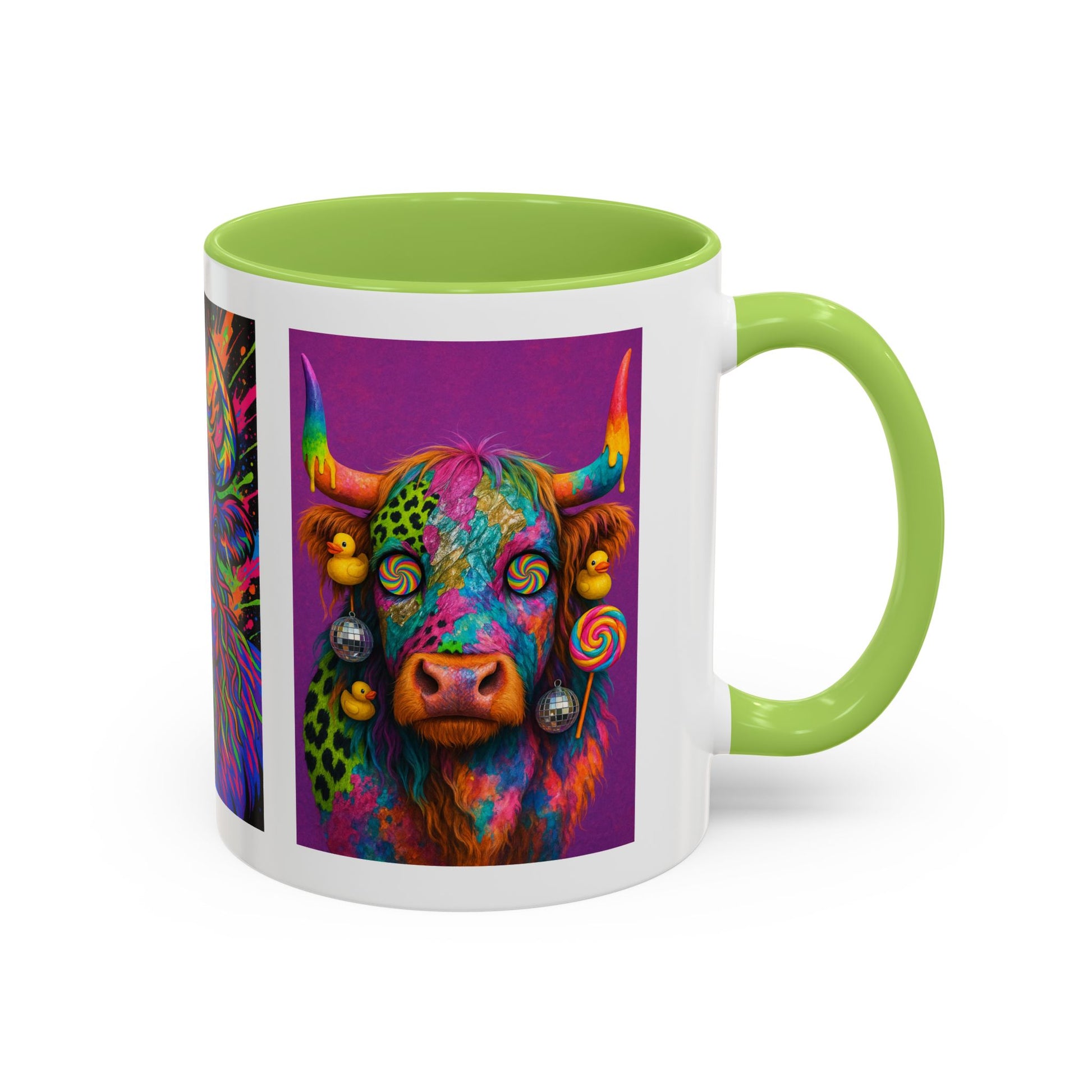 Psychedelic Highland Cow Accent Coffee Mug — Colorful Neon Farm Animal Art (11/15 oz)