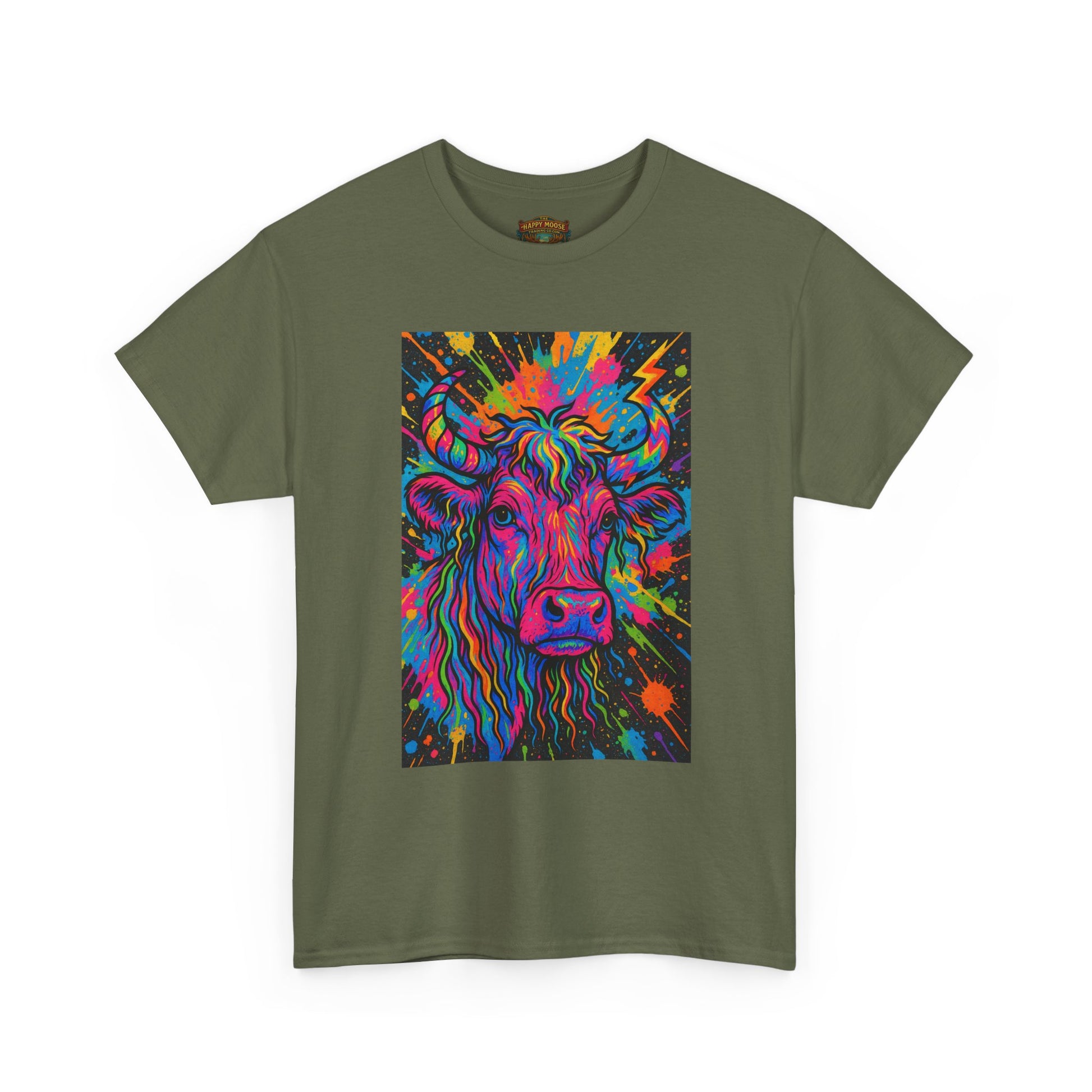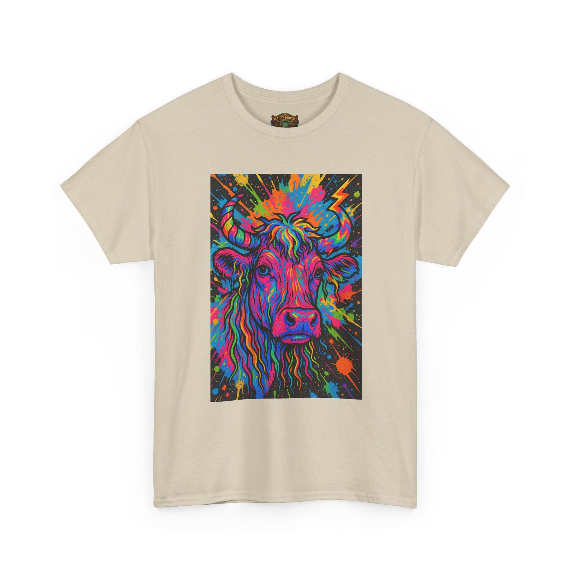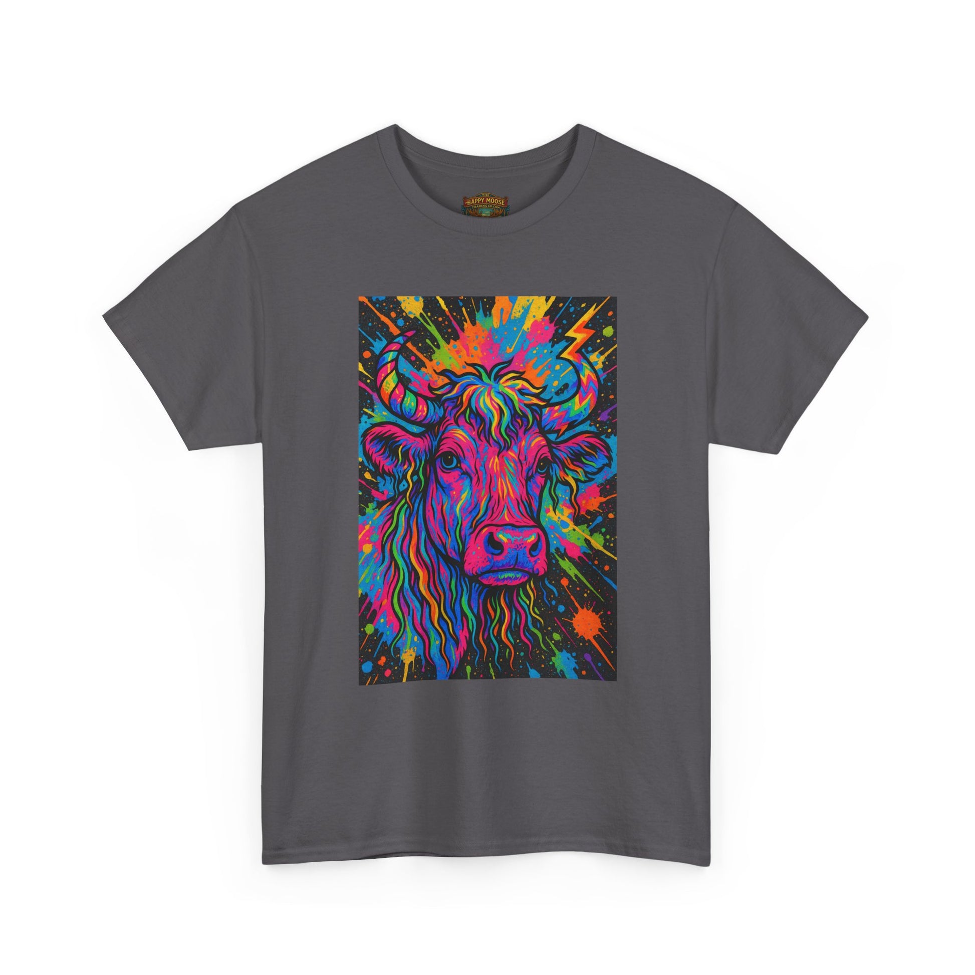 Bright, hypnotic swirls of colour form the face of a highland cow — soft horns curling through kaleidoscopic waves. This tee becomes a wearable small rebellion: bold, playful, and a little wild. Slip it on when you want your outfit to start conversations on the trail, at a weekend market, or over a lazy coffee date. The image feels like a modern folk print turned neon dream; it sits proudly on the chest, drawing eyes without shouting. For anyone who collects quirky, art-forward pieces or loves a countryside animal vibe with a trippy twist, this shirt brings warmth, personality, and a touch of humor to everyday wear. Product features - Reinforced shoulder tape prevents stretching and keeps shape intact. - Tubular knit (no side seams) for a clean look and reduced fabric waste. - Ribbed, seamless collar maintains elasticity and resists sagging. - High-quality printing: DTF on sleeves/labels and DTG on main design for crisp, detailed artwork. - Comfortable medium-weight 100% cotton (5.3 oz/yd²) with tear-away label for itch-free wear. Care instructions - Non-chlorine: bleach as needed - Do not iron - Do not dryclean - Machine wash: cold (max 30C or 90F) - Tumble dry: low heat