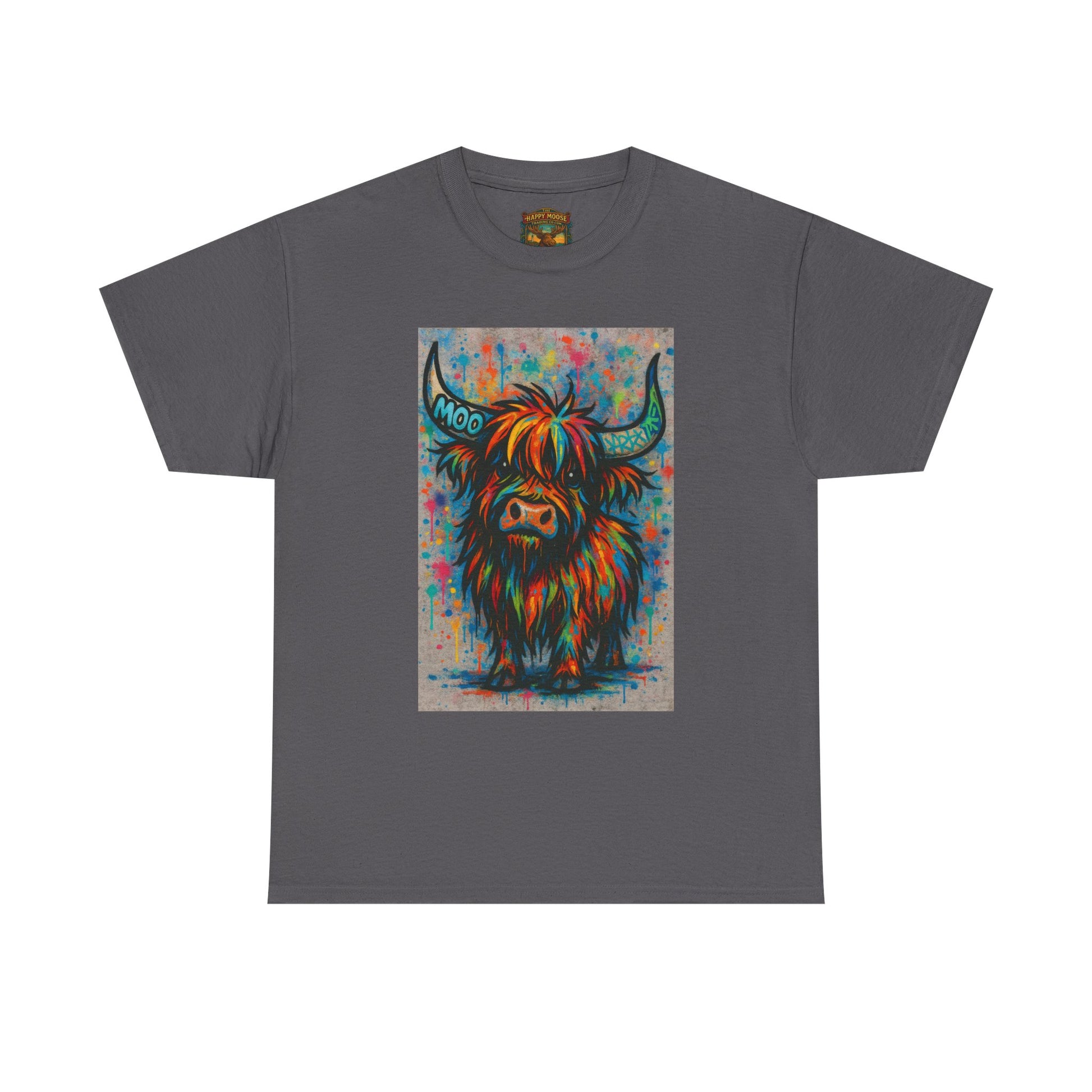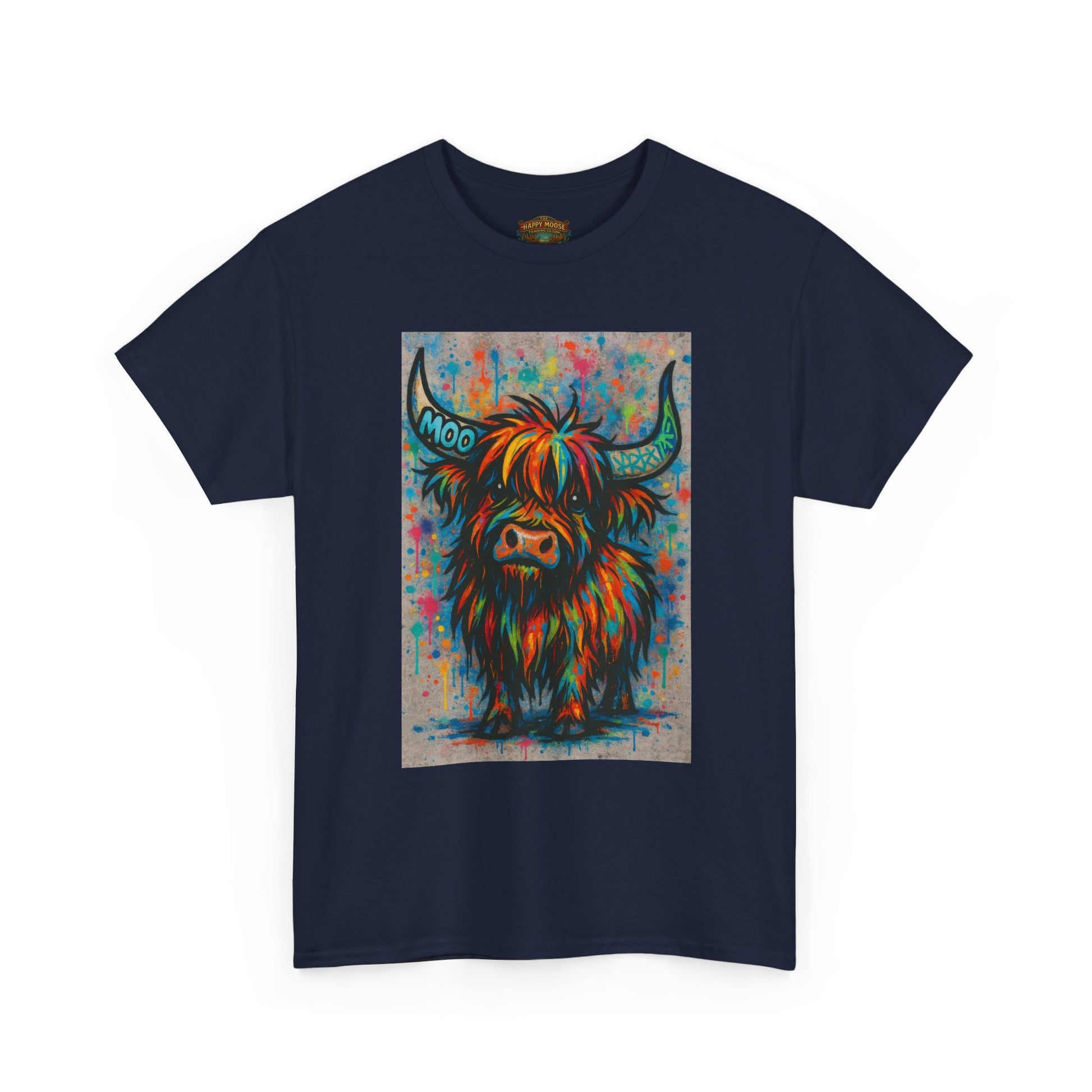 Bright, hypnotic swirls of colour form the face of a highland cow — soft horns curling through kaleidoscopic waves. This tee becomes a wearable small rebellion: bold, playful, and a little wild. Slip it on when you want your outfit to start conversations on the trail, at a weekend market, or over a lazy coffee date. The image feels like a modern folk print turned neon dream; it sits proudly on the chest, drawing eyes without shouting. For anyone who collects quirky, art-forward pieces or loves a countryside animal vibe with a trippy twist, this shirt brings warmth, personality, and a touch of humor to everyday wear. Product features - Reinforced shoulder tape prevents stretching and keeps shape intact. - Tubular knit (no side seams) for a clean look and reduced fabric waste. - Ribbed, seamless collar maintains elasticity and resists sagging. - High-quality printing: DTF on sleeves/labels and DTG on main design for crisp, detailed artwork. - Comfortable medium-weight 100% cotton (5.3 oz/yd²) with tear-away label for itch-free wear. Care instructions - Non-chlorine: bleach as needed - Do not iron - Do not dryclean - Machine wash: cold (max 30C or 90F) - Tumble dry: low heat