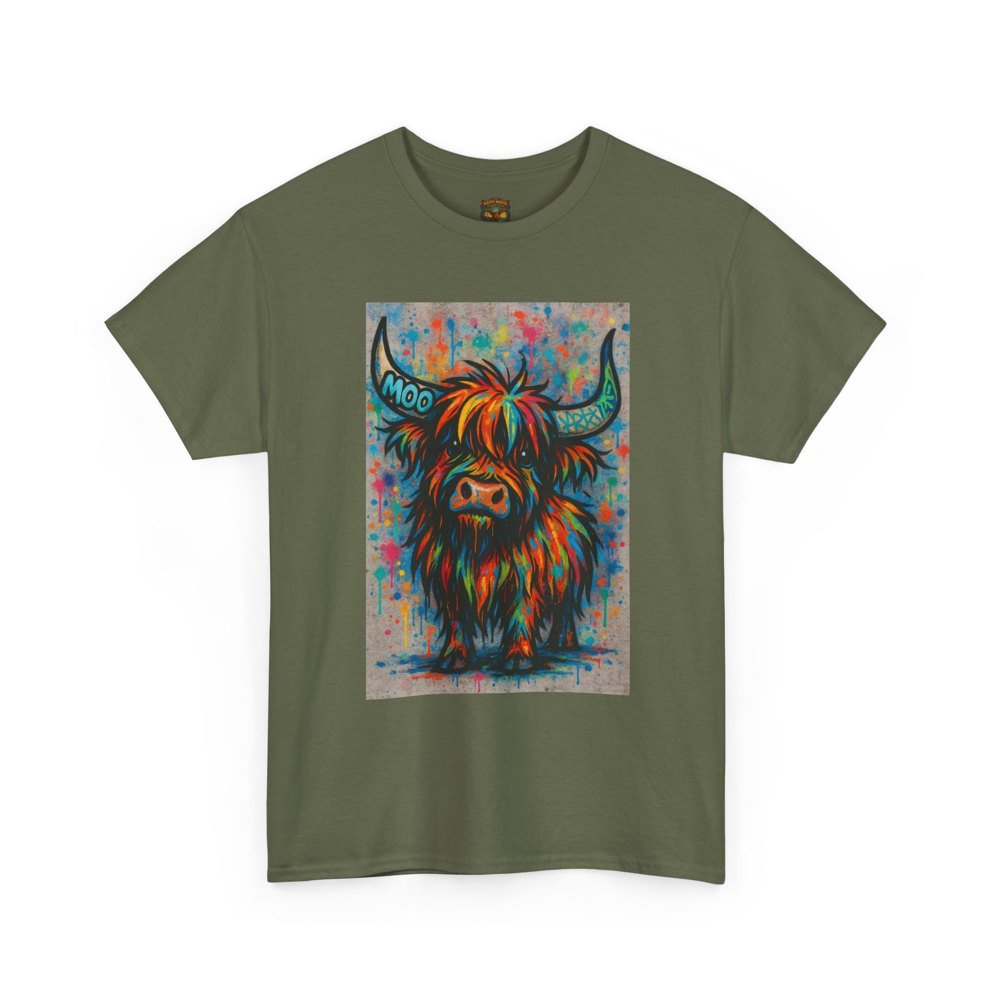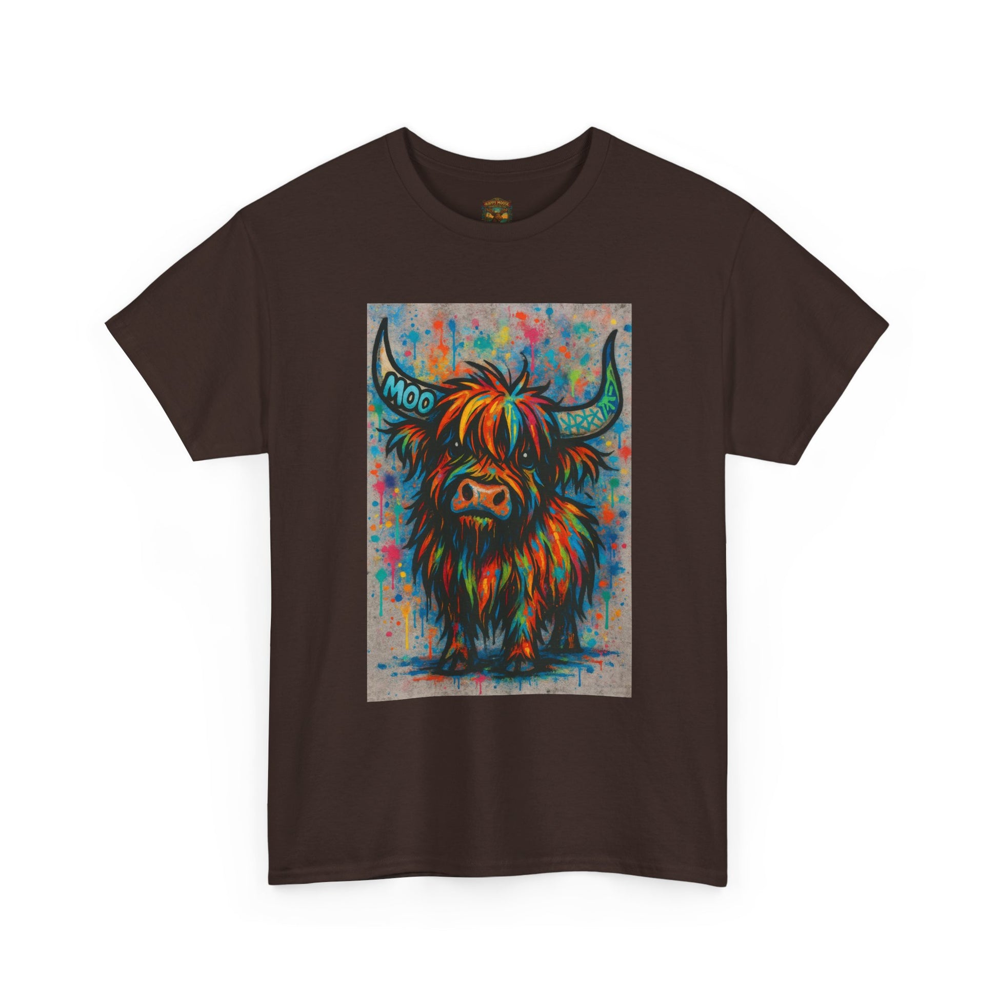 Bright, hypnotic swirls of colour form the face of a highland cow — soft horns curling through kaleidoscopic waves. This tee becomes a wearable small rebellion: bold, playful, and a little wild. Slip it on when you want your outfit to start conversations on the trail, at a weekend market, or over a lazy coffee date. The image feels like a modern folk print turned neon dream; it sits proudly on the chest, drawing eyes without shouting. For anyone who collects quirky, art-forward pieces or loves a countryside animal vibe with a trippy twist, this shirt brings warmth, personality, and a touch of humor to everyday wear. Product features - Reinforced shoulder tape prevents stretching and keeps shape intact. - Tubular knit (no side seams) for a clean look and reduced fabric waste. - Ribbed, seamless collar maintains elasticity and resists sagging. - High-quality printing: DTF on sleeves/labels and DTG on main design for crisp, detailed artwork. - Comfortable medium-weight 100% cotton (5.3 oz/yd²) with tear-away label for itch-free wear. Care instructions - Non-chlorine: bleach as needed - Do not iron - Do not dryclean - Machine wash: cold (max 30C or 90F) - Tumble dry: low heat