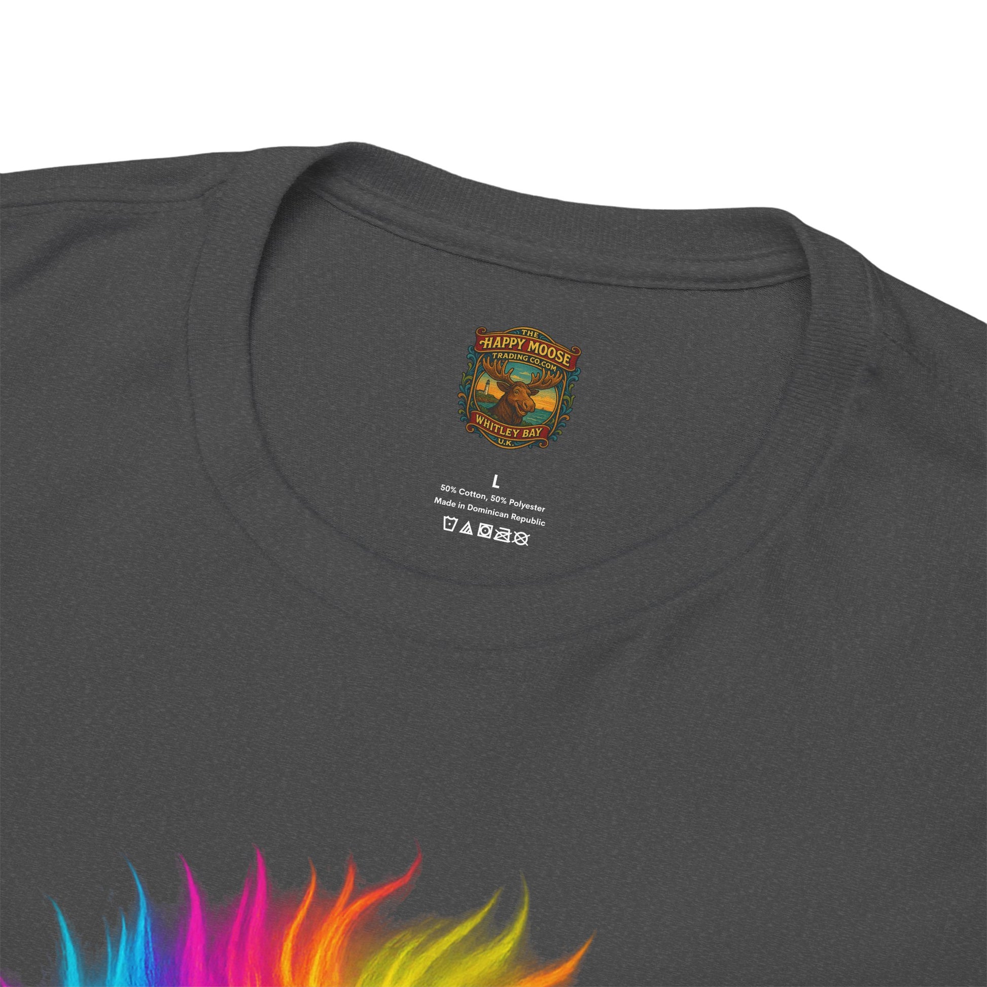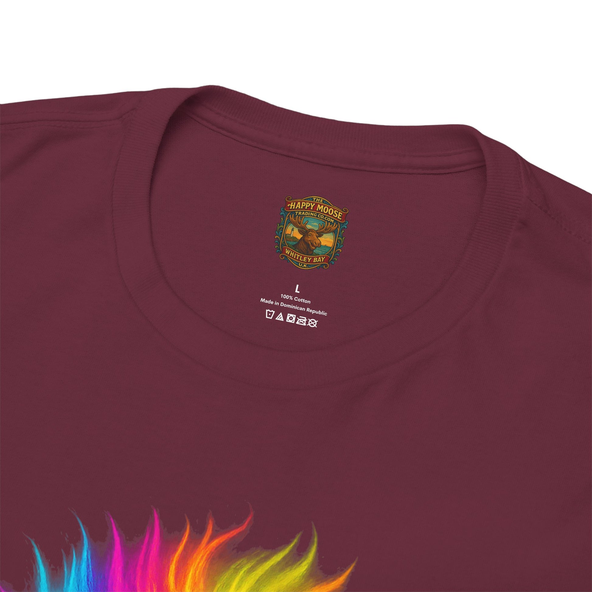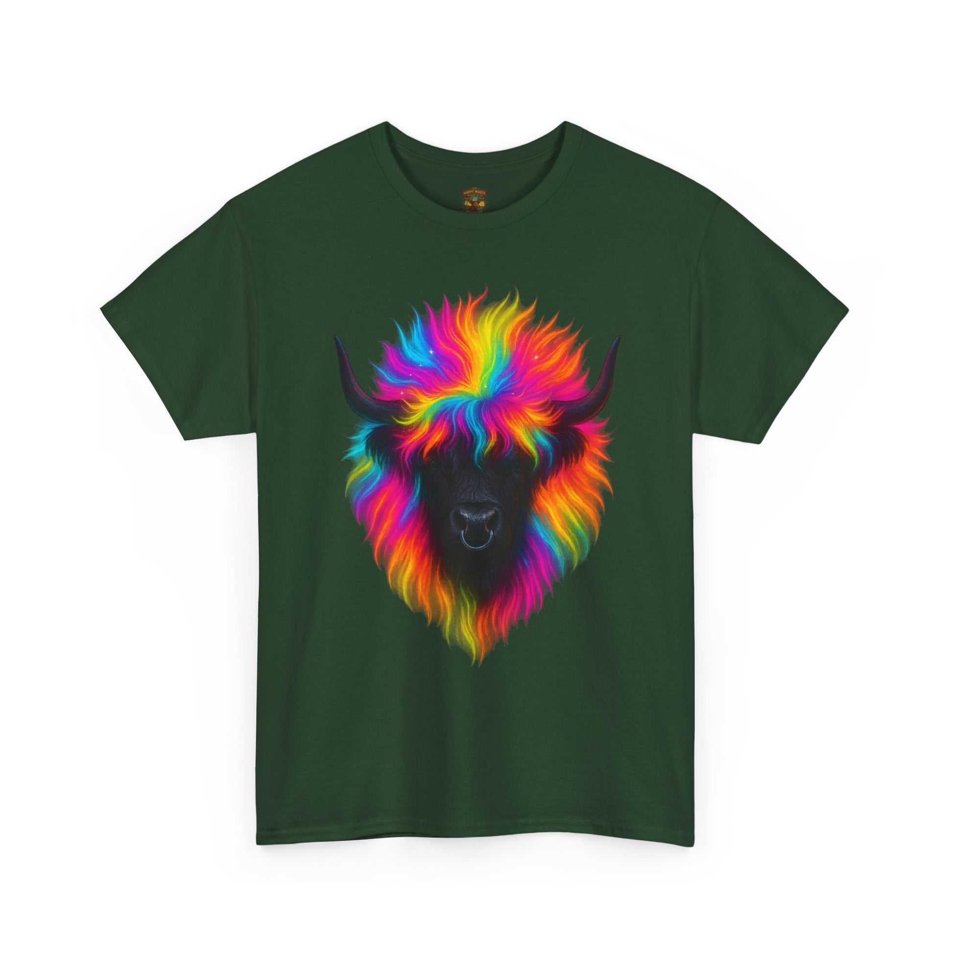 - A soft, breathable tee that wears like your favorite go-to layer and announces personality without shouting. The shirt’s classic crew neck and relaxed fit let the vibrant, rainbow-colored yak motif sit front and center — a playful, artful portrait that feels both whimsical and oddly grounding. Lightweight yet durable cotton holds bright DTG prints with crisp edges, while reinforced shoulder tape and a tear-away label keep the shirt comfortable wash after wash. Throw it on for long drives, gallery days, or relaxed nights around a backyard fire; the shirt reads like a small celebration of color and calm in equal measure.