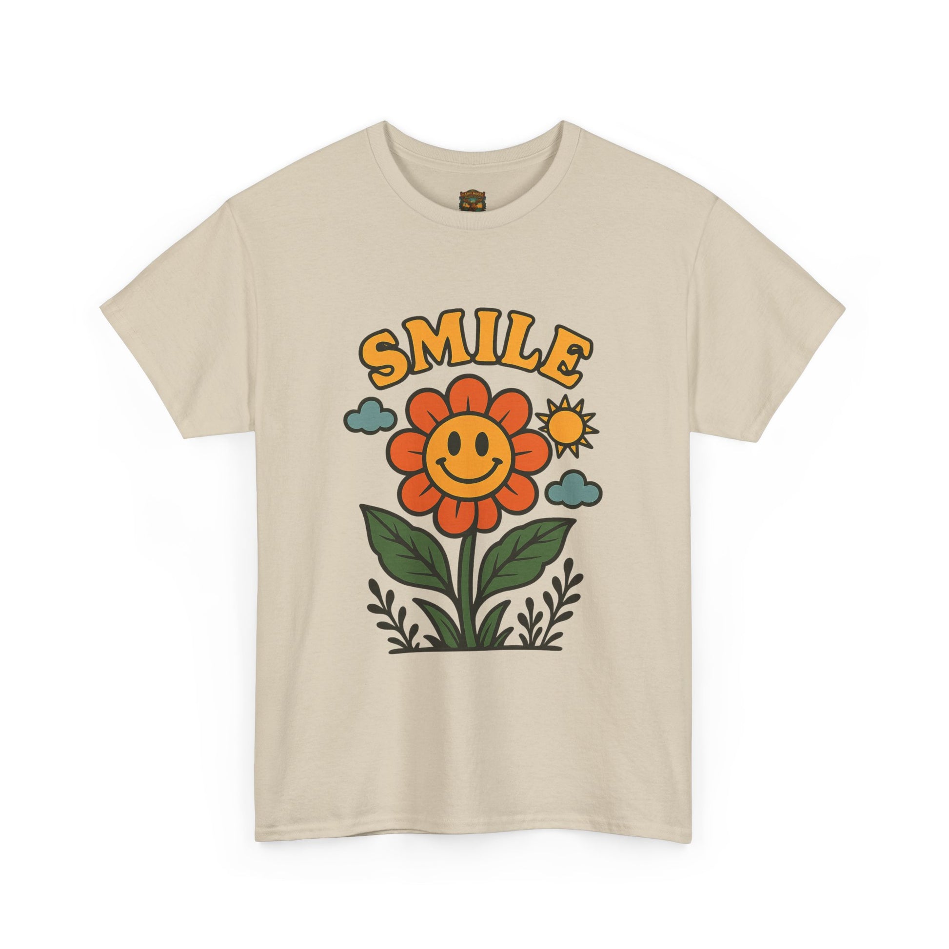 This lightweight cotton tee carries a quiet, sunlit joy: small blooms and a soft smile captured on the chest, like a pocket of warmth you can wear. It sits loose but tidy across the shoulders, draping easily whether you’re walking a neighborhood trail, tending the windowsill garden, or meeting friends at a weekend market. The breathable, smooth fabric won’t fight your movements; the collar keeps its shape wash after wash. Slip it on with worn jeans or a flowy skirt — it layers without fuss and adds a gentle, floral note to everyday life. For someone who favors simple beauty and calm moments, this tee becomes part of the rhythm: morning coffee, park benches, late-afternoon light through leaves. Product features - Stable shoulder seams with twill tape to prevent stretching - Seamless tubular knit construction for a smooth, waste-reducing finish - Elastic ribbed collar that retains shape over time - Durable, smooth cotton fabric optimized for crisp DTG/DTF printing - Classic relaxed fit (5.3 oz/yd²) with tear-away label for comfort Care instructions - Non-chlorine: bleach as needed - Do not iron - Do not dryclean - Machine wash: cold (max 30C or 90F) - Tumble dry: low heat