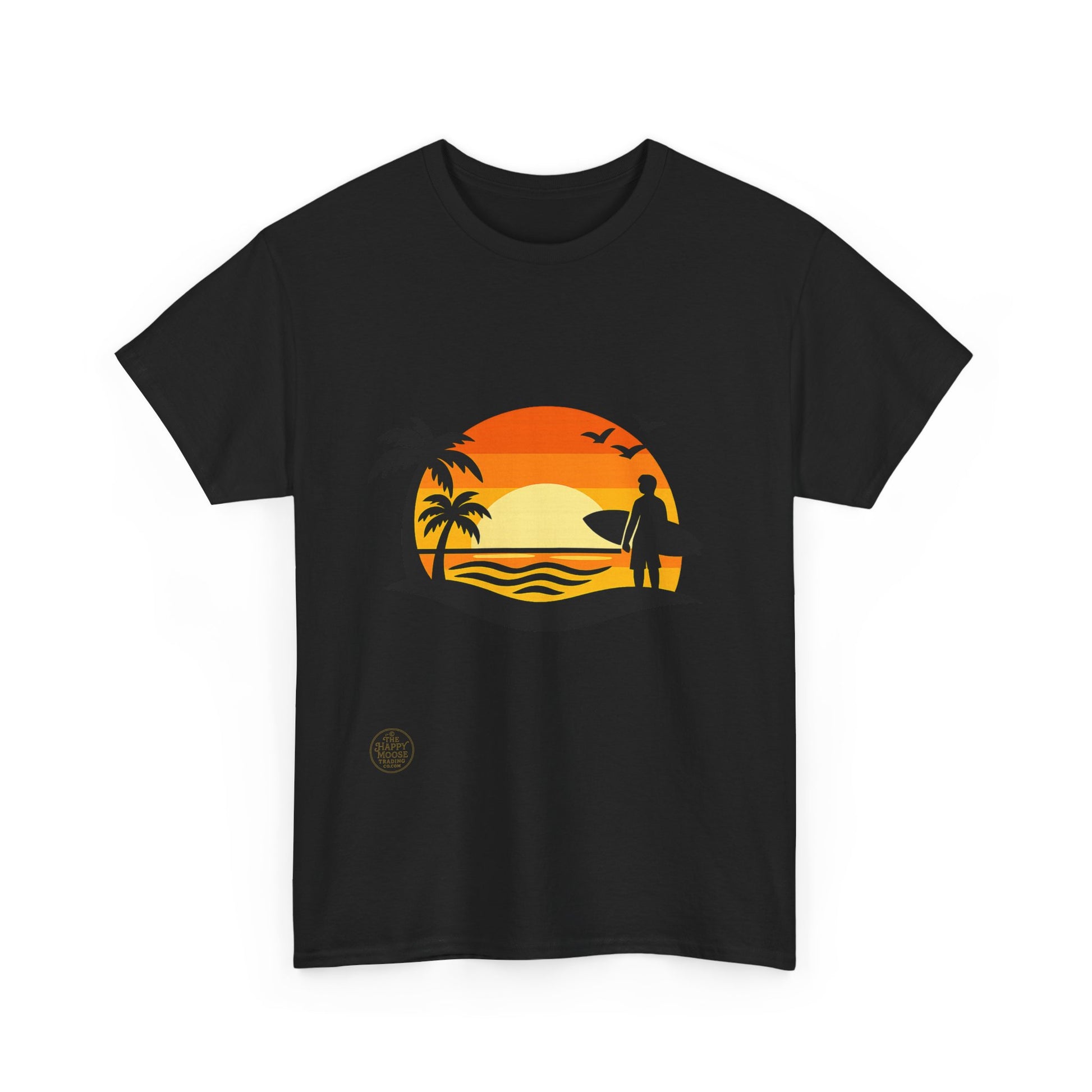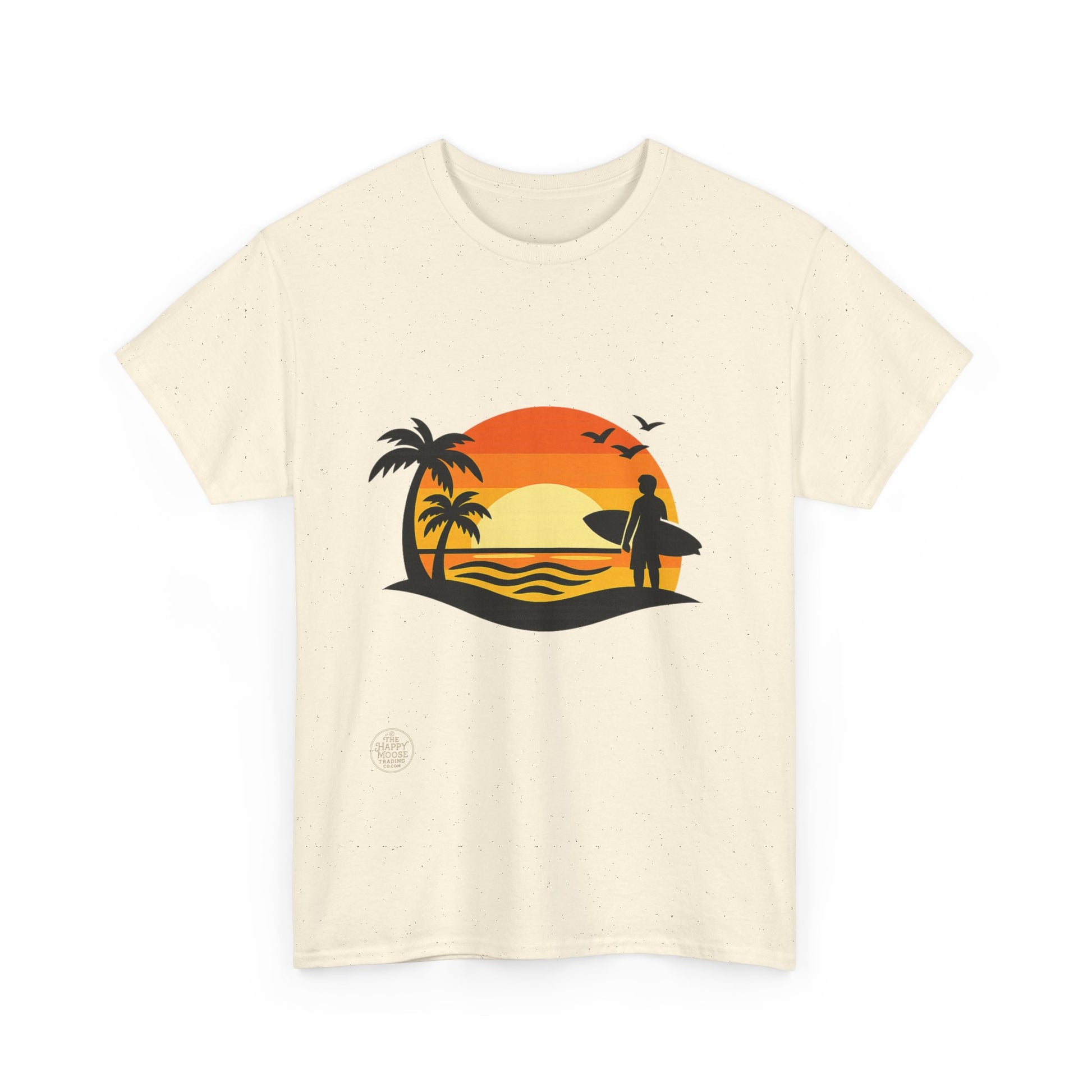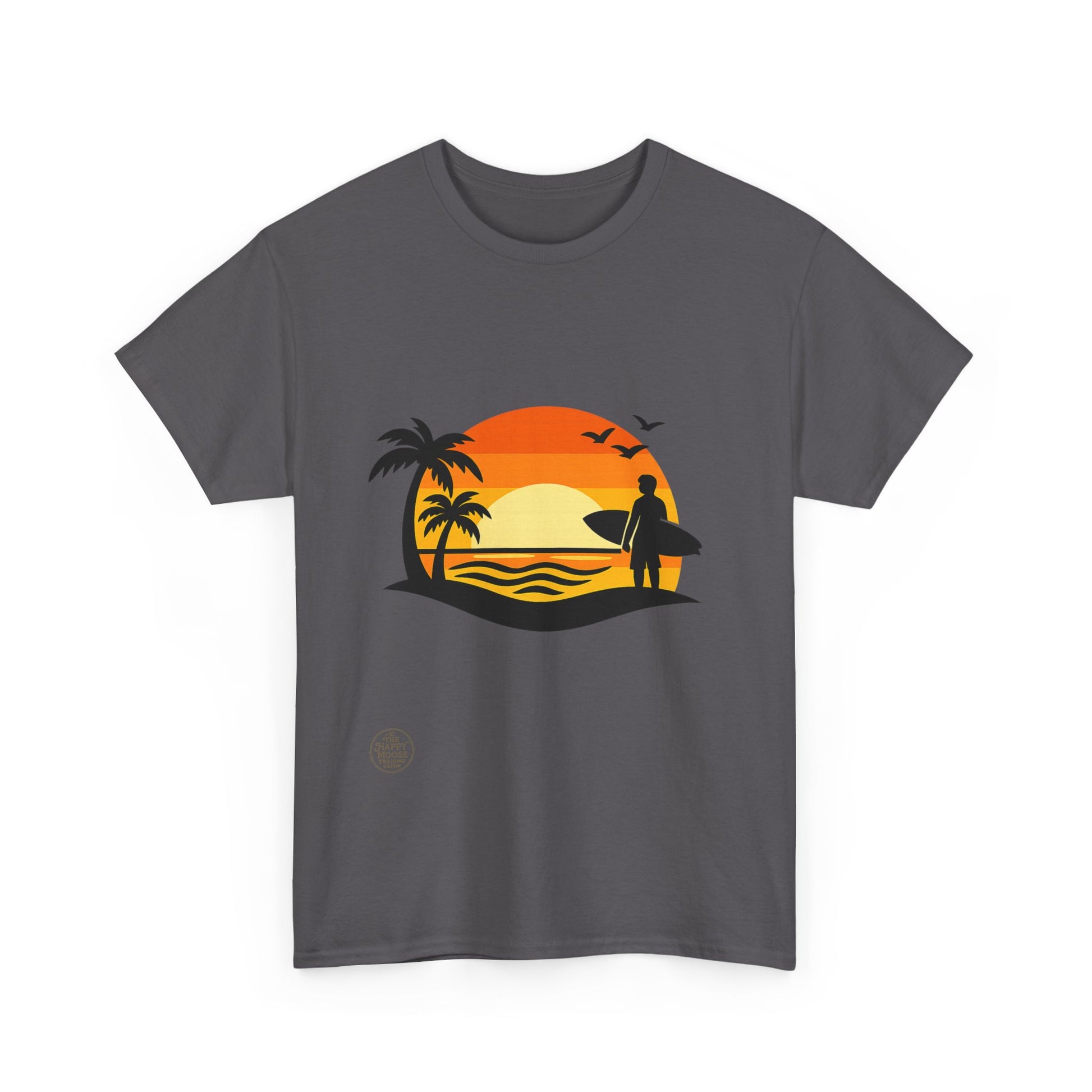 Surf Sunset T-Shirt — Retro Palm Tree Beach Tee