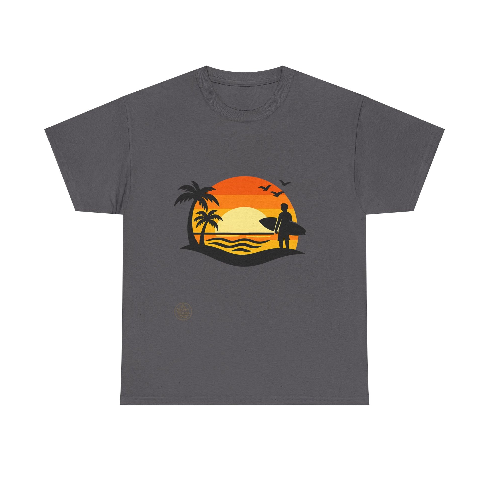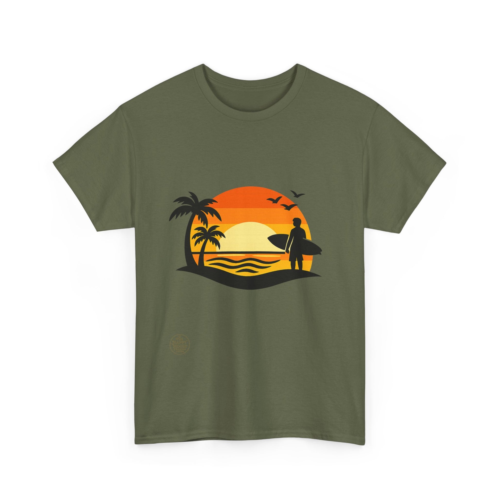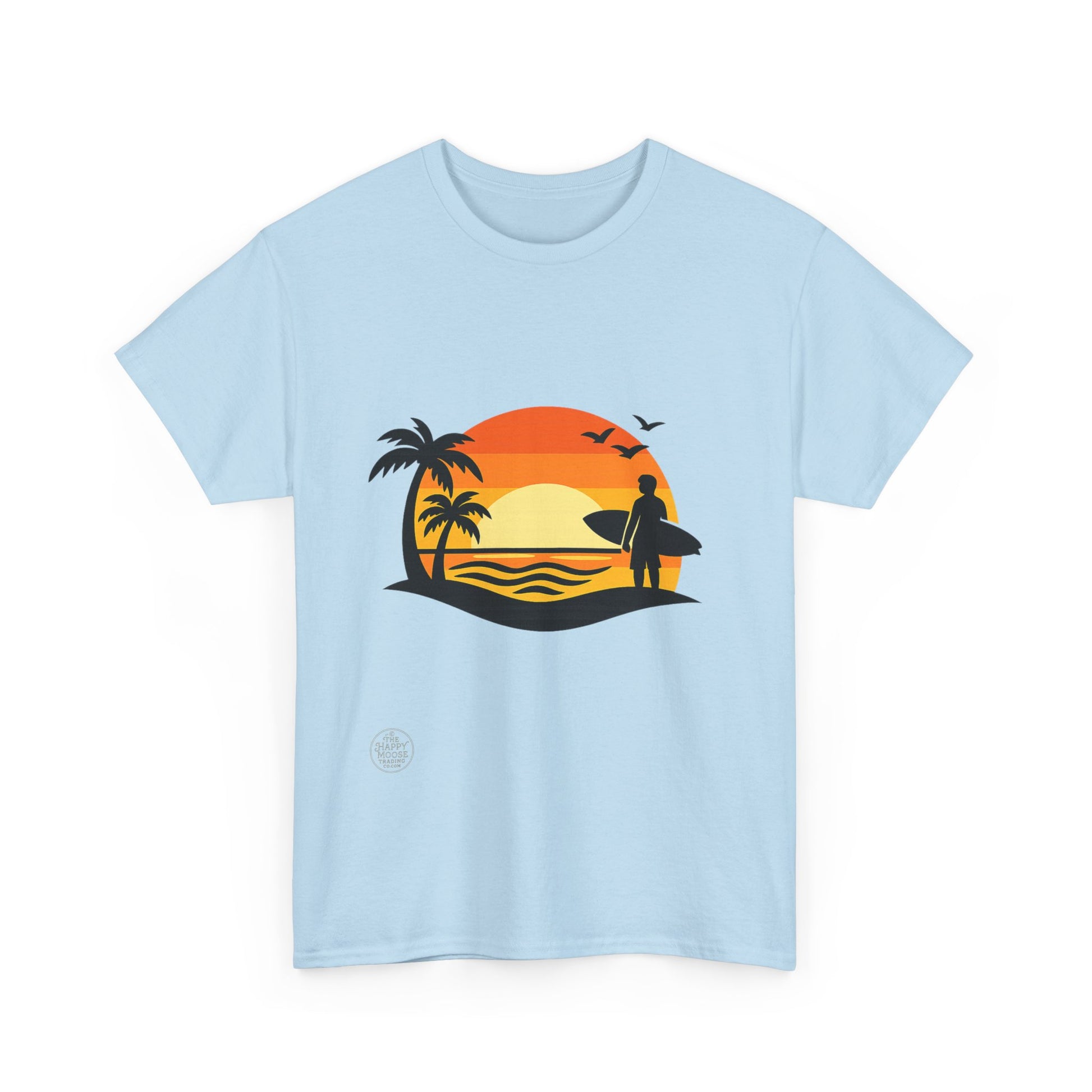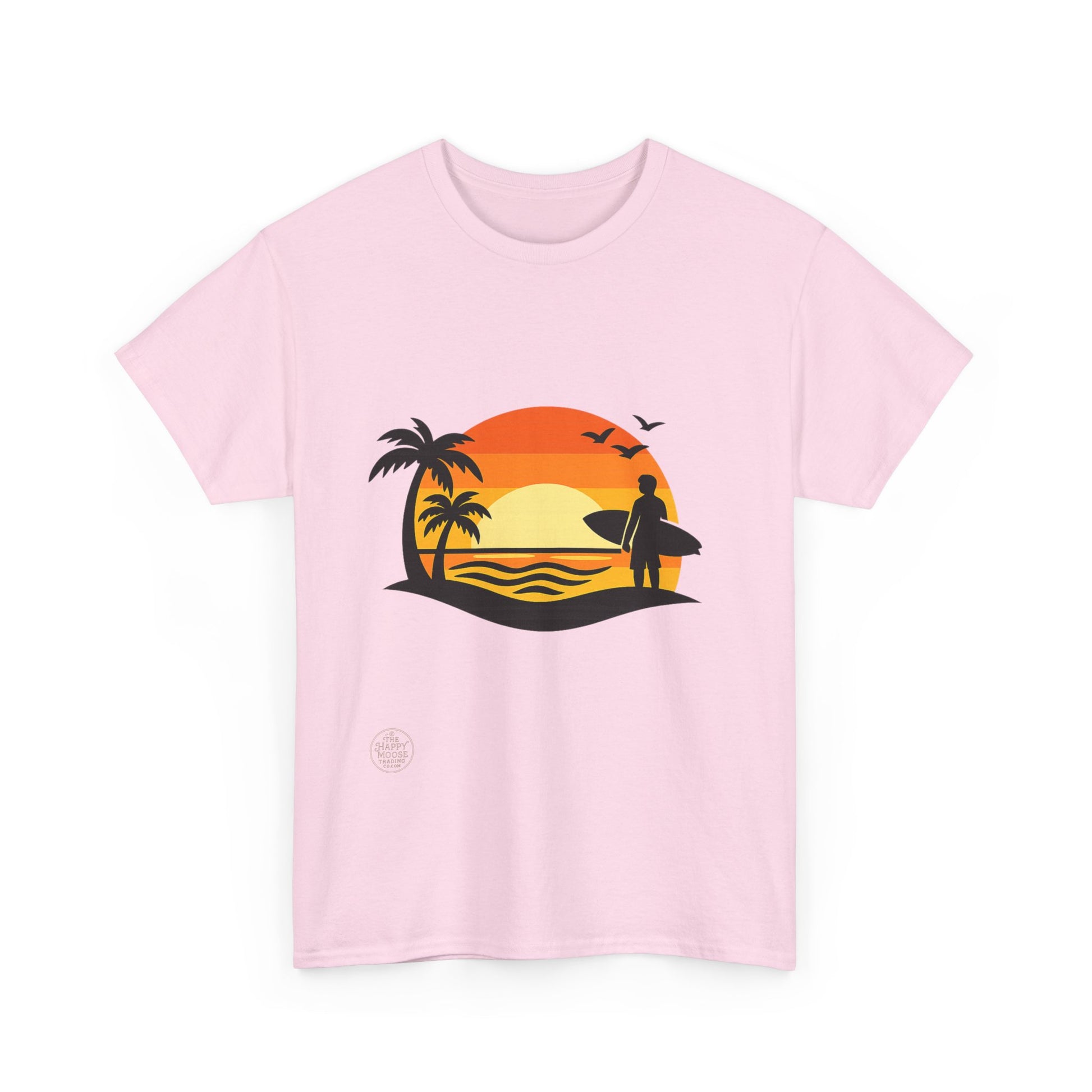 Surf Sunset T-Shirt — Retro Palm Tree Beach Tee
