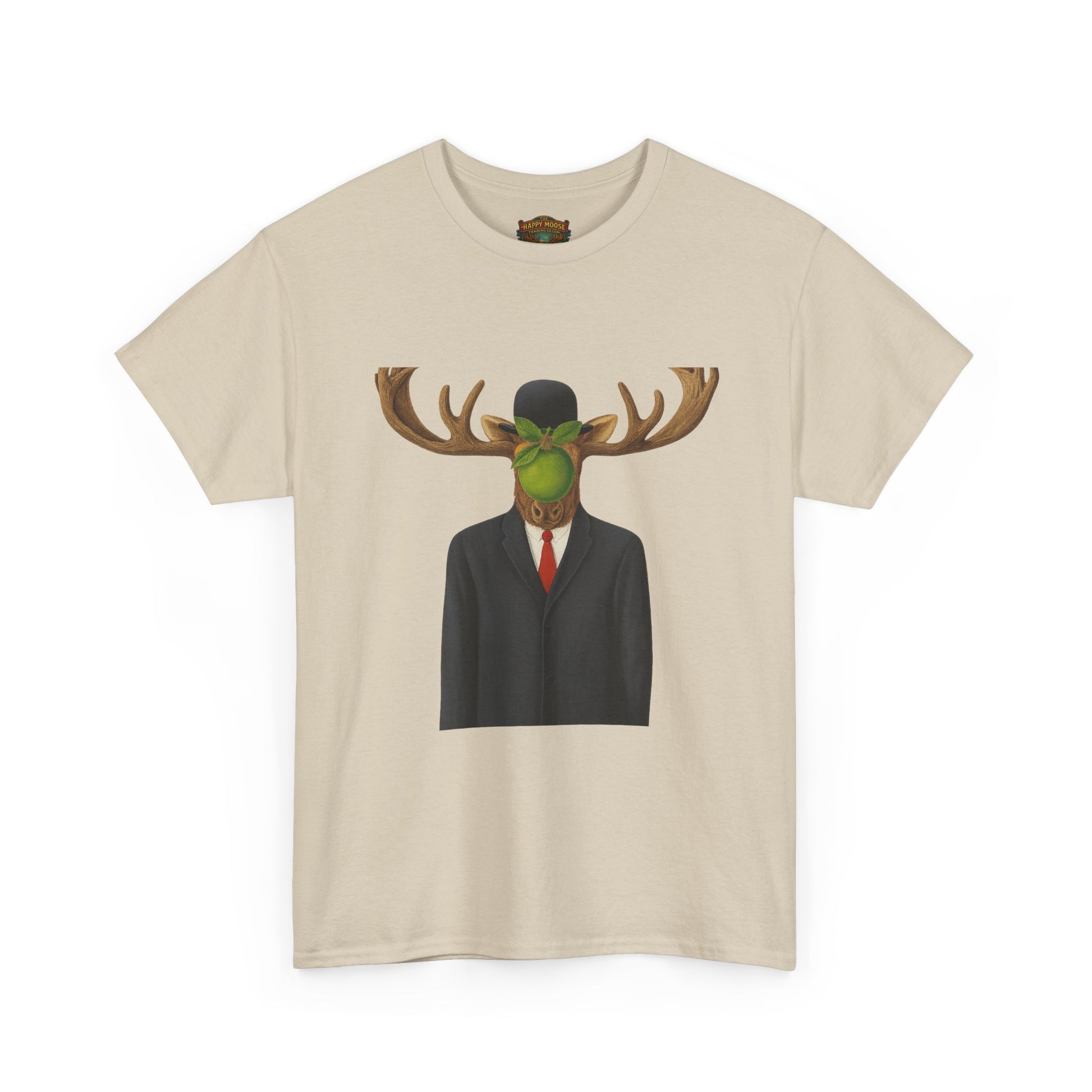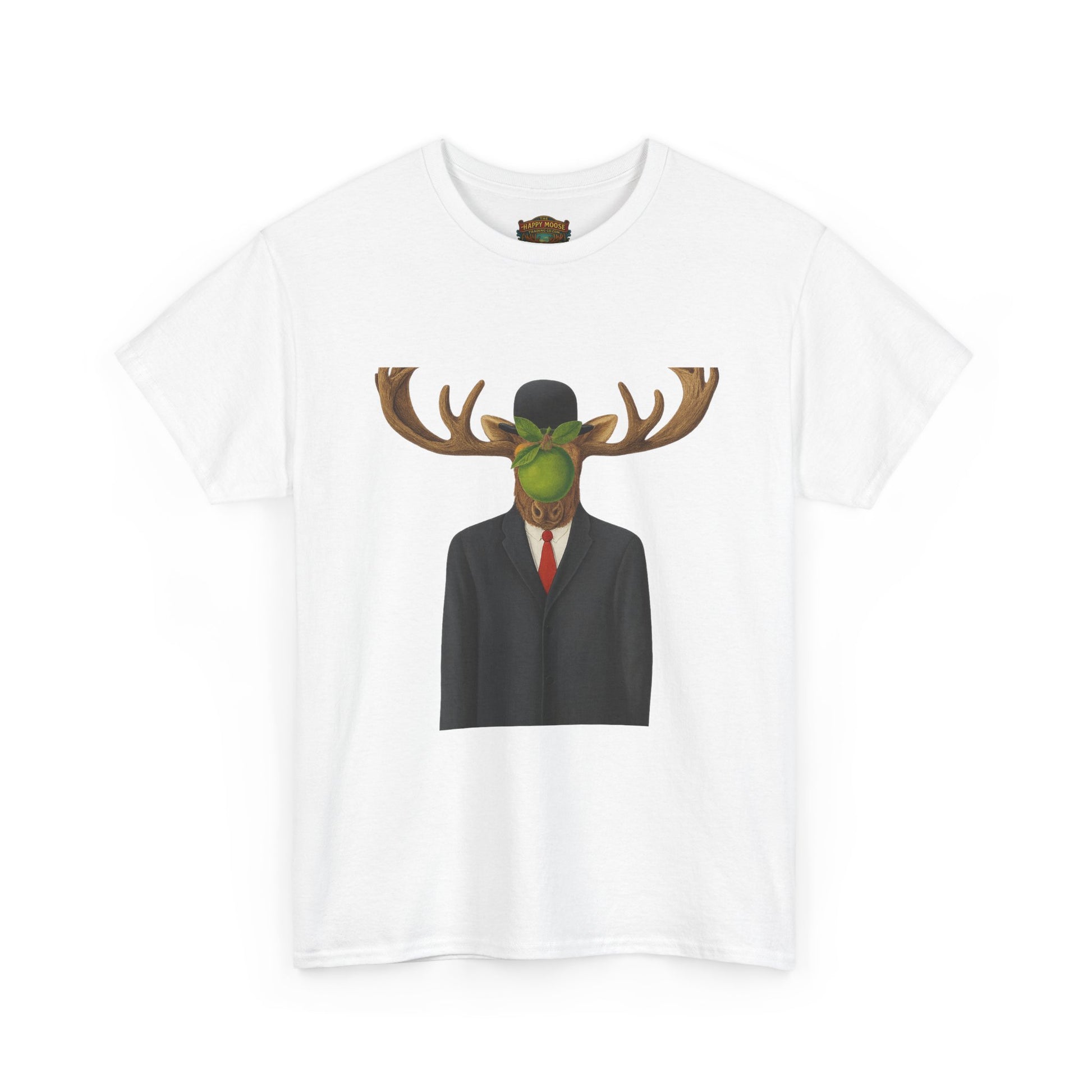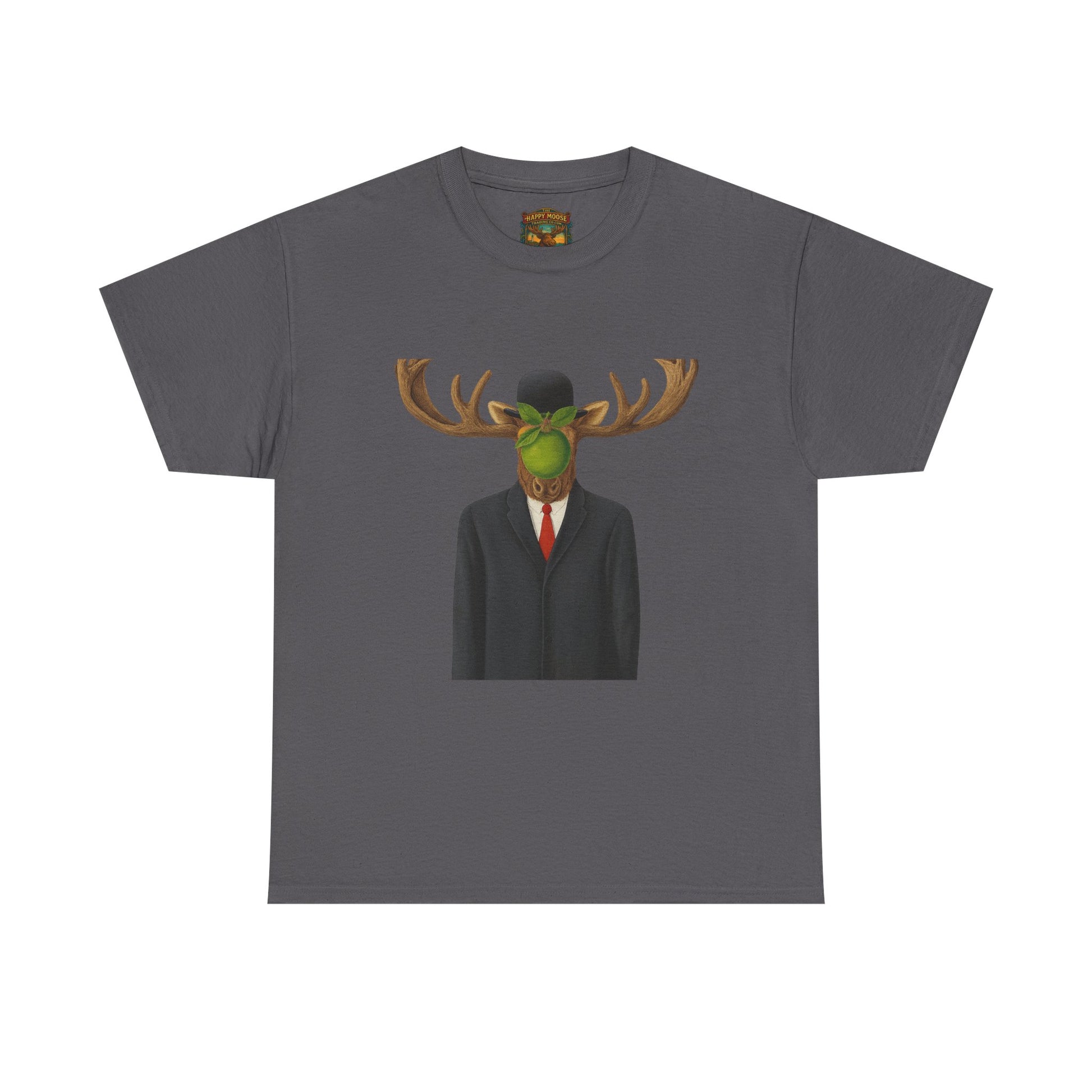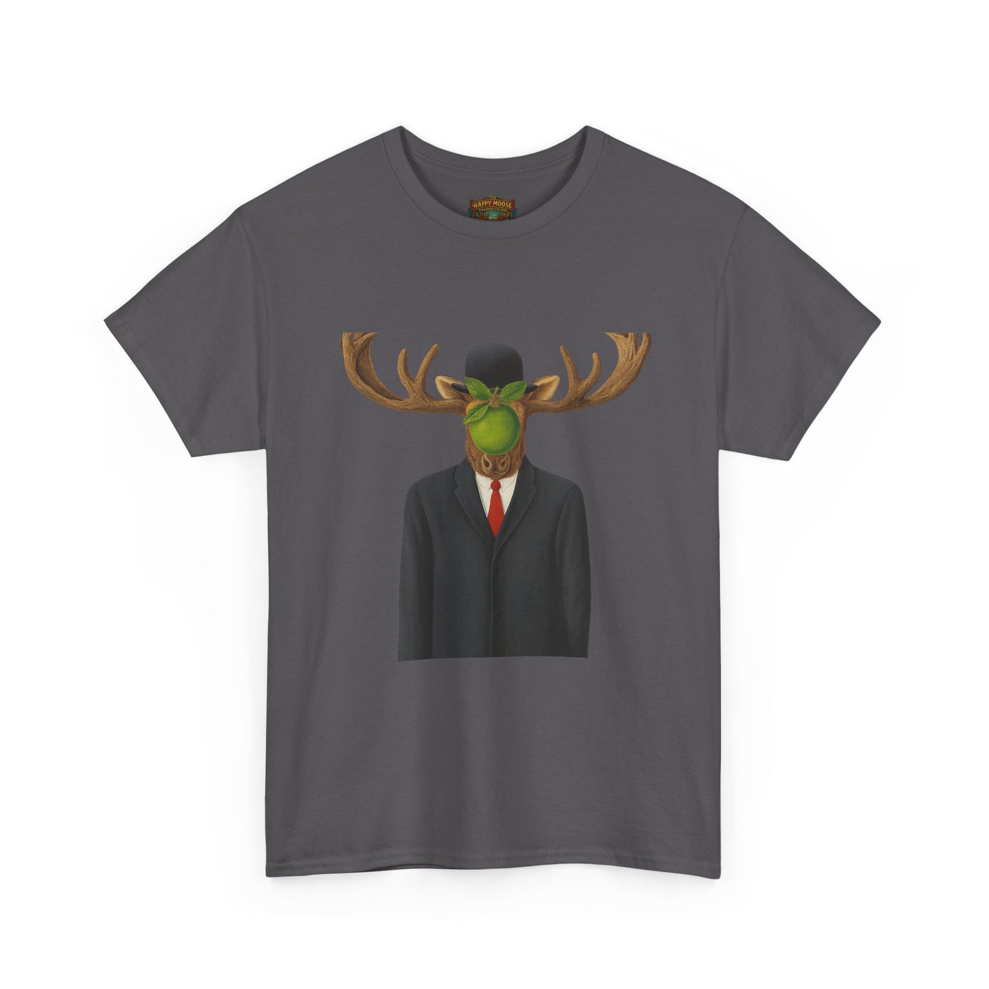 Surreal Moose Head Suit T‑Shirt — 'Man with Antlers' Artistic Graphic Tee