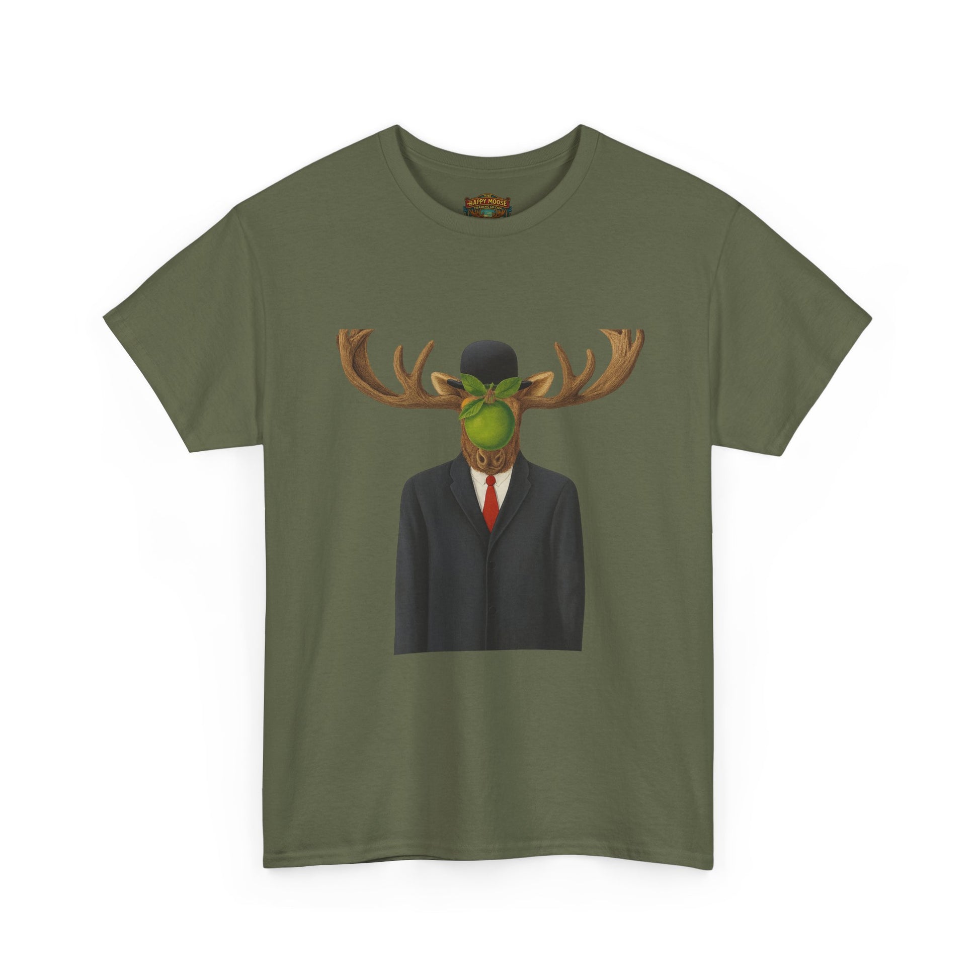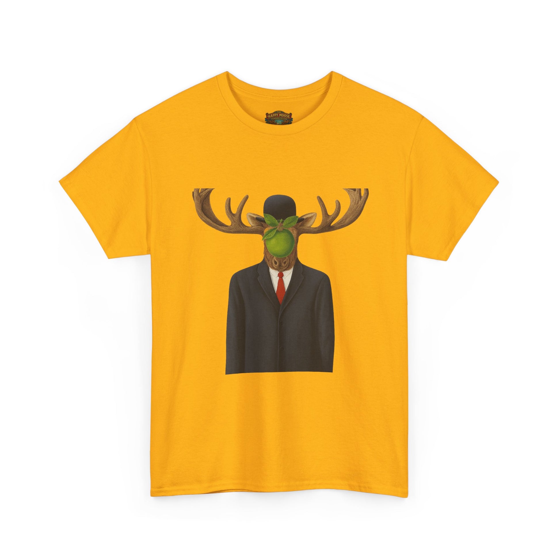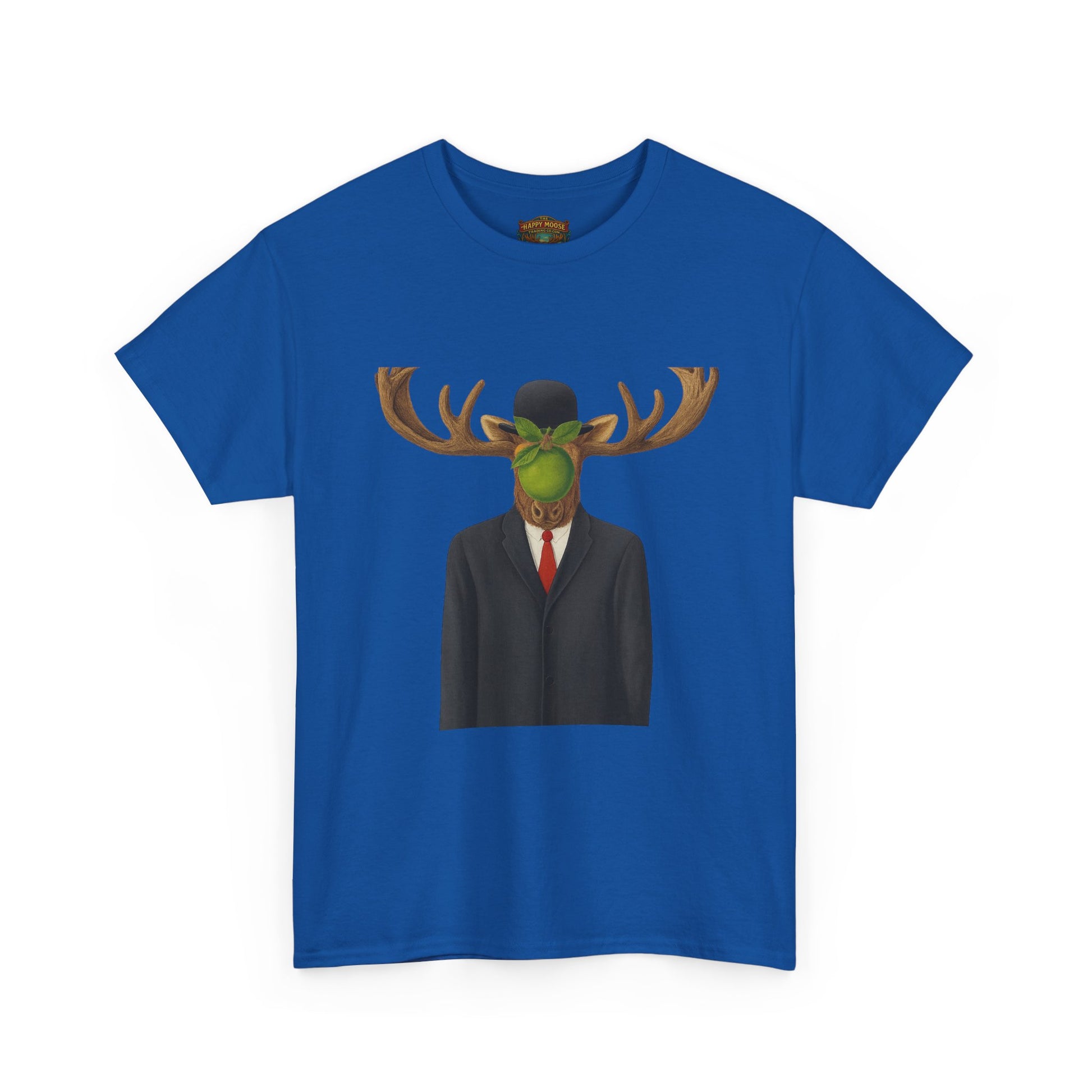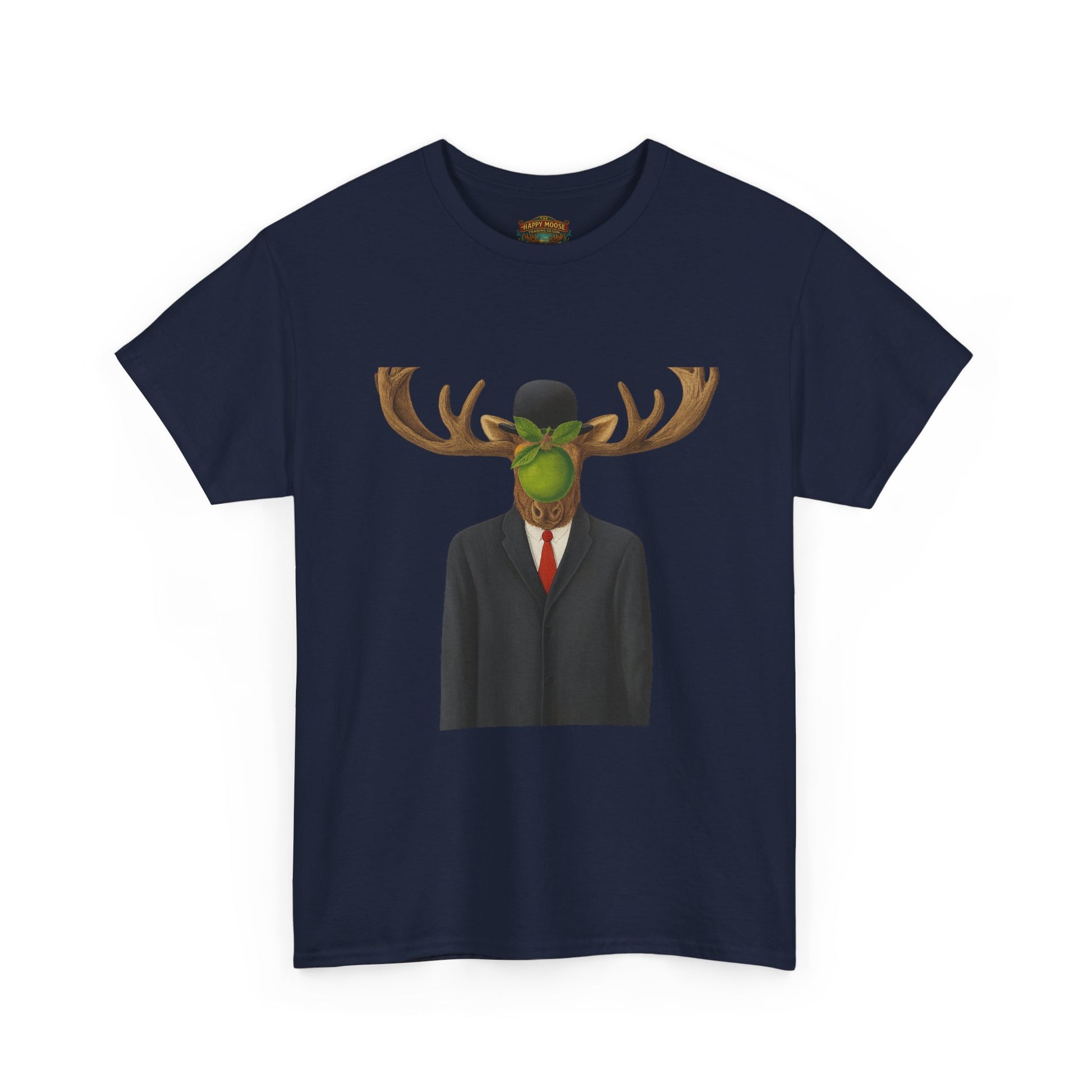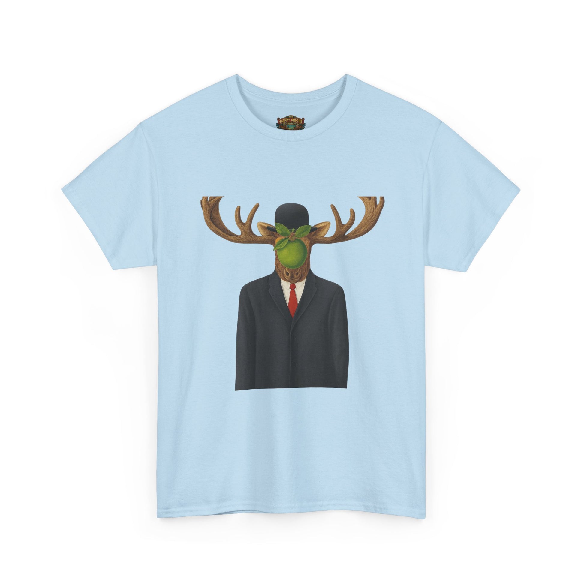 Surreal Moose Head Suit T‑Shirt — 'Man with Antlers' Artistic Graphic Tee