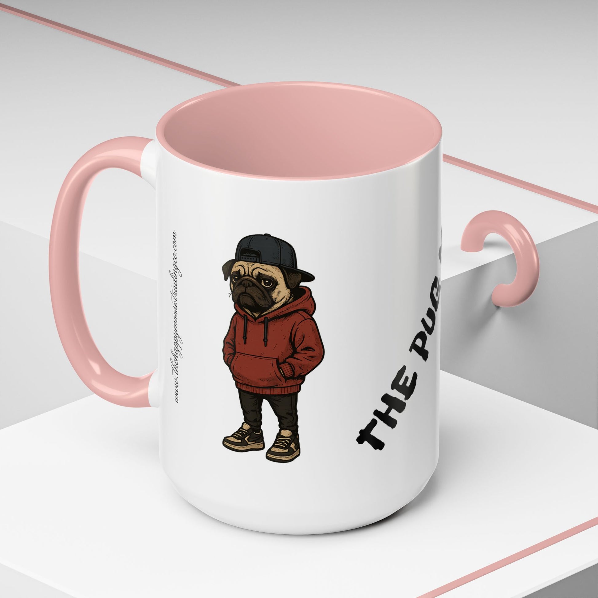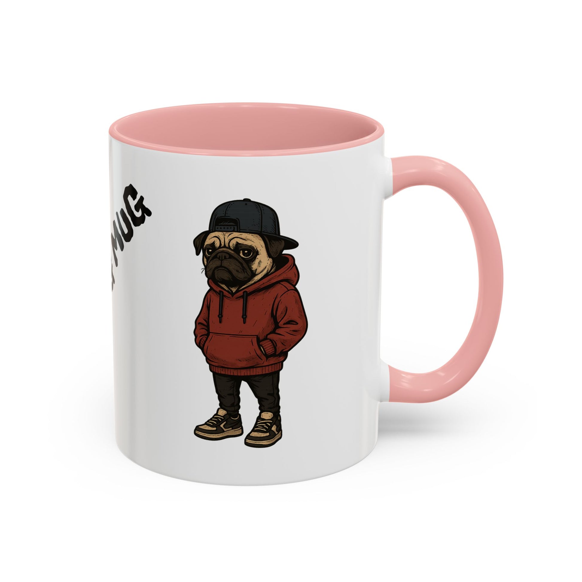 This ceramic accent mug brings a little attitude to your morning coffee. A stylized pug in streetwear—hoodie, cap, and sneakers—wraps around the mug with bold diagonal text that reads “THE PUG MUG.” The colored interior and handle create a striking contrast against the glossy white exterior, making the artwork pop while the durable print stays bright wash after wash. Hold it by the comfortable C-shaped handle, warm your hands, and enjoy a playful, slightly cheeky moment before the day begins. It sits naturally at your desk, on a kitchen shelf, or beside a cozy reading nook, and it’s an easy way for dog lovers and streetwear fans to show personality during daily coffee rituals or low-key gatherings.