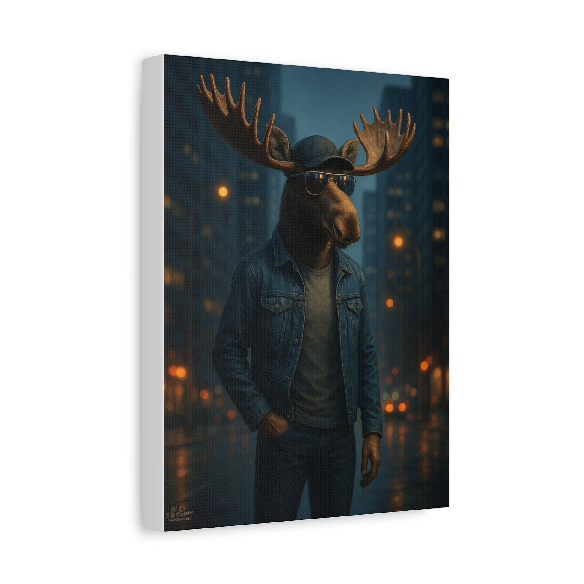 Urban Moose Canvas Print — Cool Moose in Denim Wall Art (Matte Stretched)