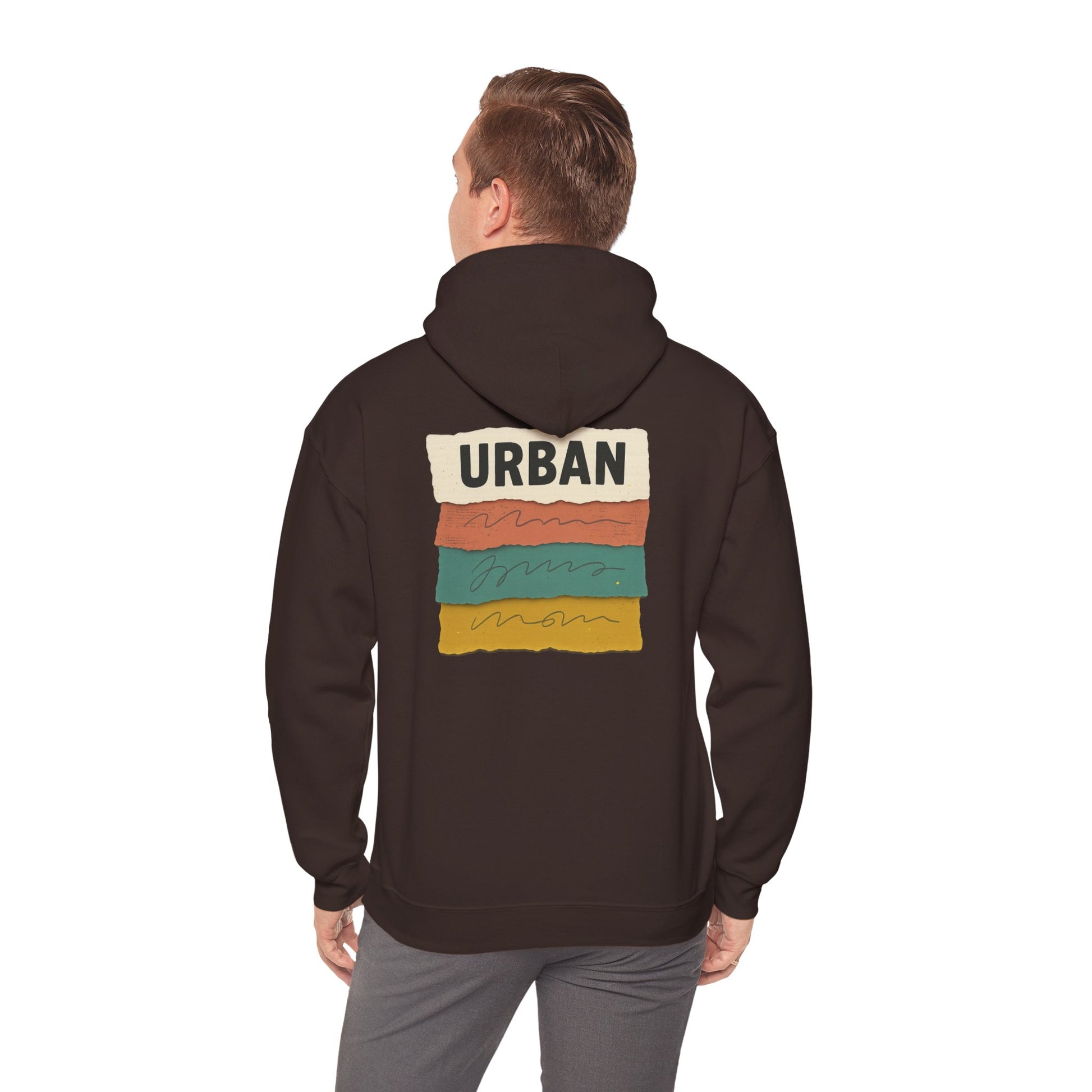 This cozy hooded sweatshirt brings quiet, wearable style to everyday city life. Soft, medium-weight fabric holds warmth without bulk, while the roomy kangaroo pocket and adjustable hood make it an easy go-to for errand runs, late-night walks, or relaxed studio sessions. The back features a layered, painterly graphic with earthy tones and the word “URBAN,” giving the hoodie a subtle, artful streetwear edge that reads like a city snapshot. Comfortable, durable, and thoughtfully made—this sweatshirt slips into your routine and becomes one of those pieces you reach for when you want warmth and low-key personality.