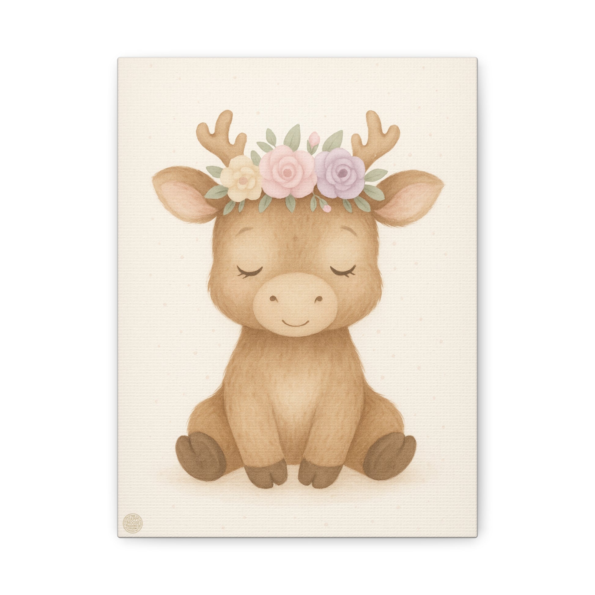 Woodland Baby Deer Canvas — Floral Antler Nursery Wall Art