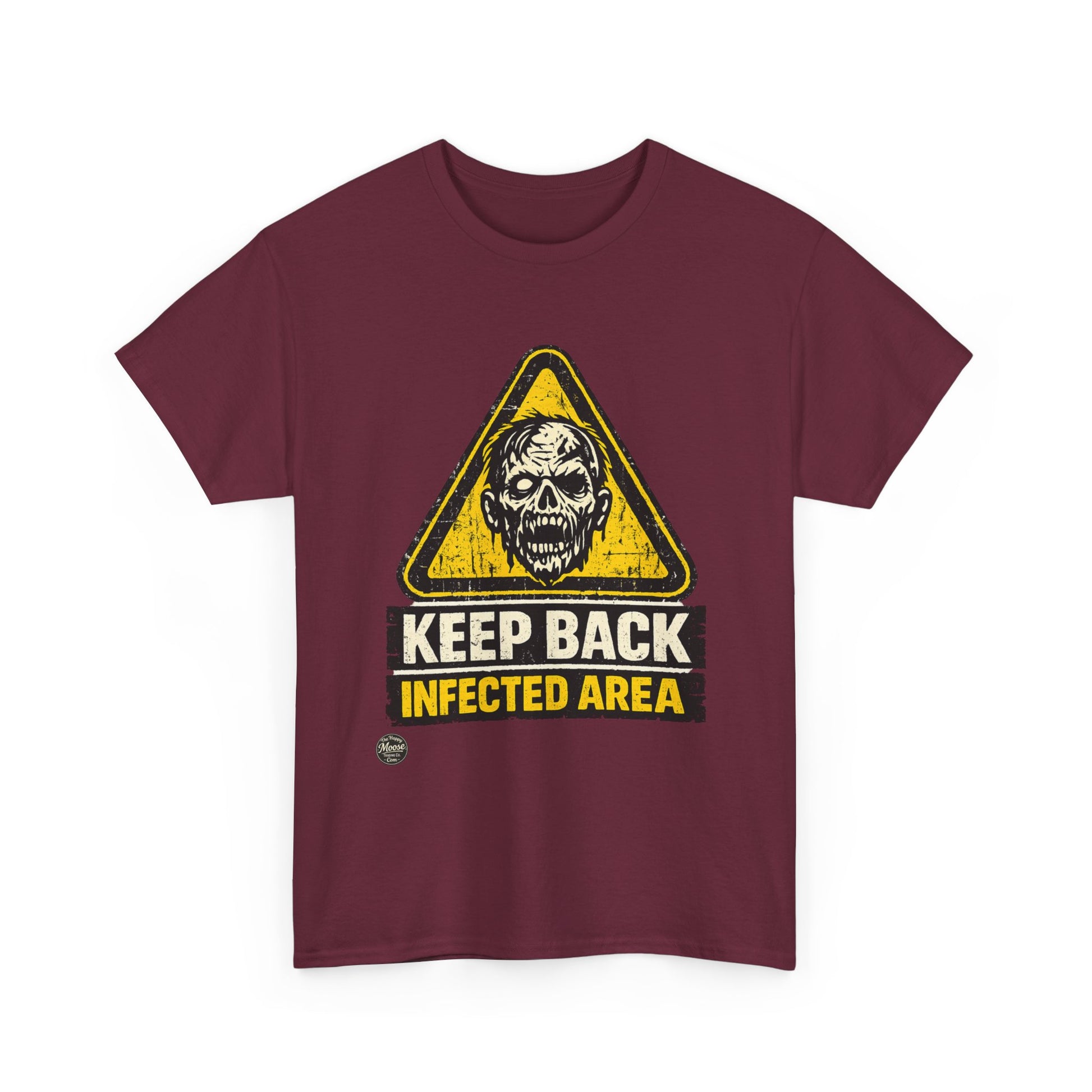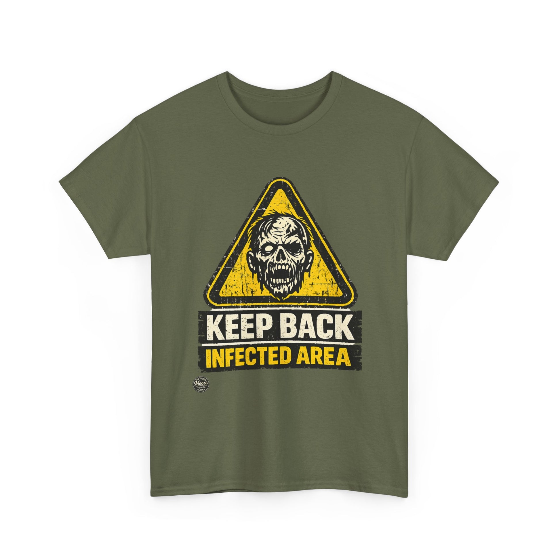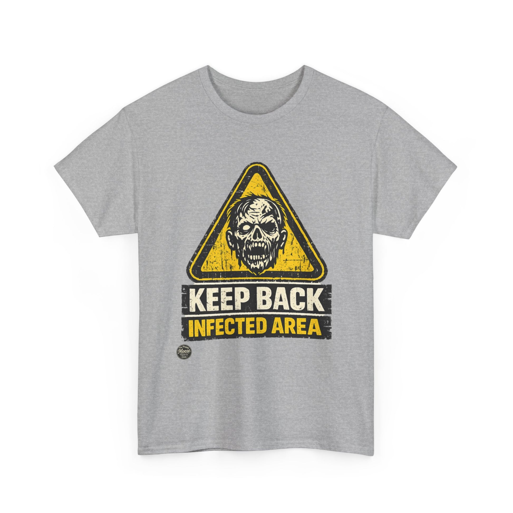 Zombie Warning Tee — "Keep Back Infected Area" Graphic T-Shirt